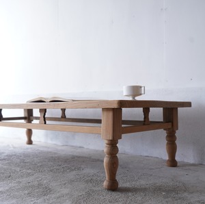 ナチュラルな木味と美しいろくろ脚が魅力的なローテーブル。