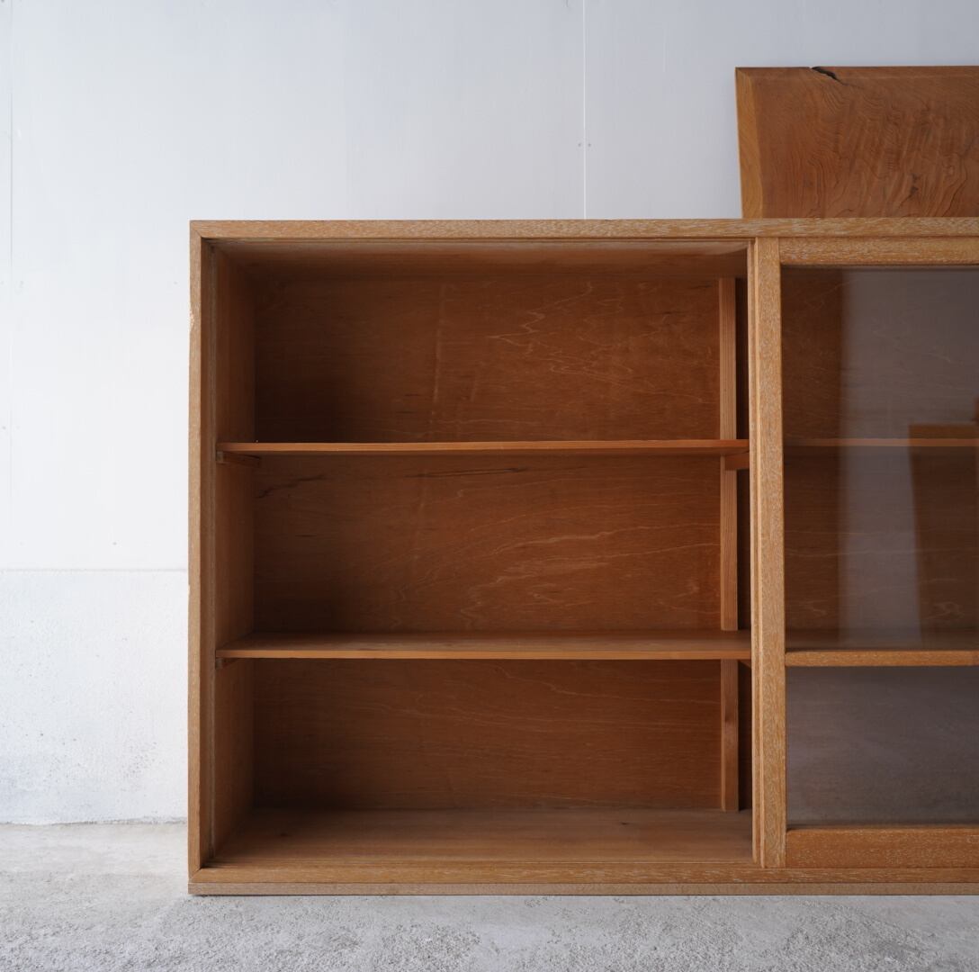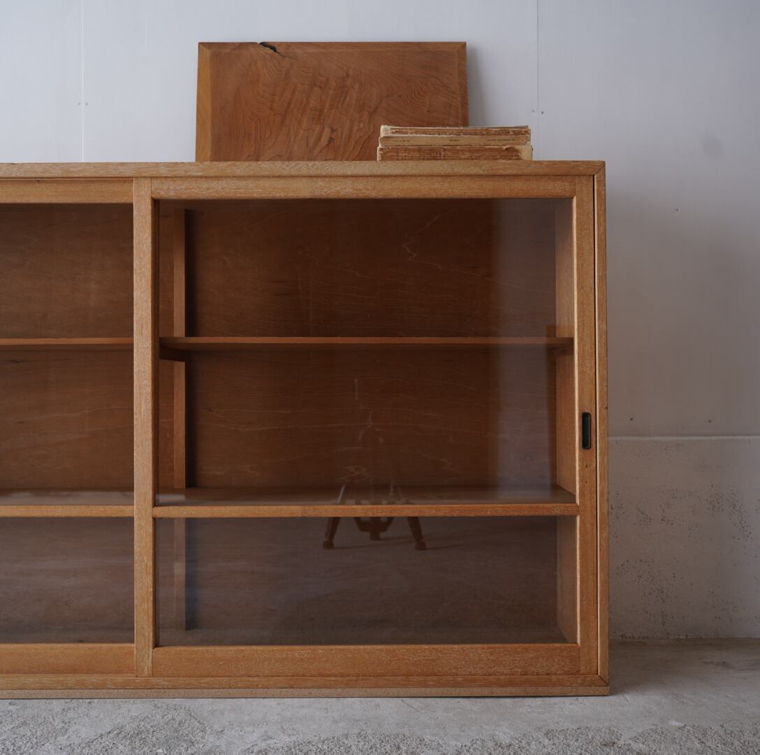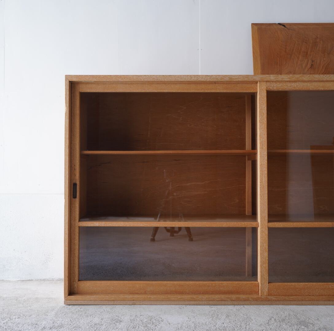 ナチュラルな木味と大きなガラスの引戸が美しいキャビネット。