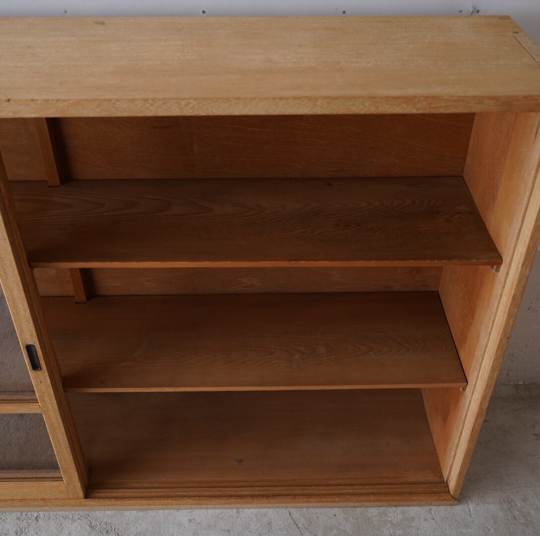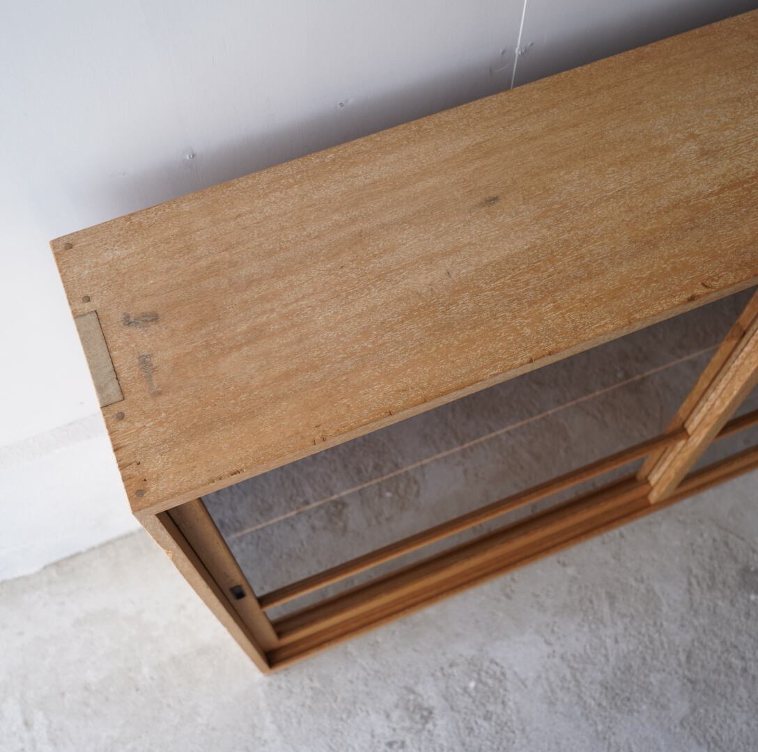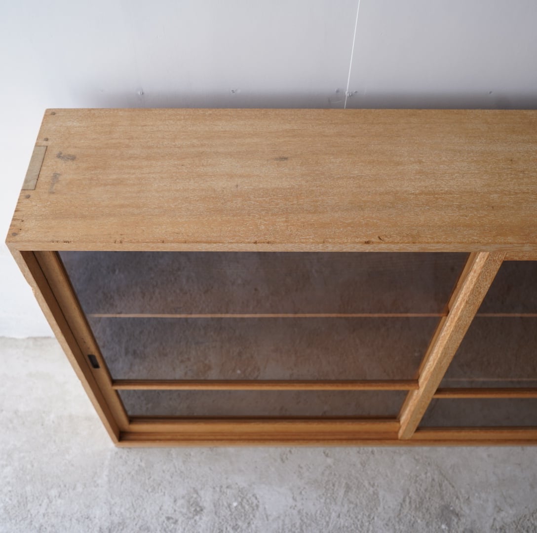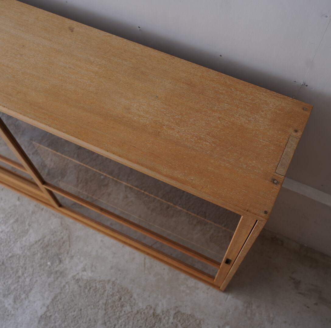 ナチュラルな木味と大きなガラスの引戸が美しいキャビネット。