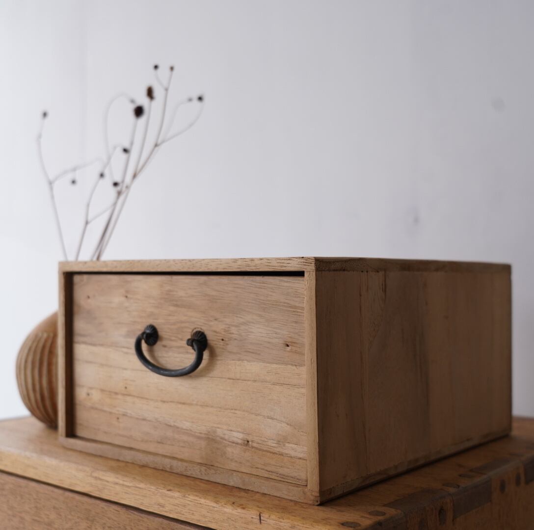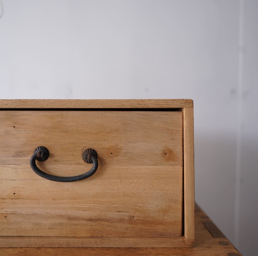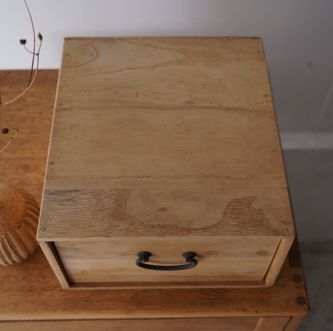 ナチュラルな木味と金属の取手が可愛らしい1杯の小引き出し。