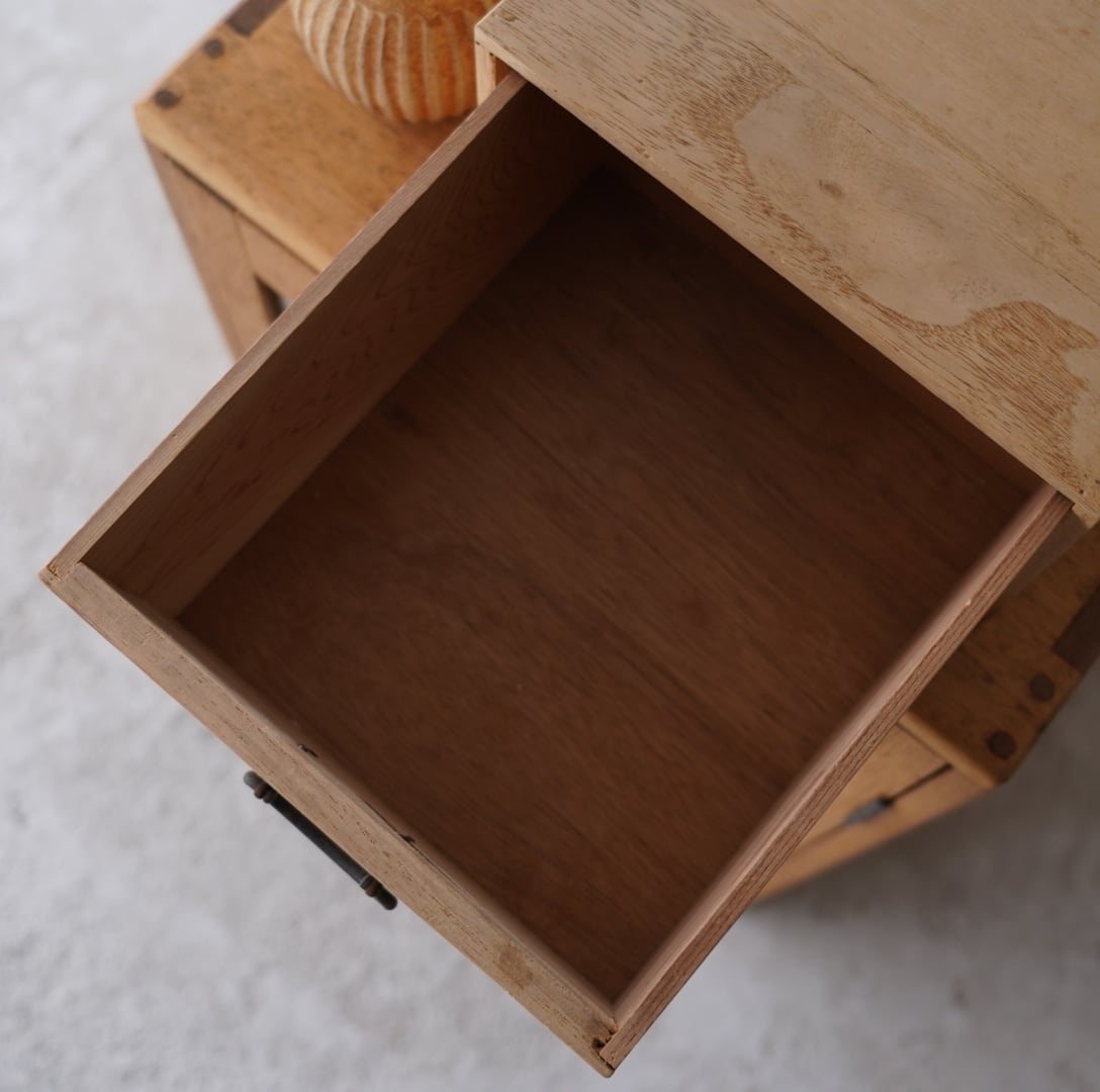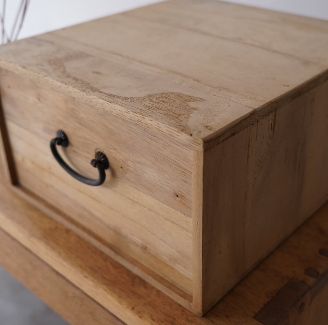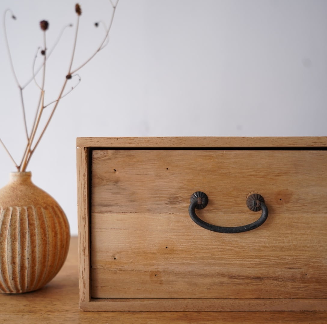 ナチュラルな木味と金属の取手が可愛らしい1杯の小引き出し。