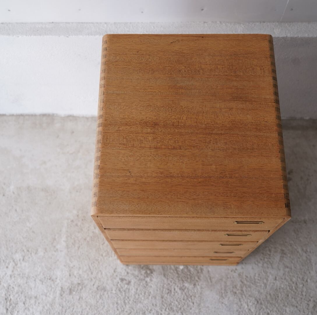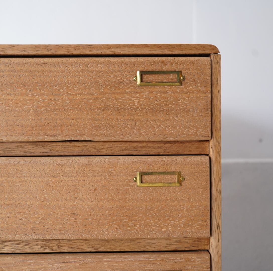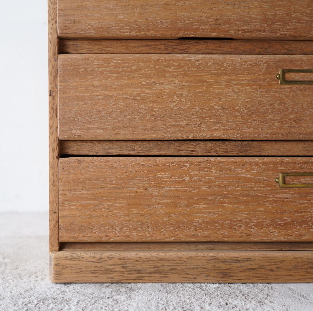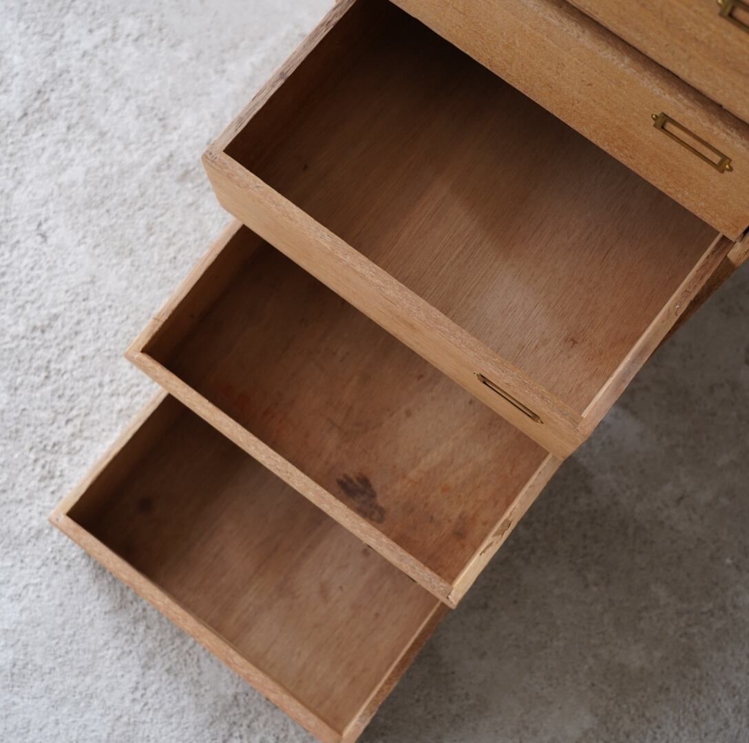 ナチュラルな木味、並んだネームプレートが可愛らしい5杯の引き出し。