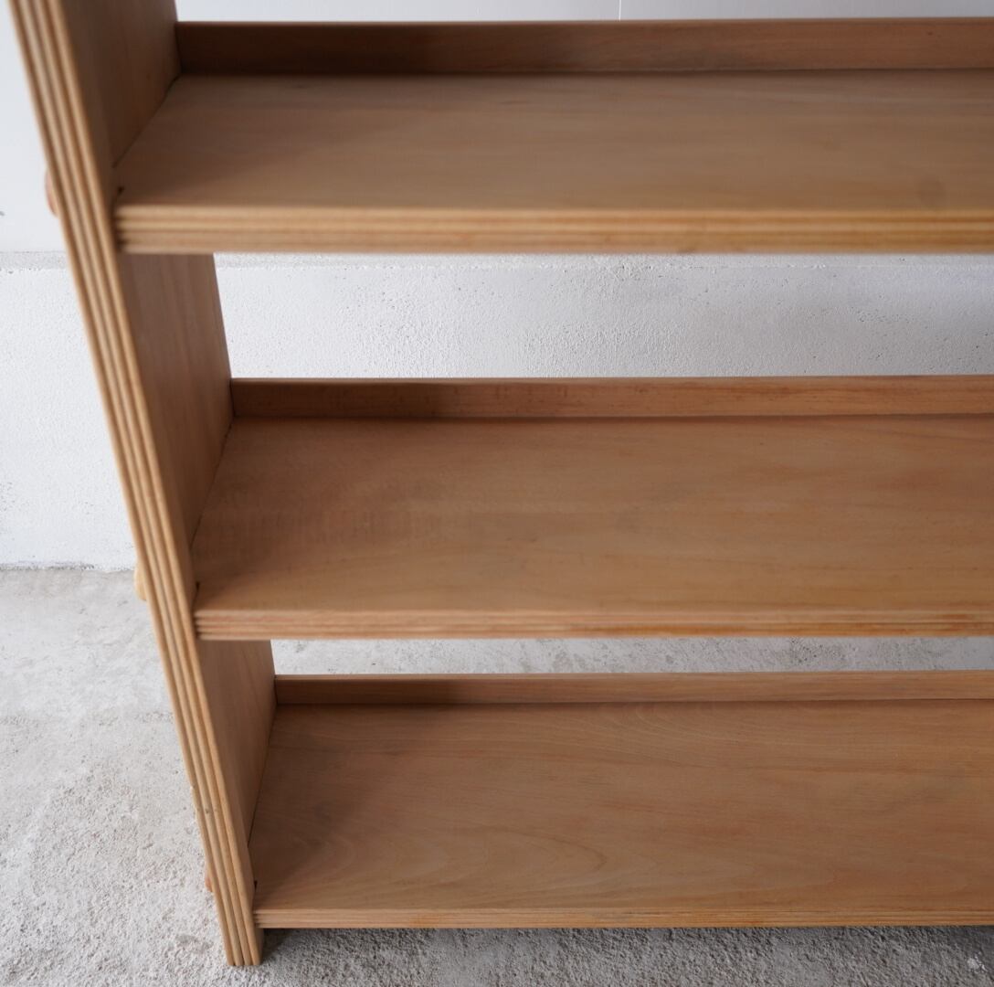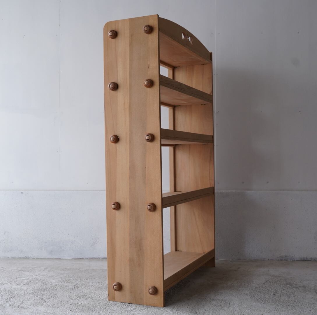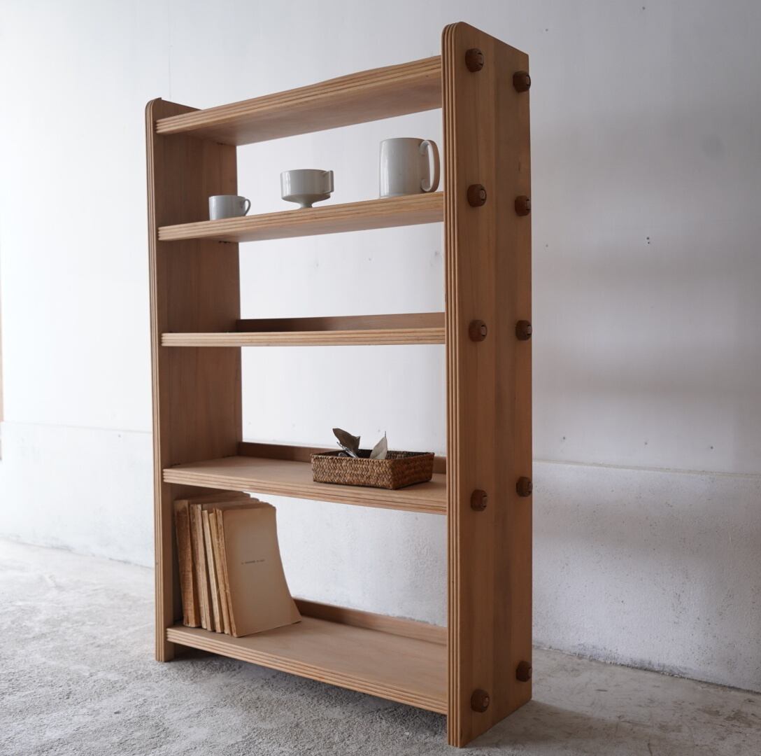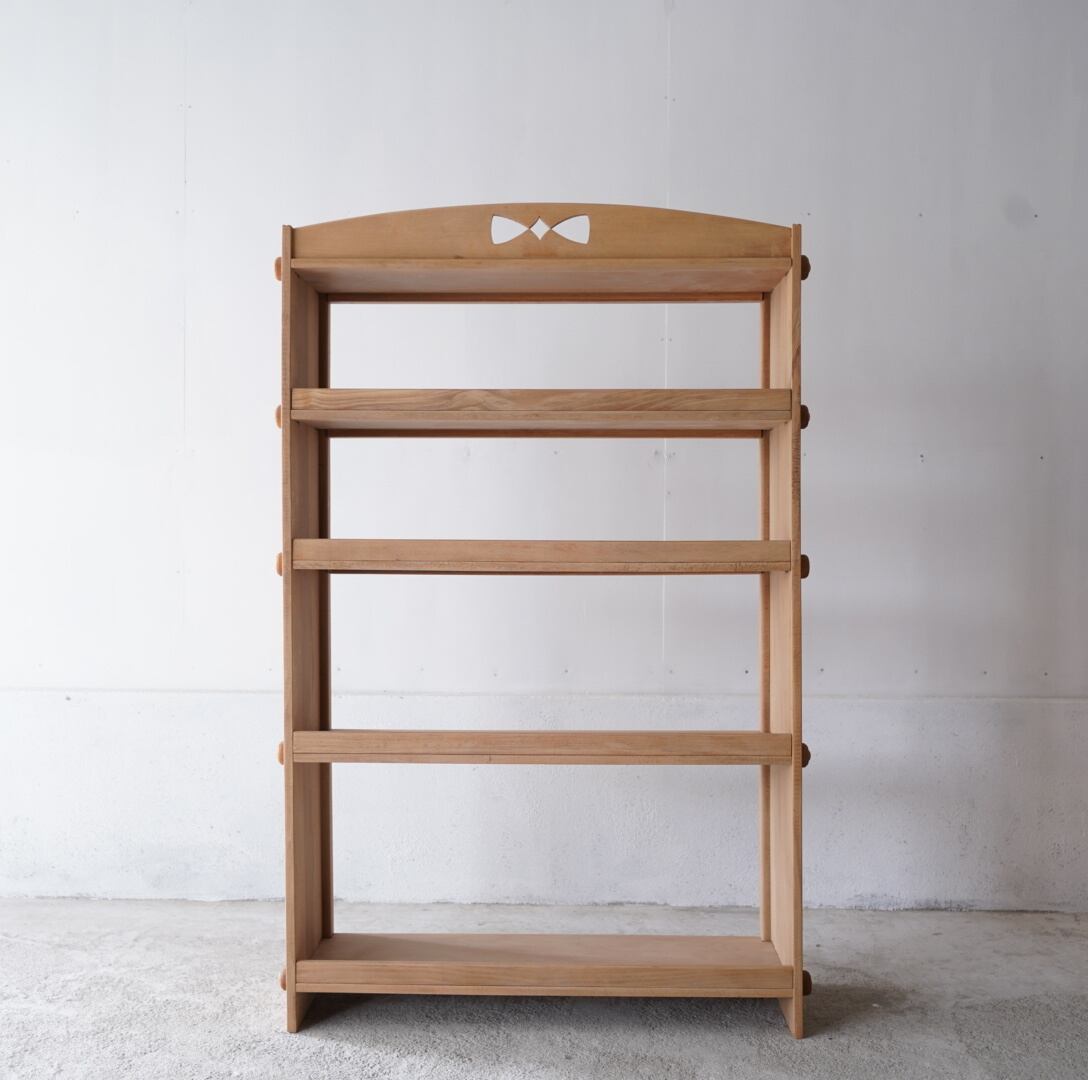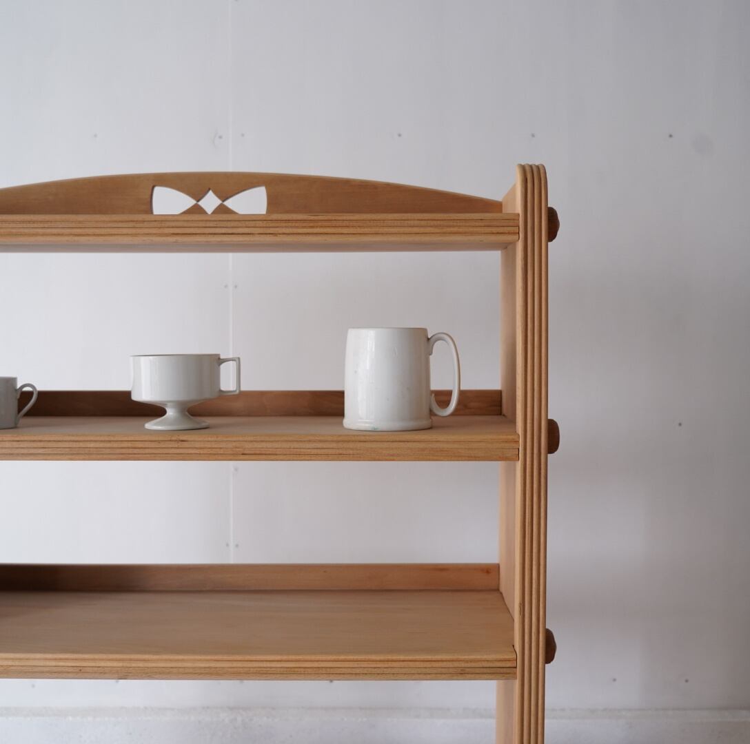 無垢材のナチュラルな木味と前面のモールディングが魅力的なオープンラック。