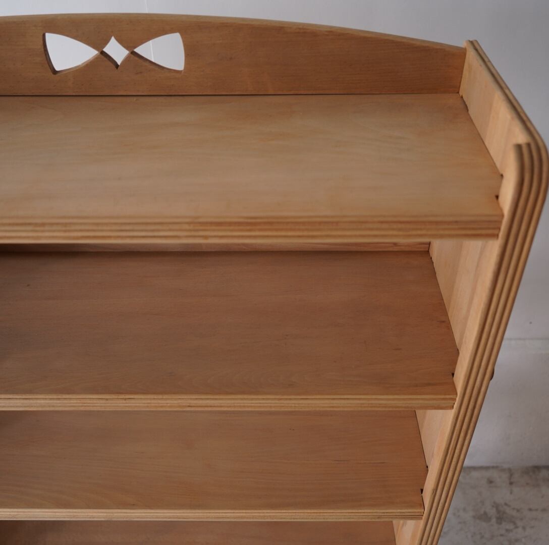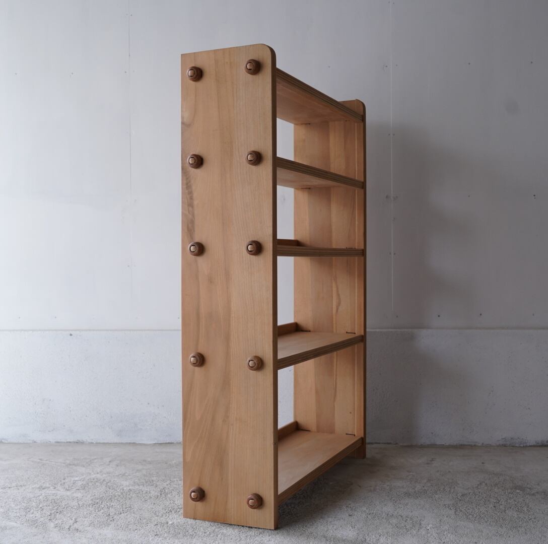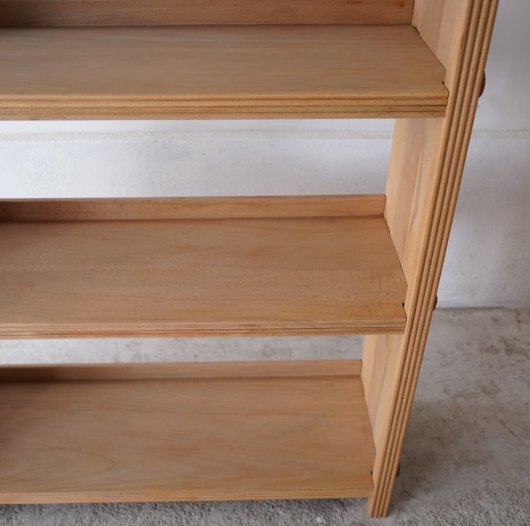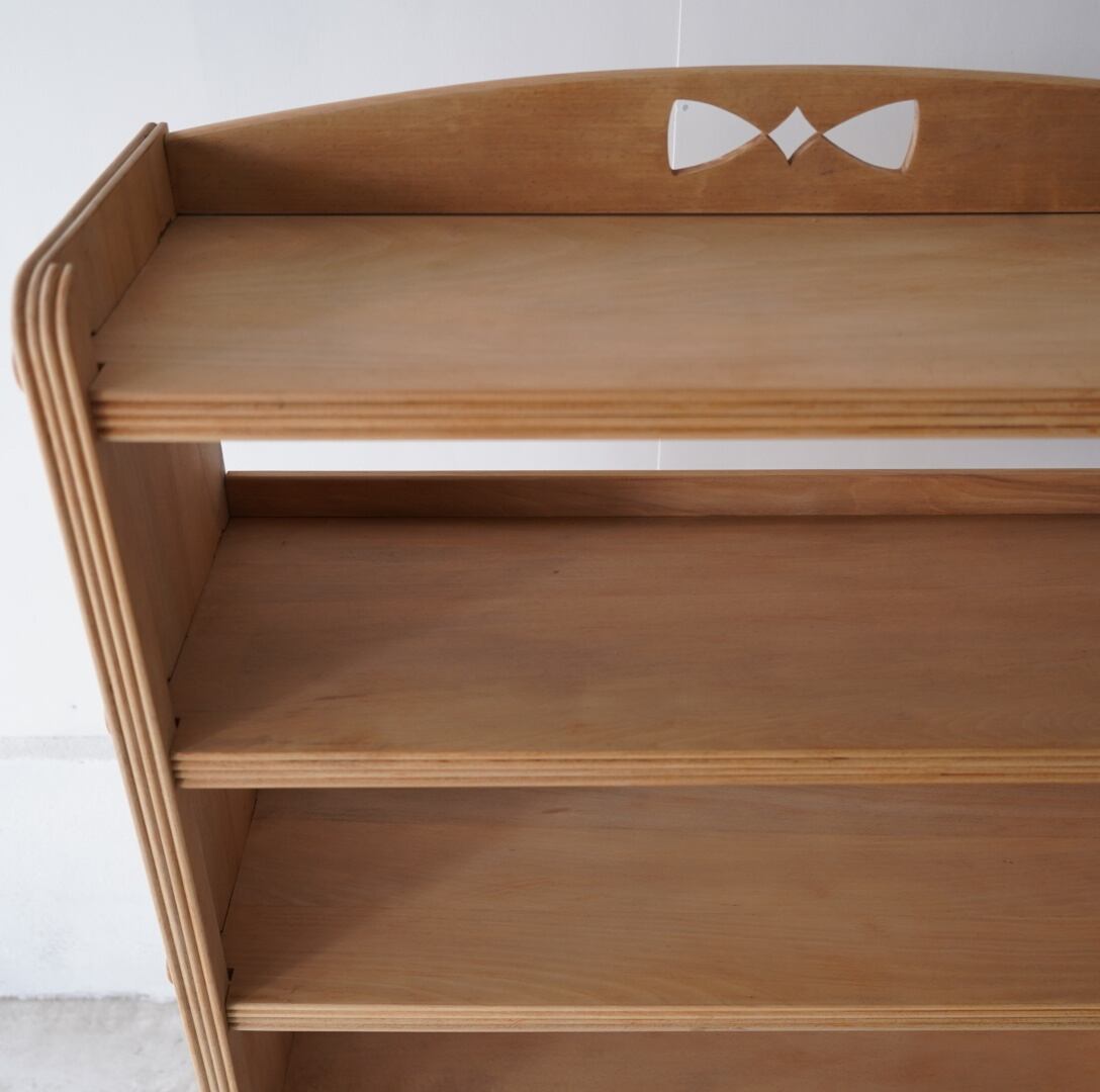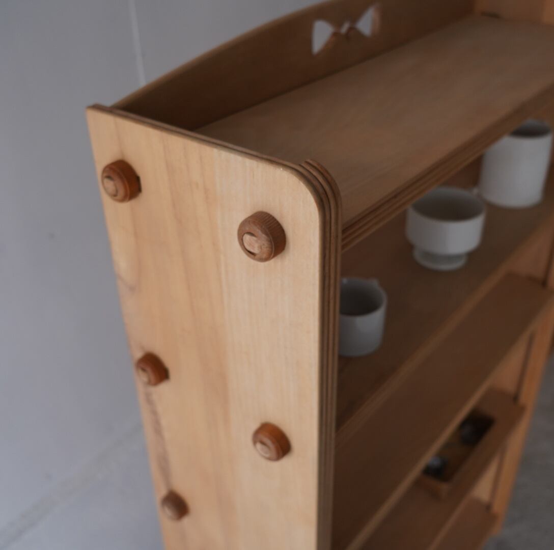 無垢材のナチュラルな木味と前面のモールディングが魅力的なオープンラック。