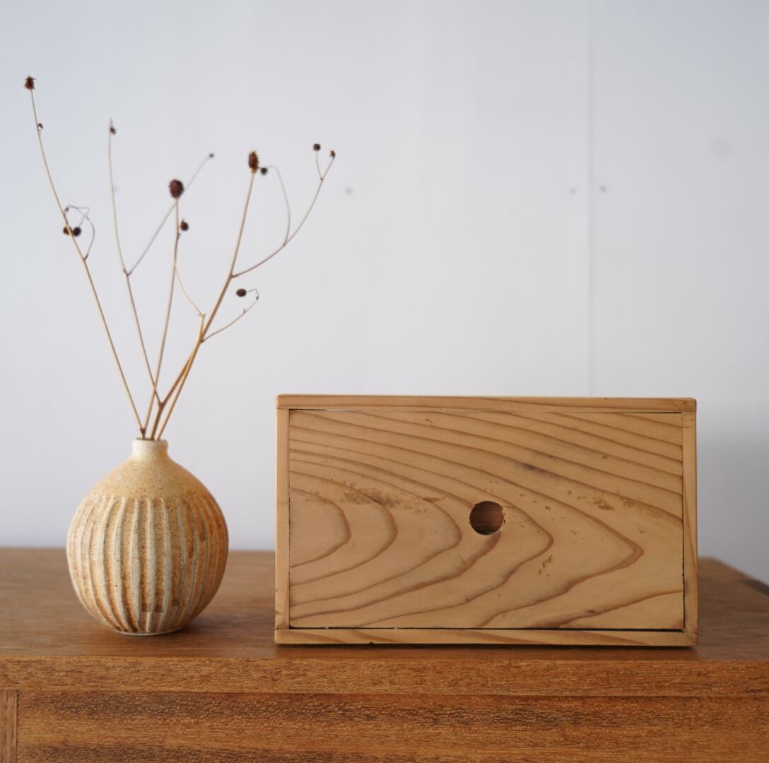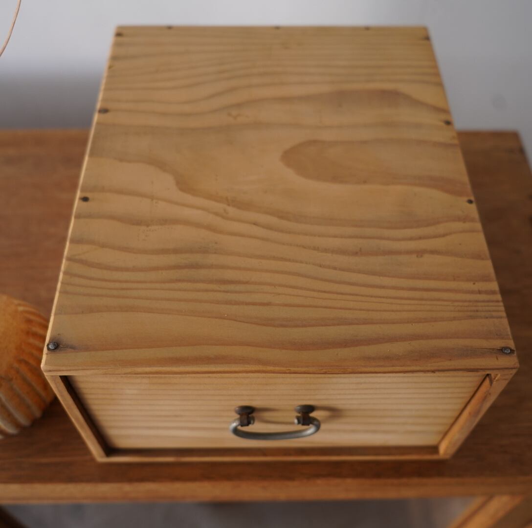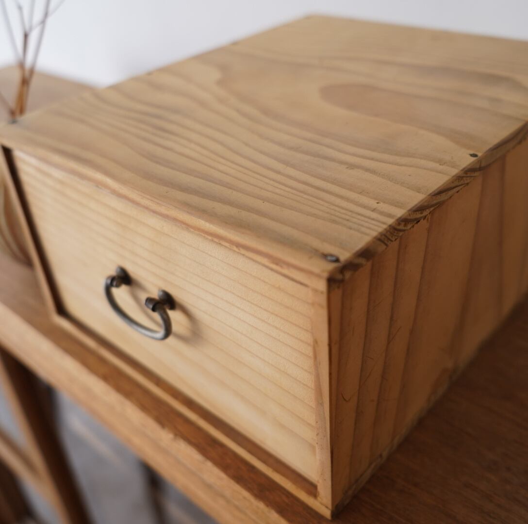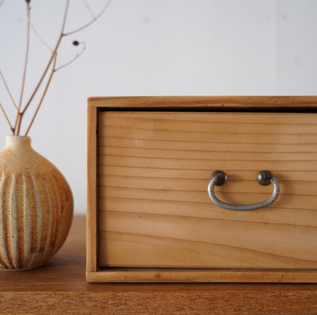 ナチュラルな木味と金属の取手が可愛らしい1杯の小引き出し。