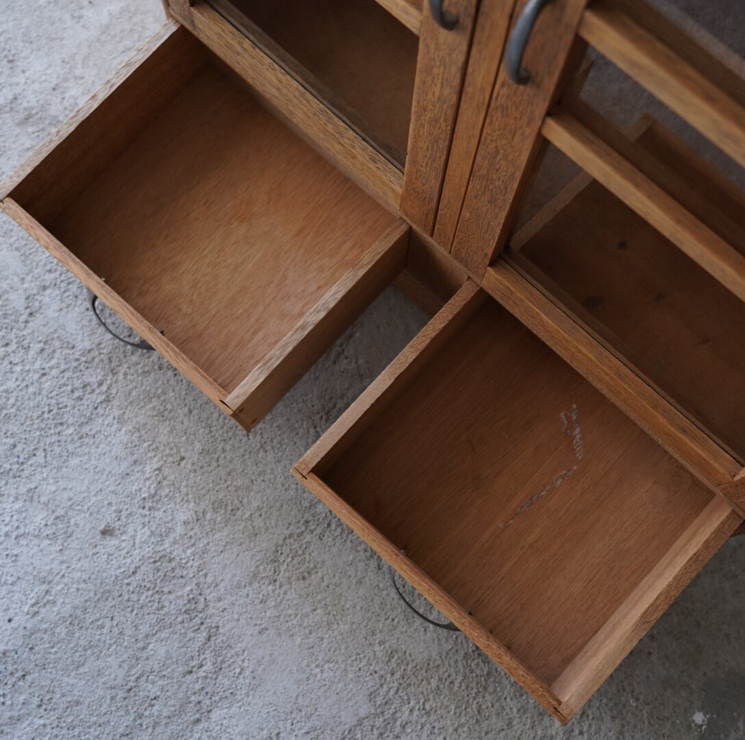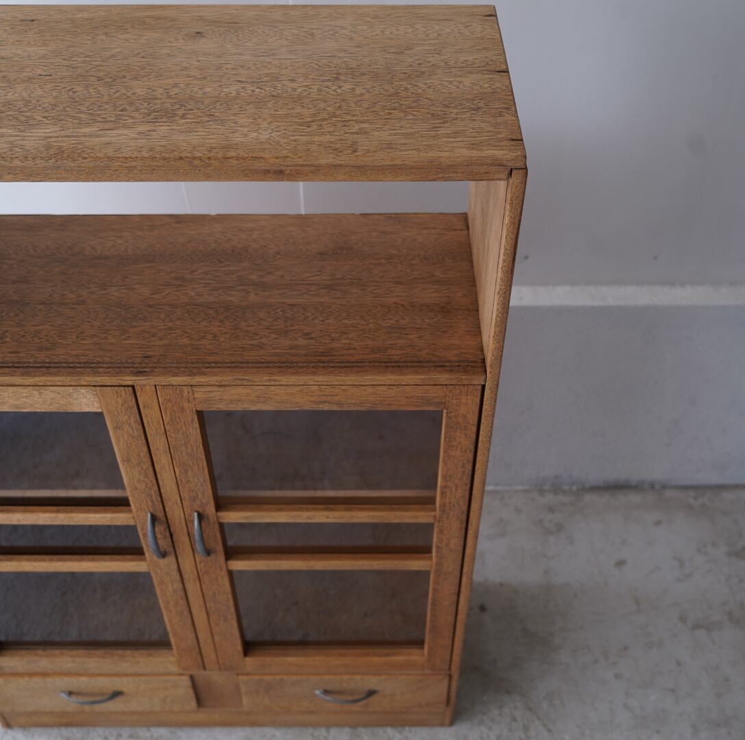 ナチュラルな木味が魅力的な開き戸のキャビネット。