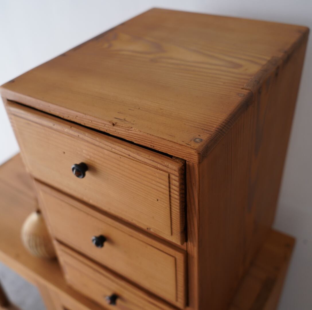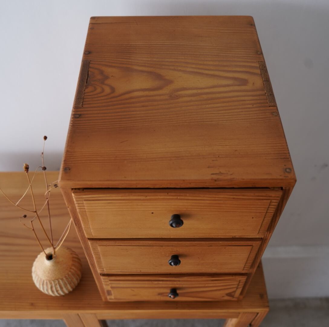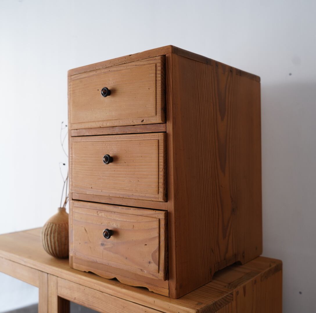 無垢材の素朴な風合いとひかえめつまみが魅力的な3杯の引き出し。