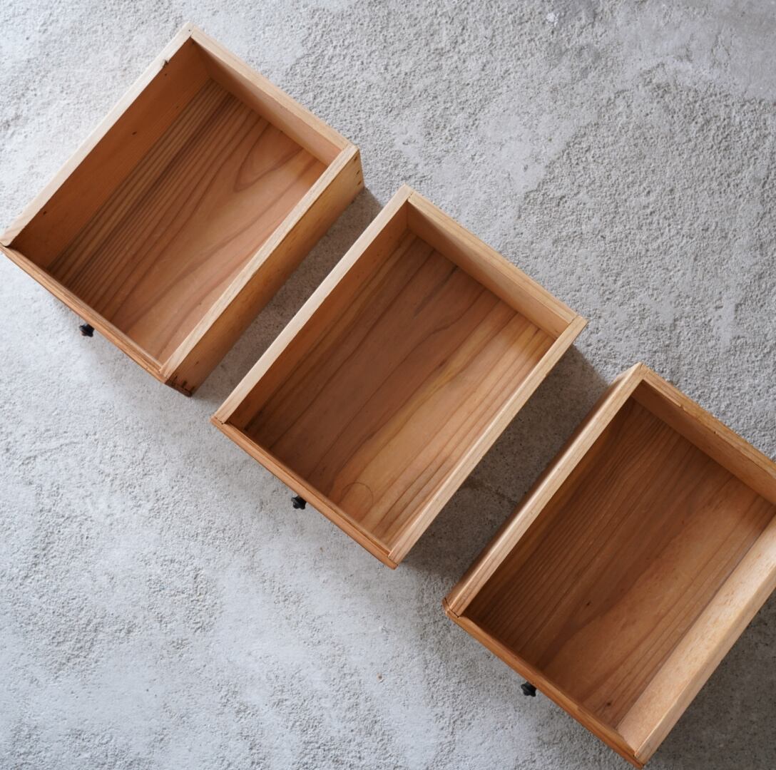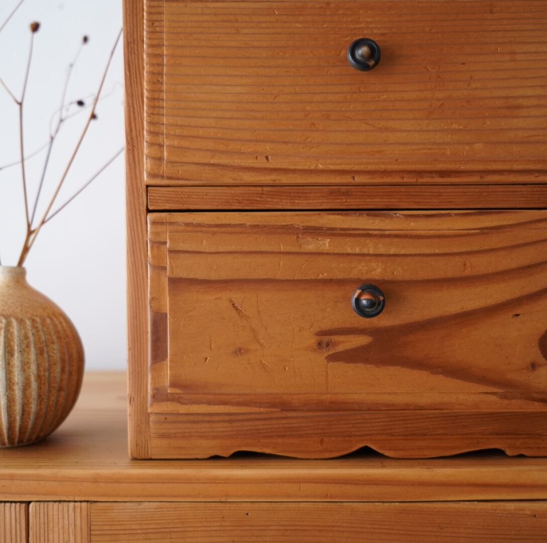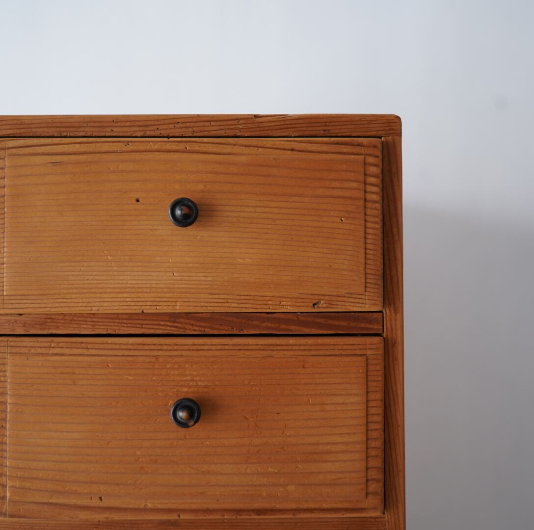 無垢材の素朴な風合いとひかえめつまみが魅力的な3杯の引き出し。