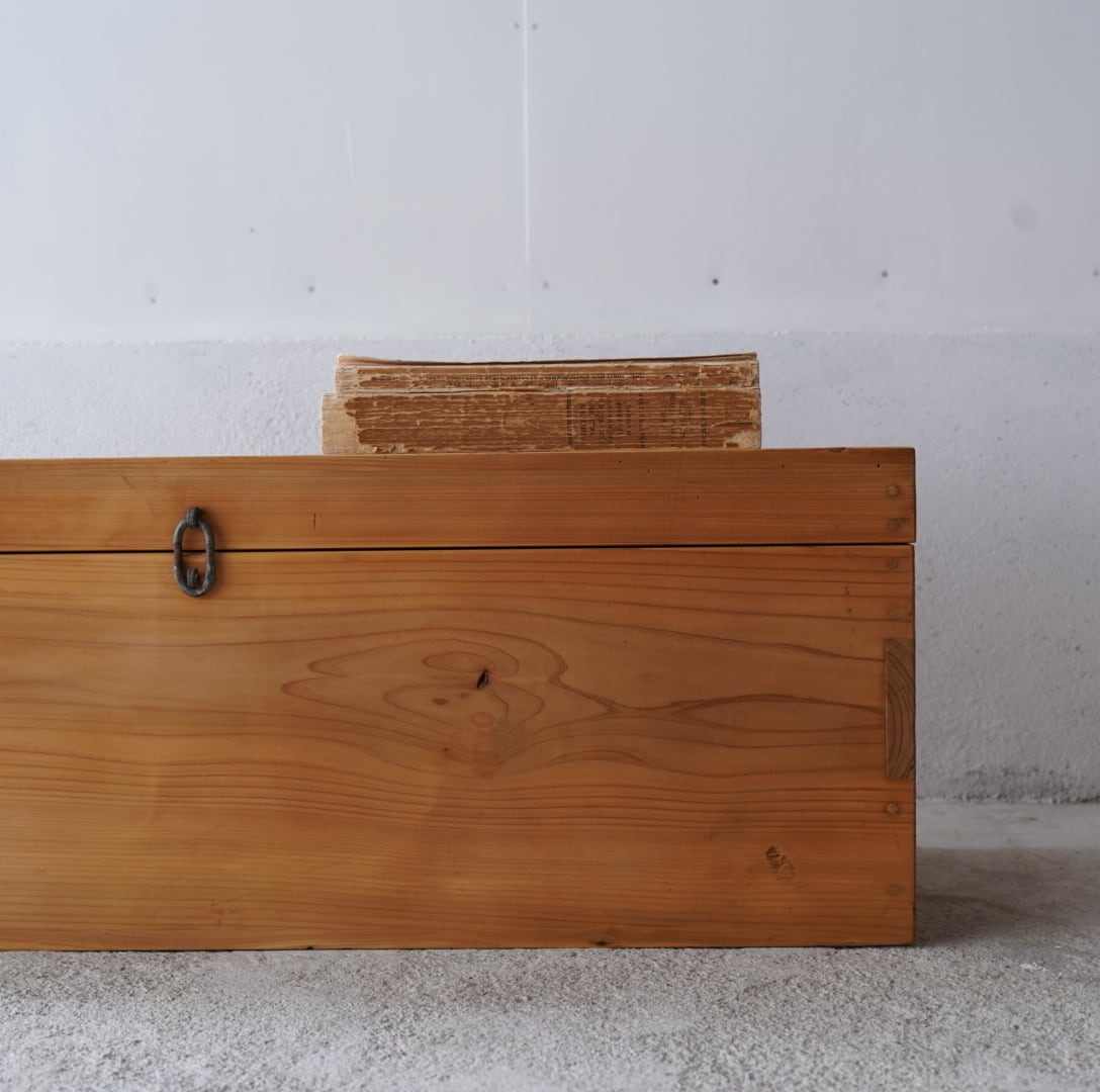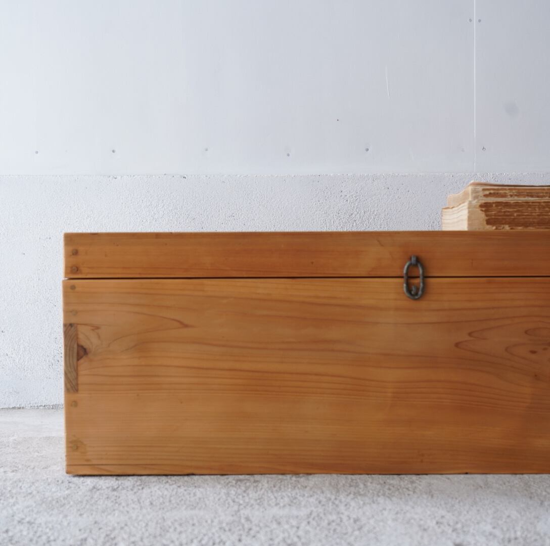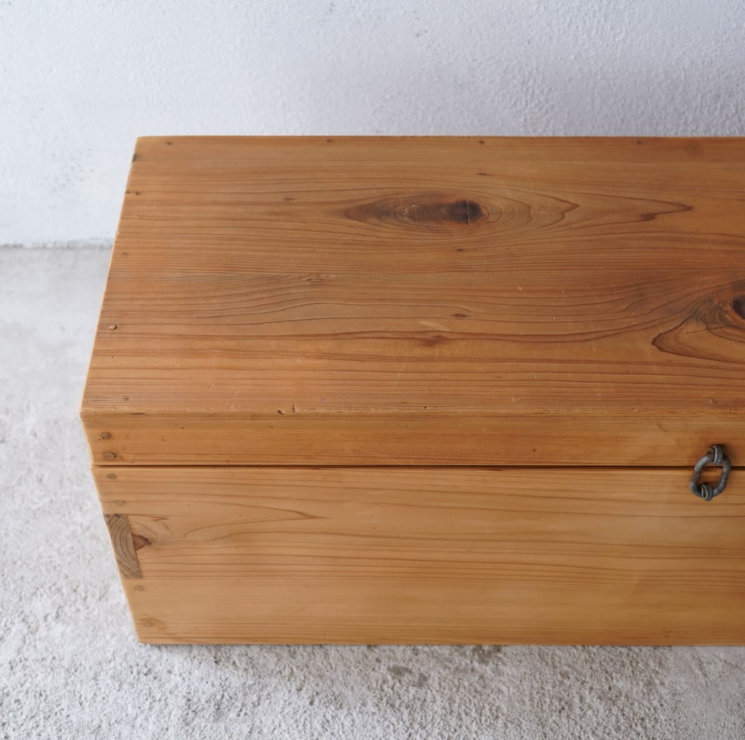 古い無垢材の素朴な風合いが魅力的な古い木箱。