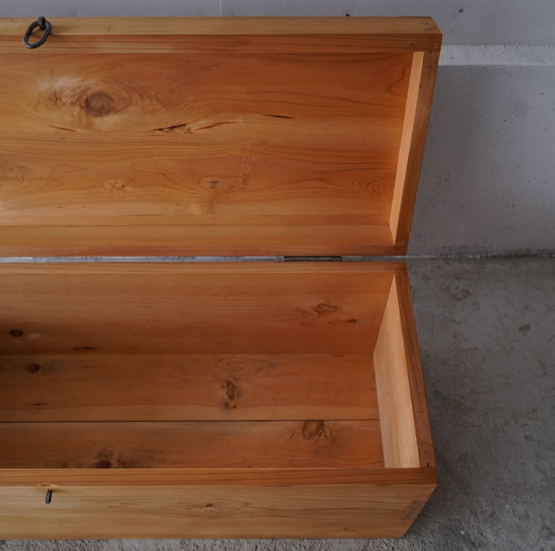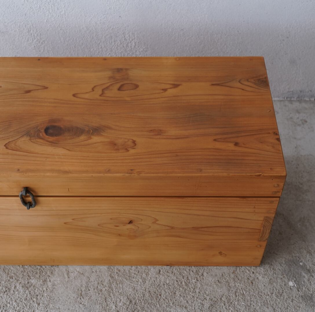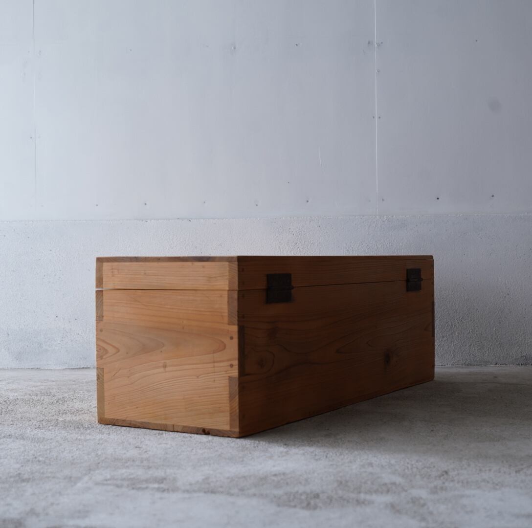 古い無垢材の素朴な風合いが魅力的な古い木箱。