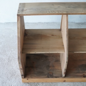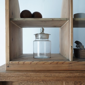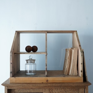 すっかり色の抜けた古木の風合いとガラスの透明感が美しいショーケース。