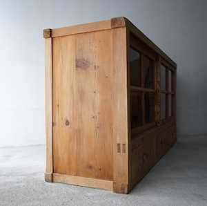 無垢材のナチュラルな木味と大きな十字ガラスの引き戸が美しいキャビネット。