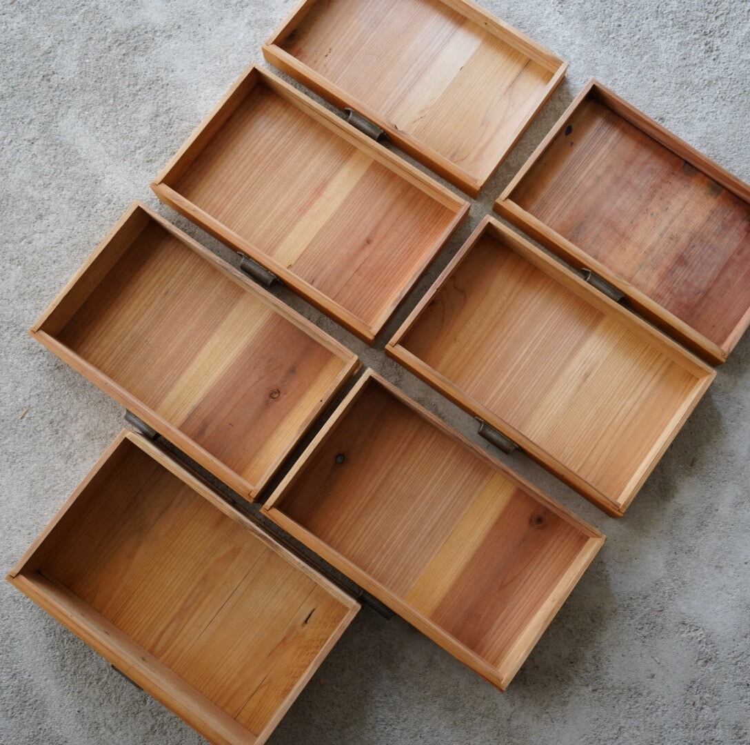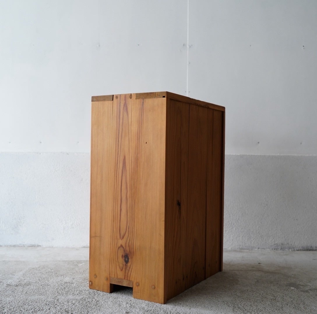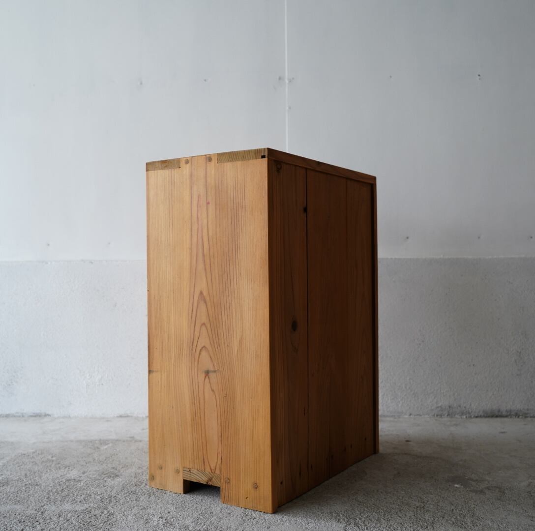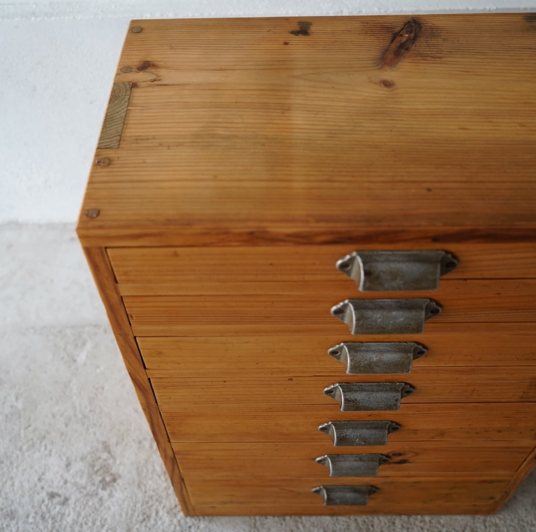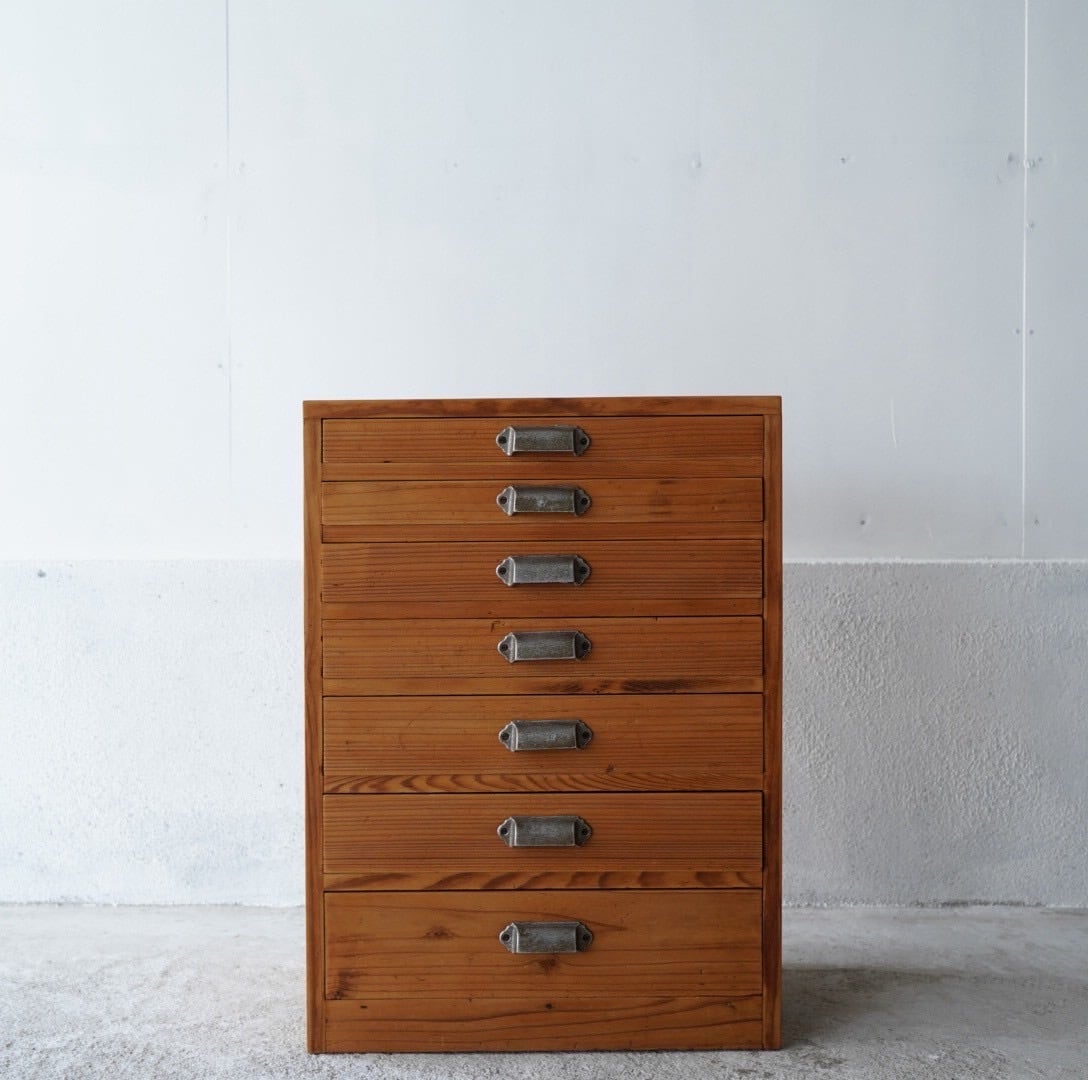 無垢材のナチュラルな木味と経年変化のあるアルミ取手が魅力的な7杯の引き出し2点。