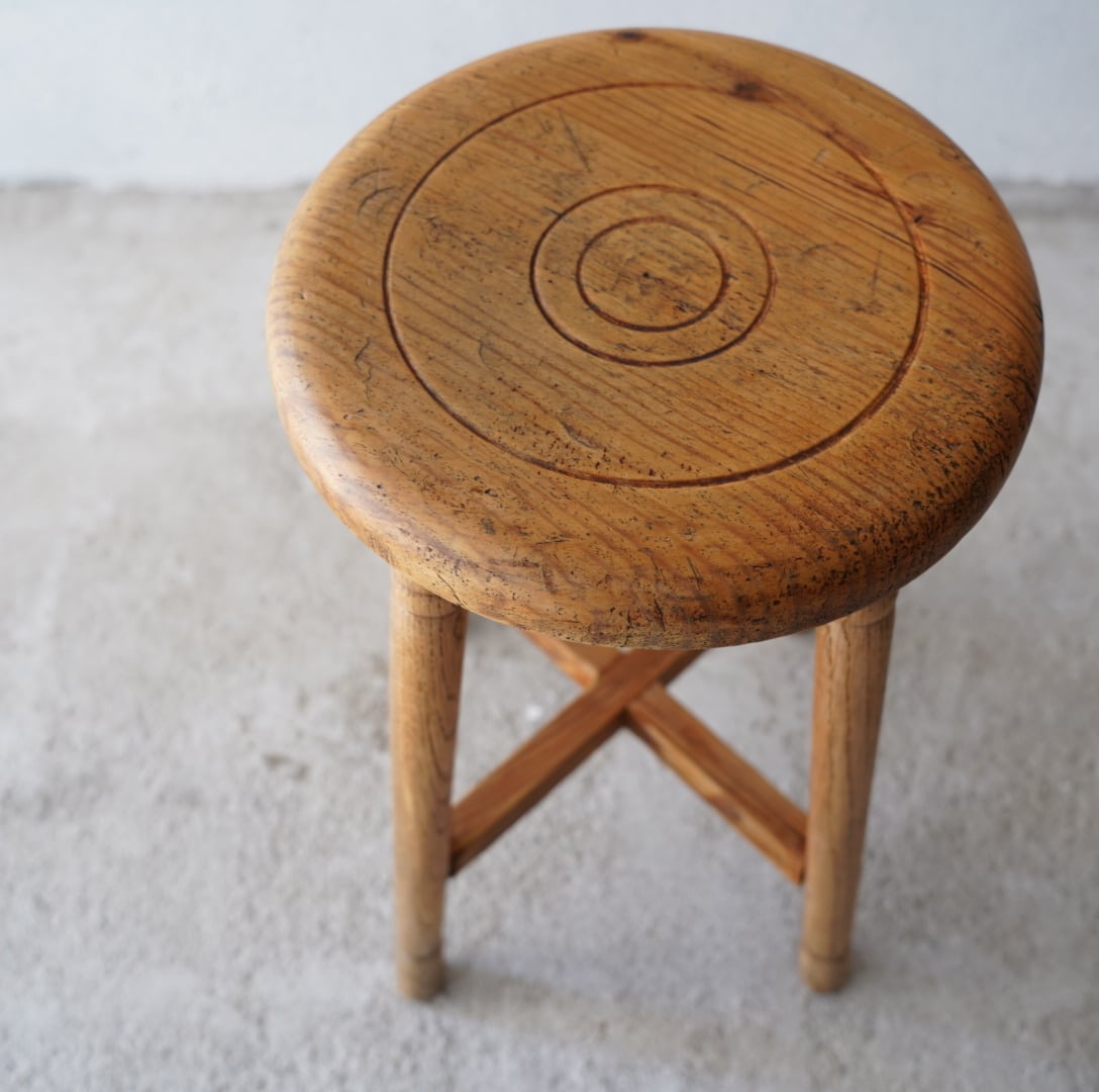 無垢材のナチュラルな木味が魅力的な丸座面のスツール。