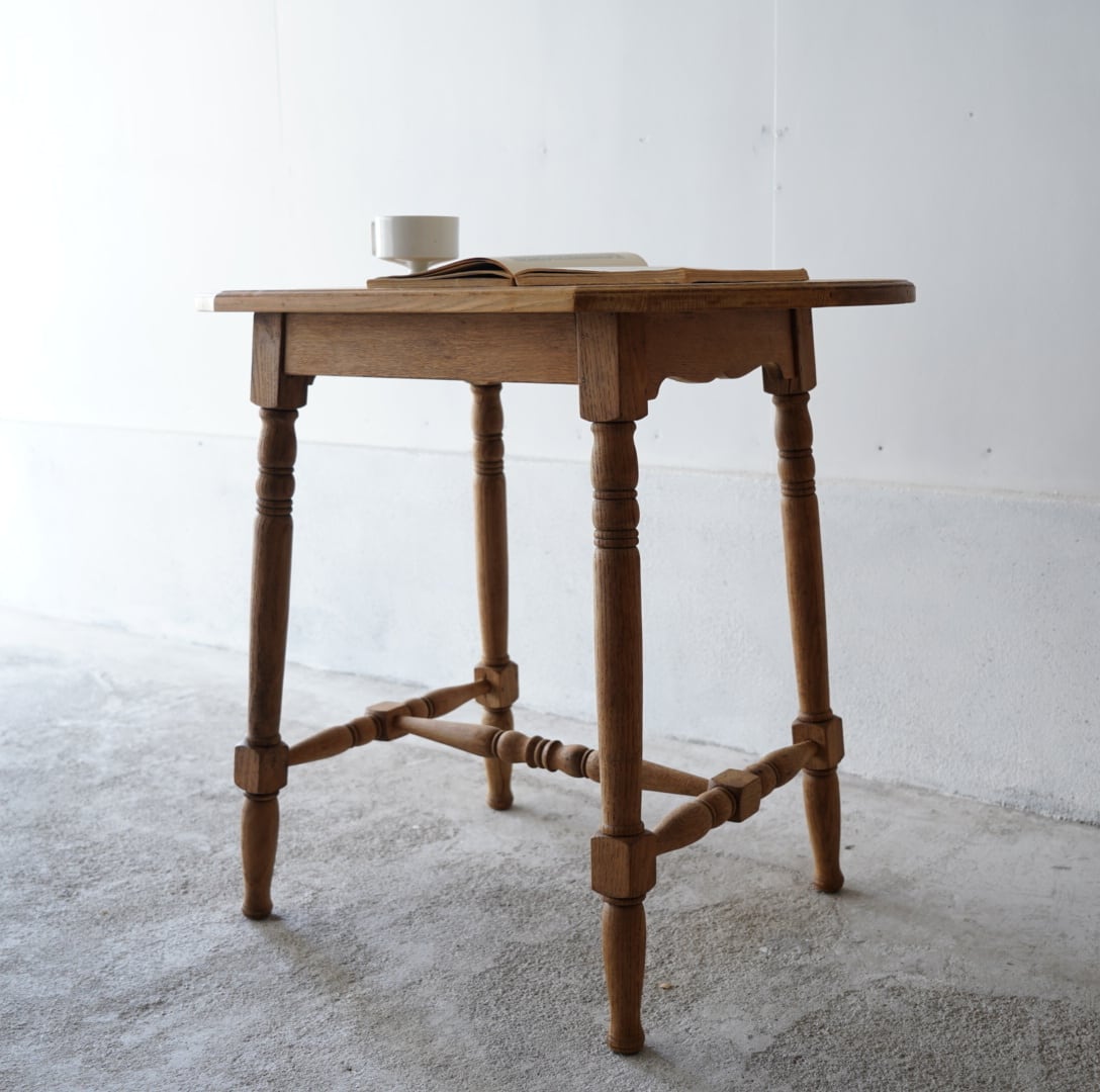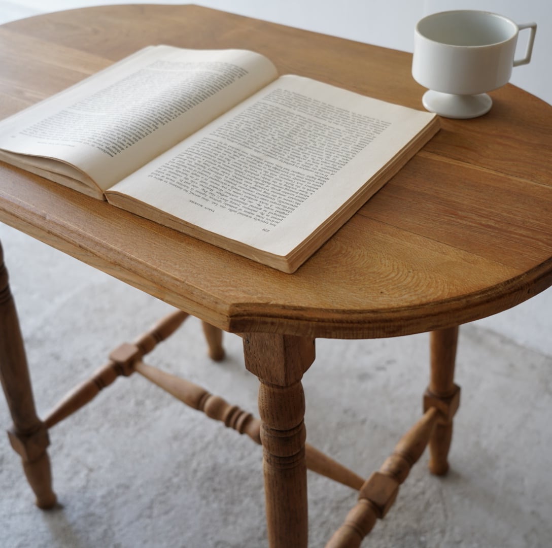 無垢材のナチュラルな木味と天板や脚部の美しい装飾が魅力的です。