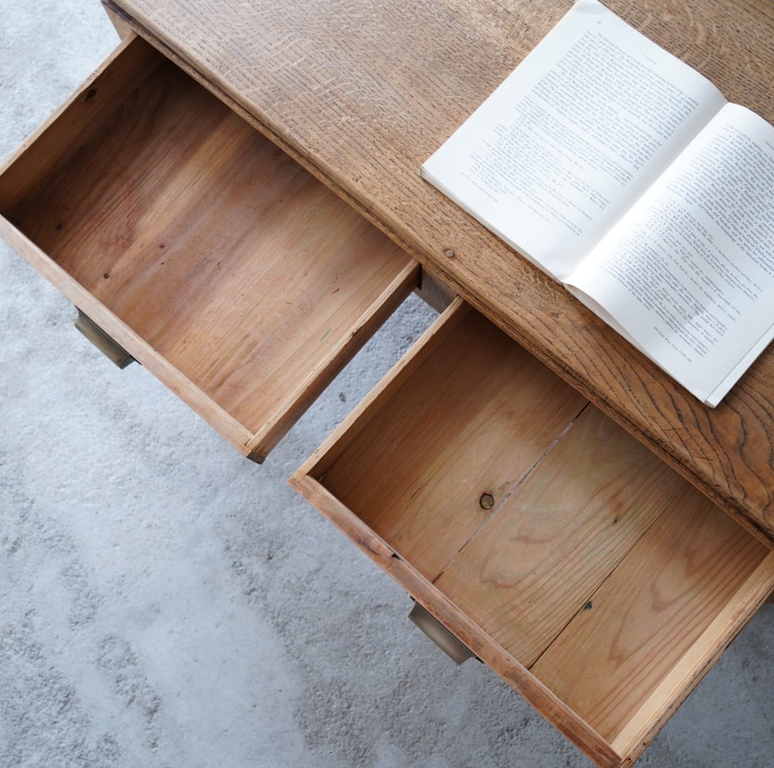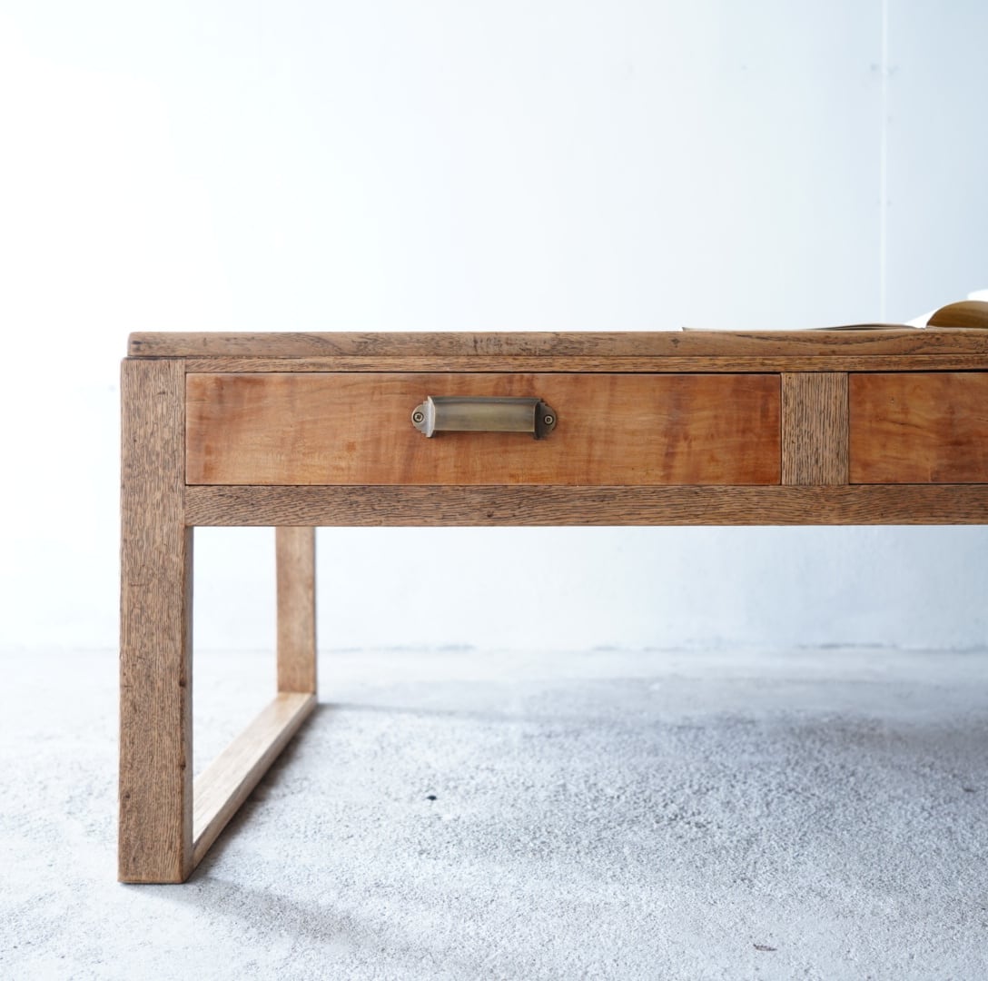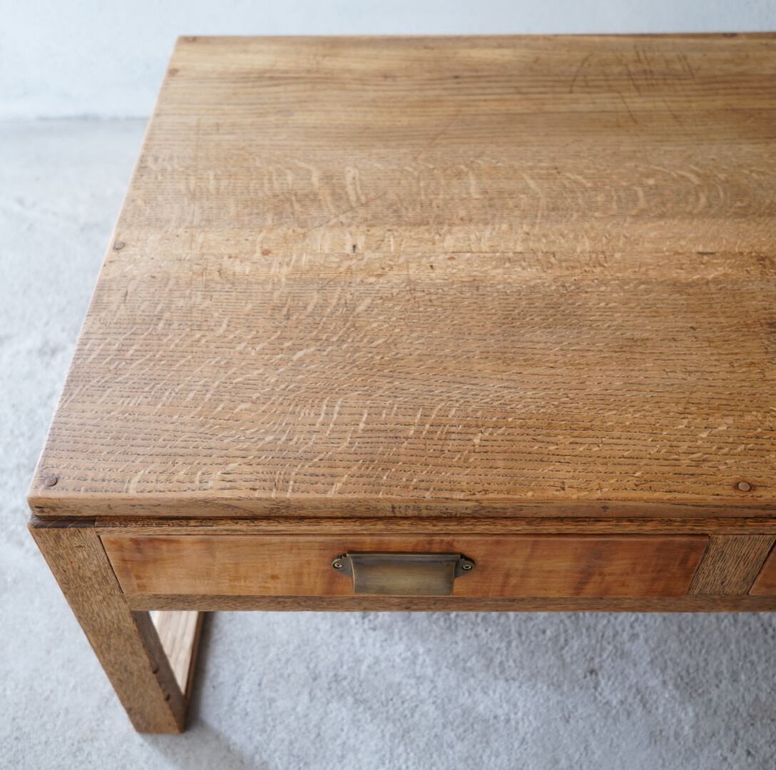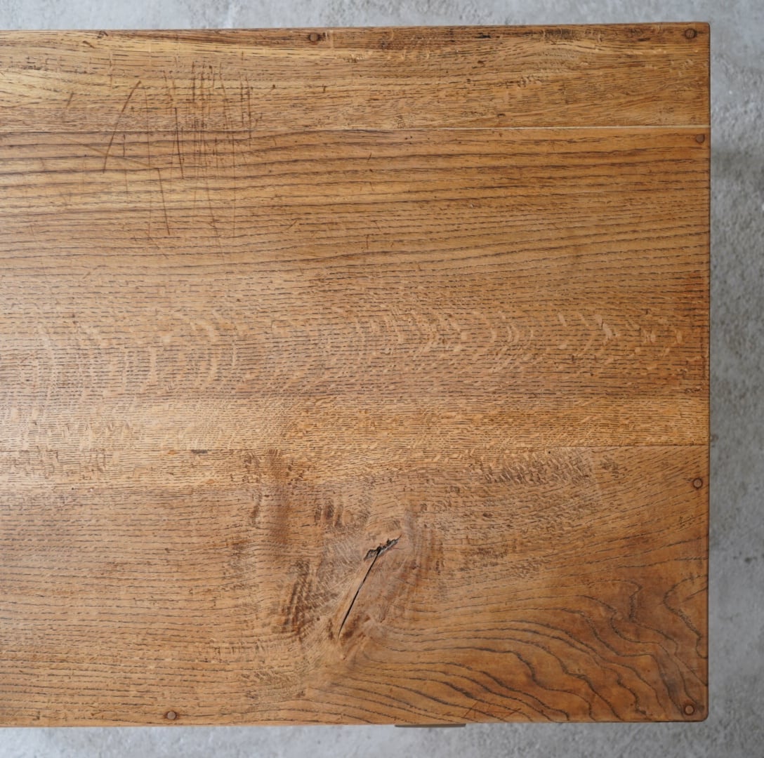 とても古いテーブルですが、シンプルなデザインは現代のインテリアにも取り入れやすく、お部屋のローテーブルやセンターテーブルに雰囲気よくお使いいただけそうです。