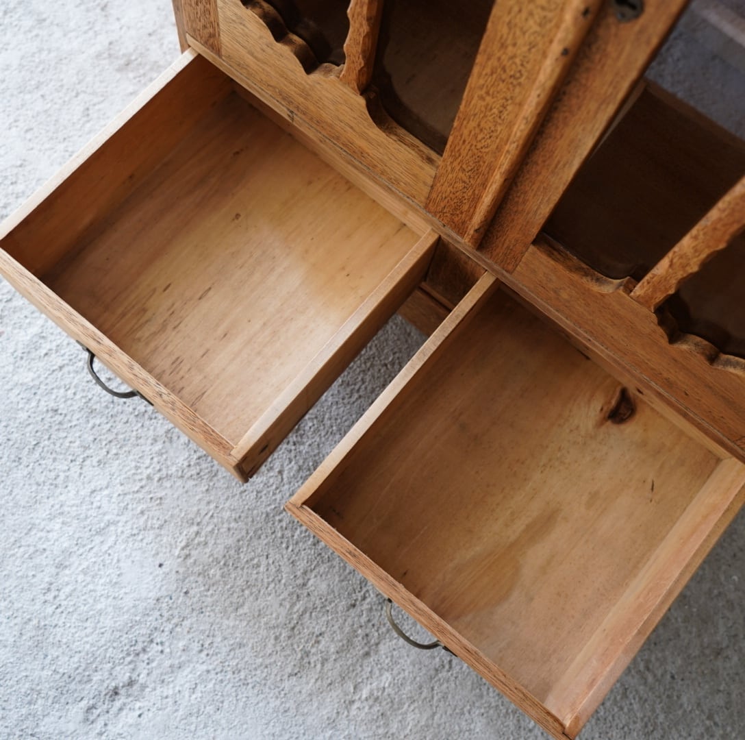 とても古いキャビネットですが新しいものにはない惹きつけられるような魅力を感じます。