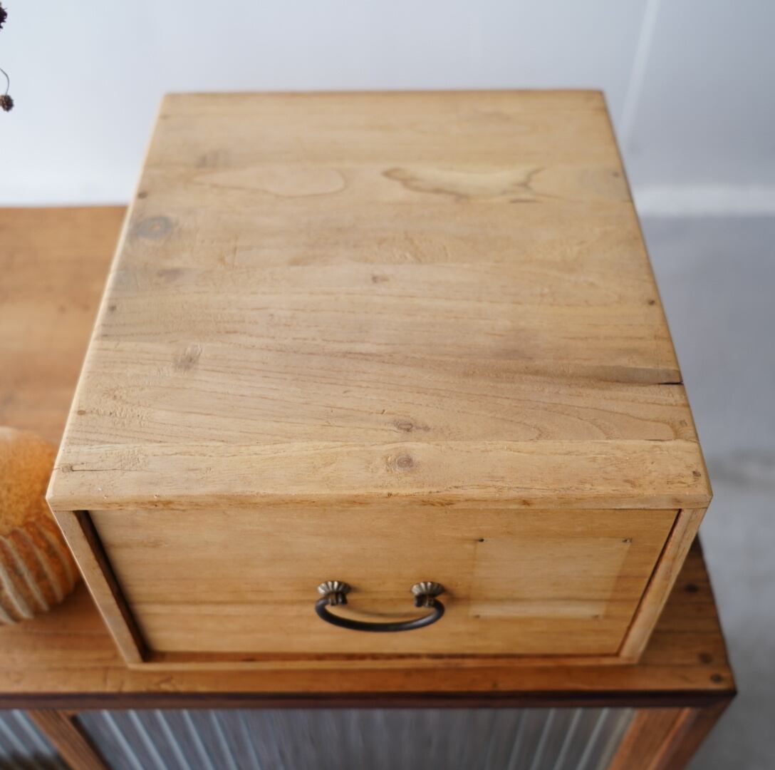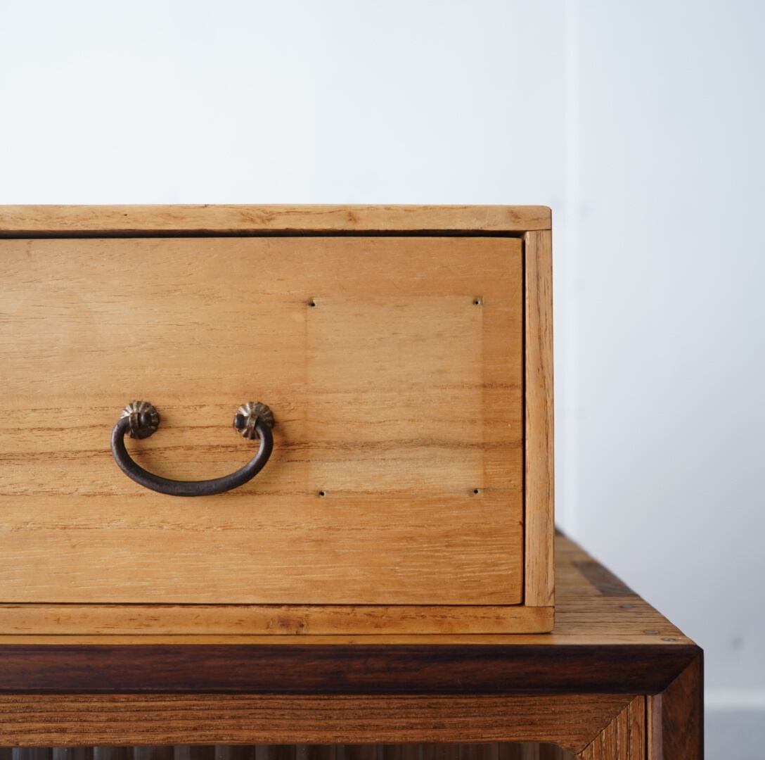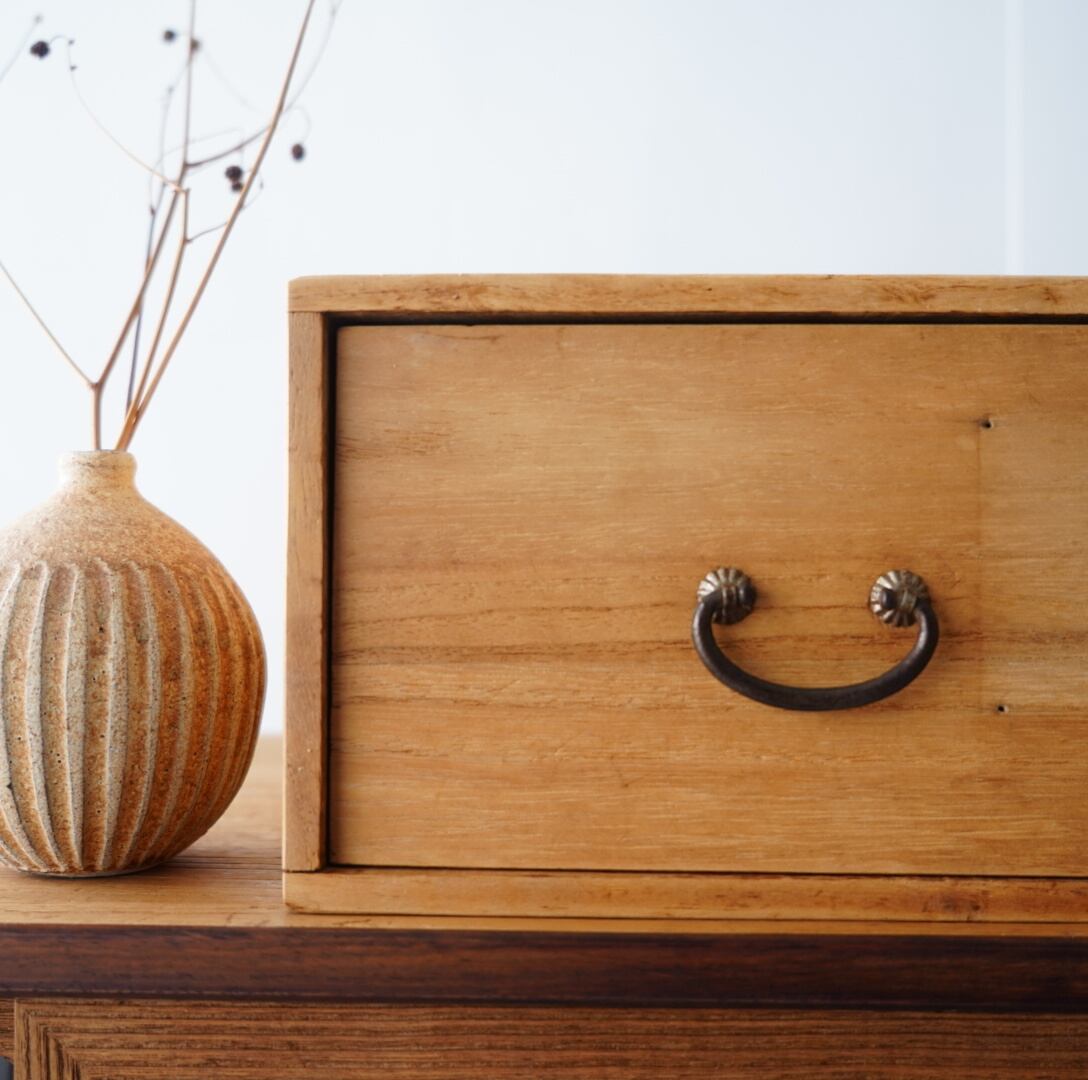 ナチュラルな木味と金属の取手が可愛らしい1杯の小引き出し。