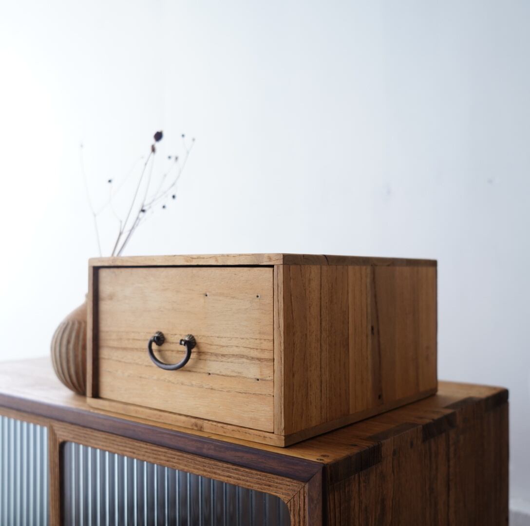 もともと薬箱として使われていたもので新しいものにはない深い味わいがあります。