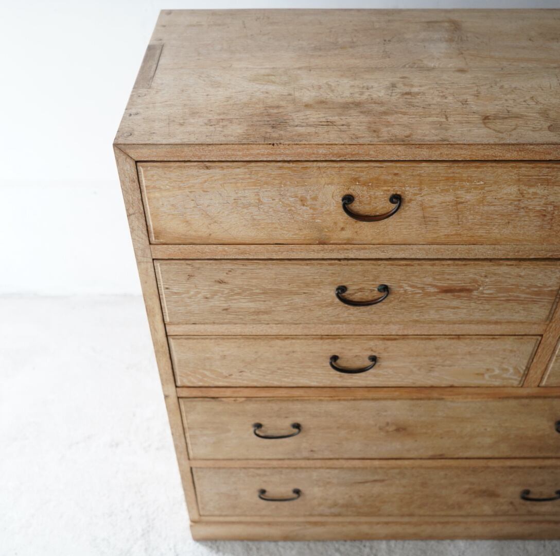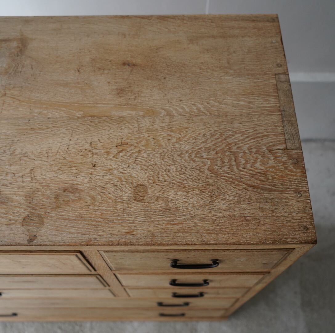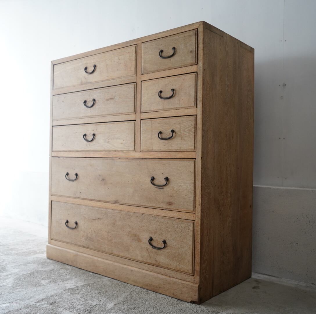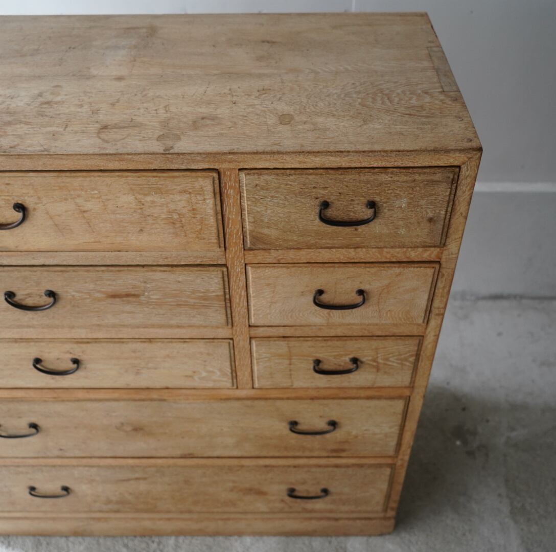 楢材のナチュラルな木味と美しく並んだ引き出しが魅力的。
