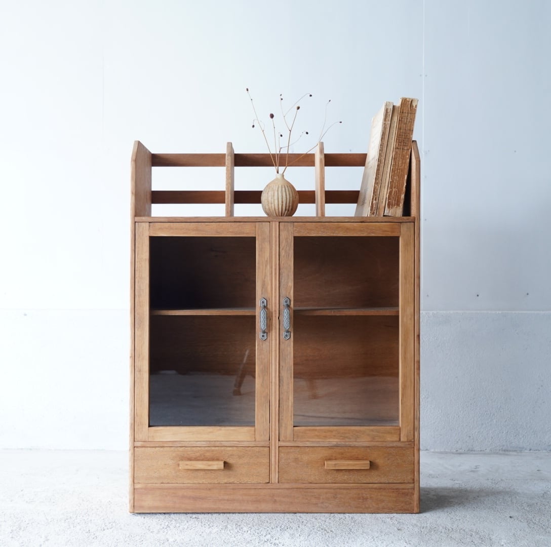天板にブックスタンドのついたキャビネット。ナチュラルな木味と個性的なデザインが魅力的です。