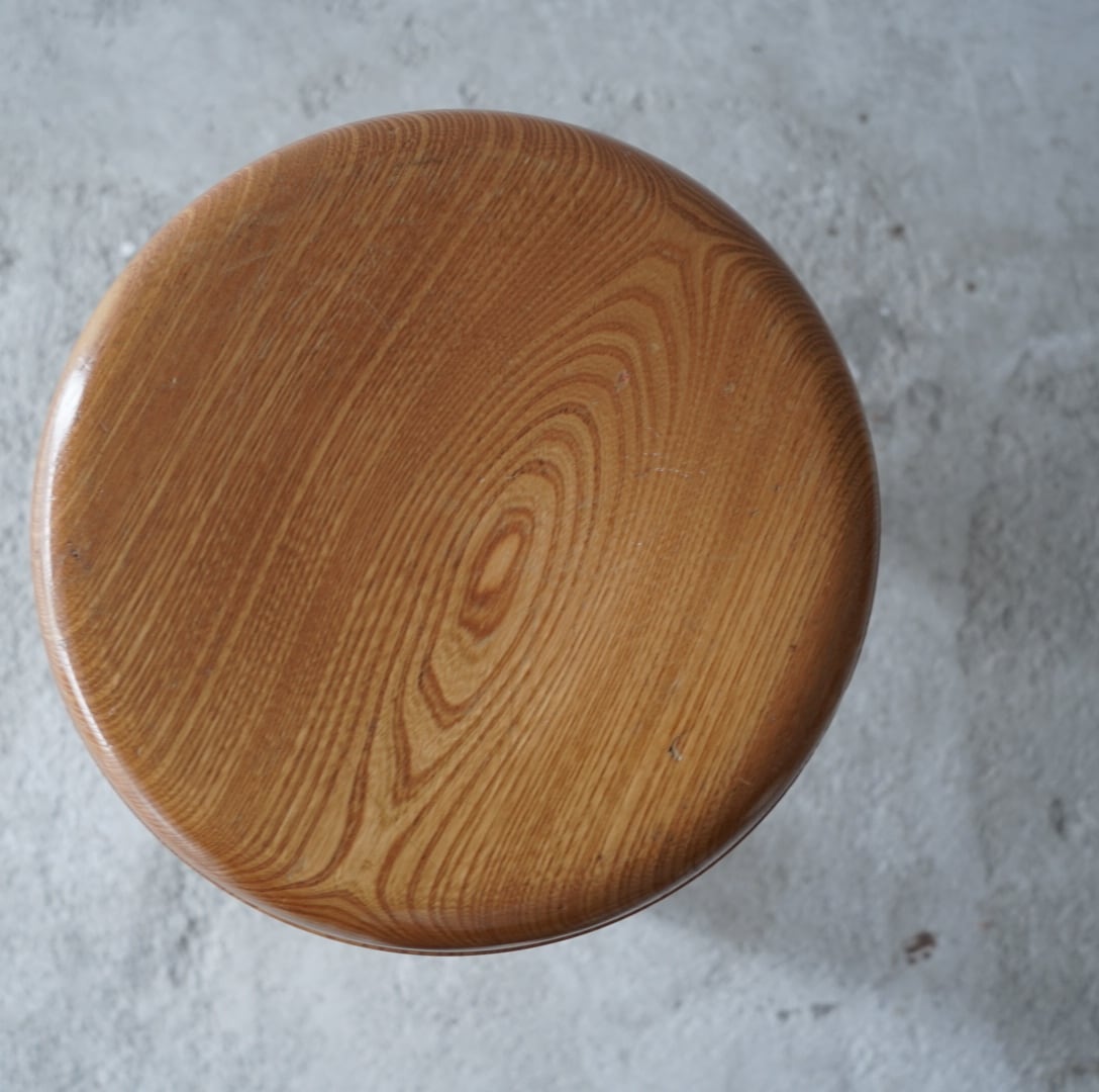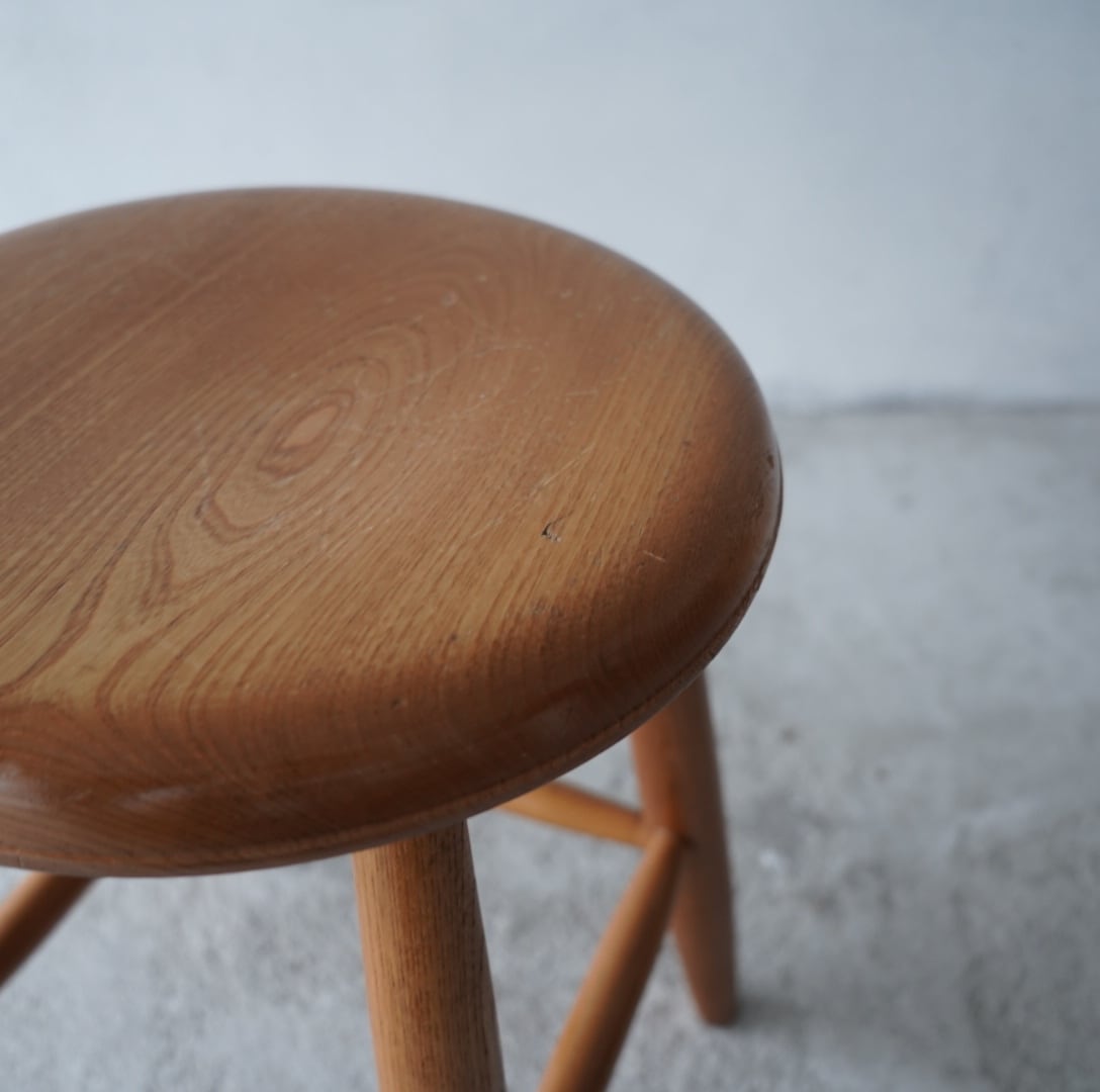 無垢材の温かみのある木味と滑らかな丸座面が美しいスツールです。