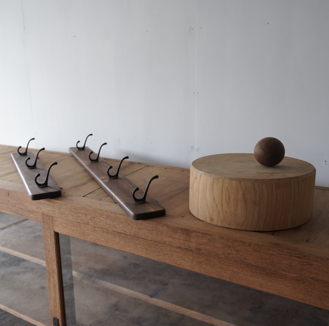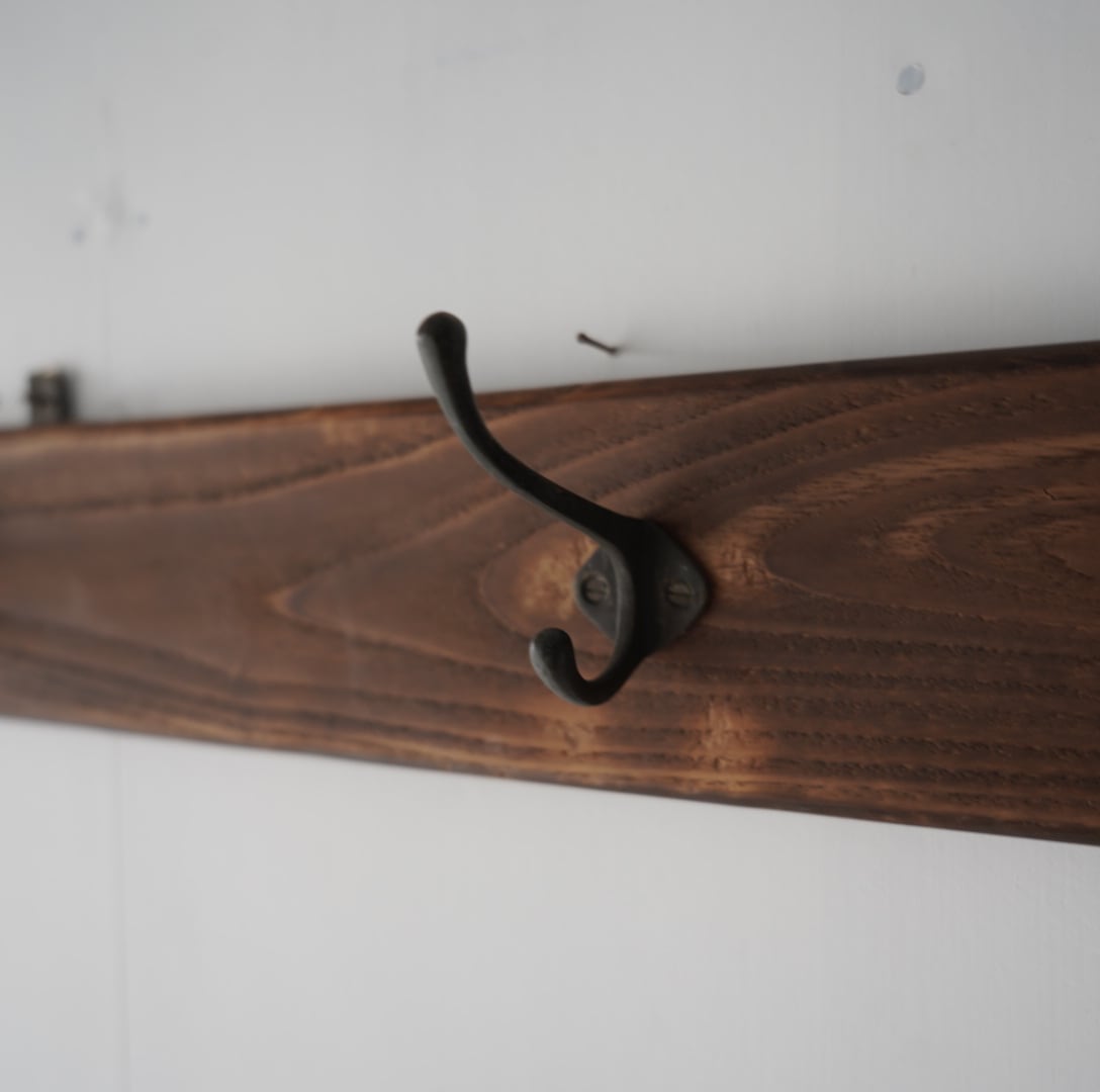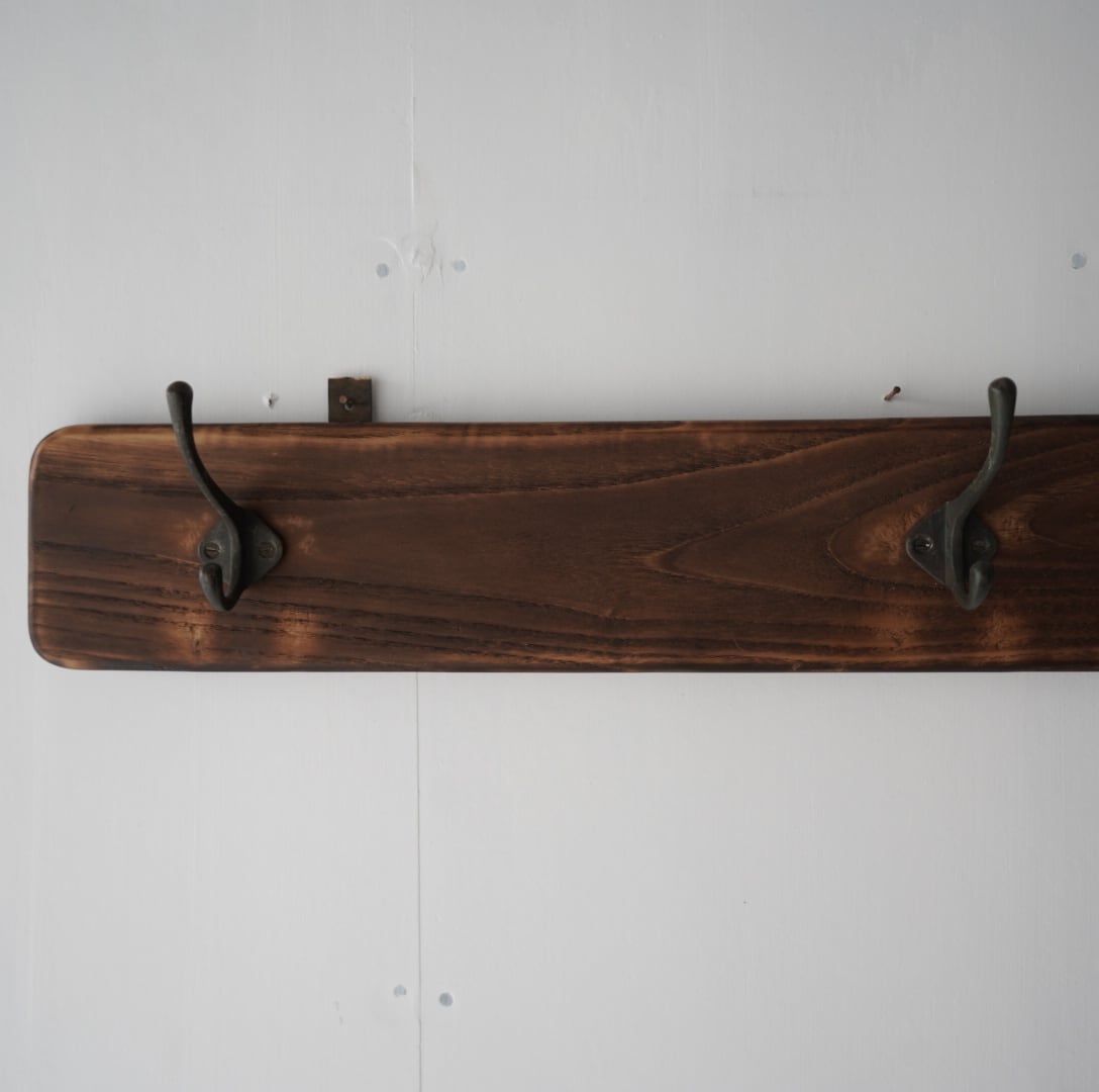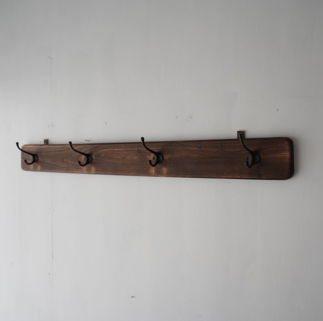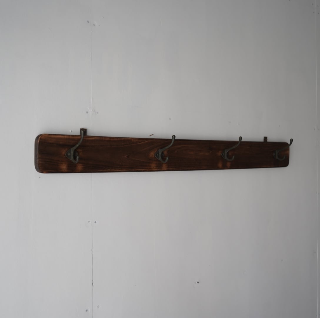 栗の木と真鍮の金具でつくられた古いウォールハンガー。