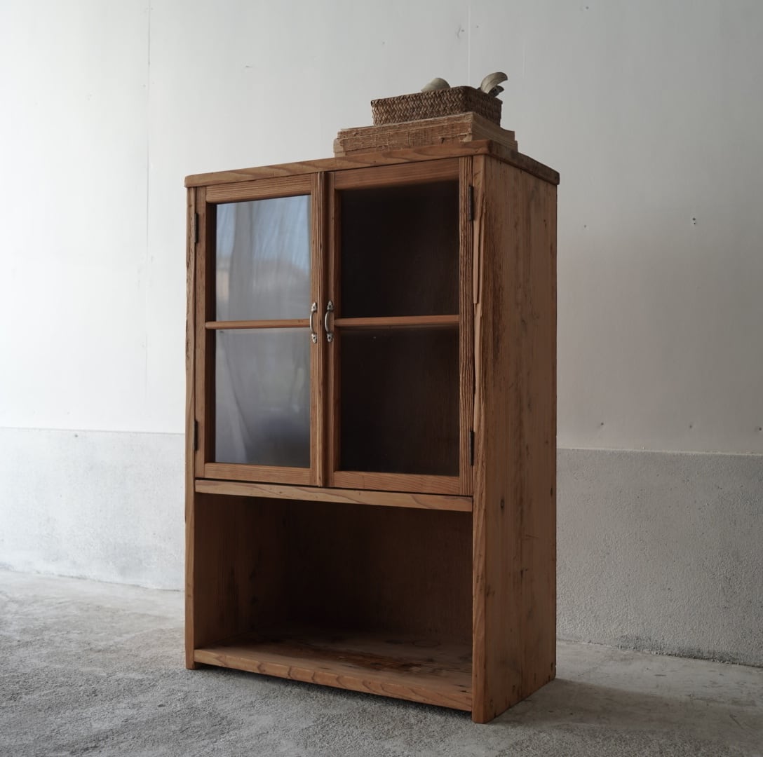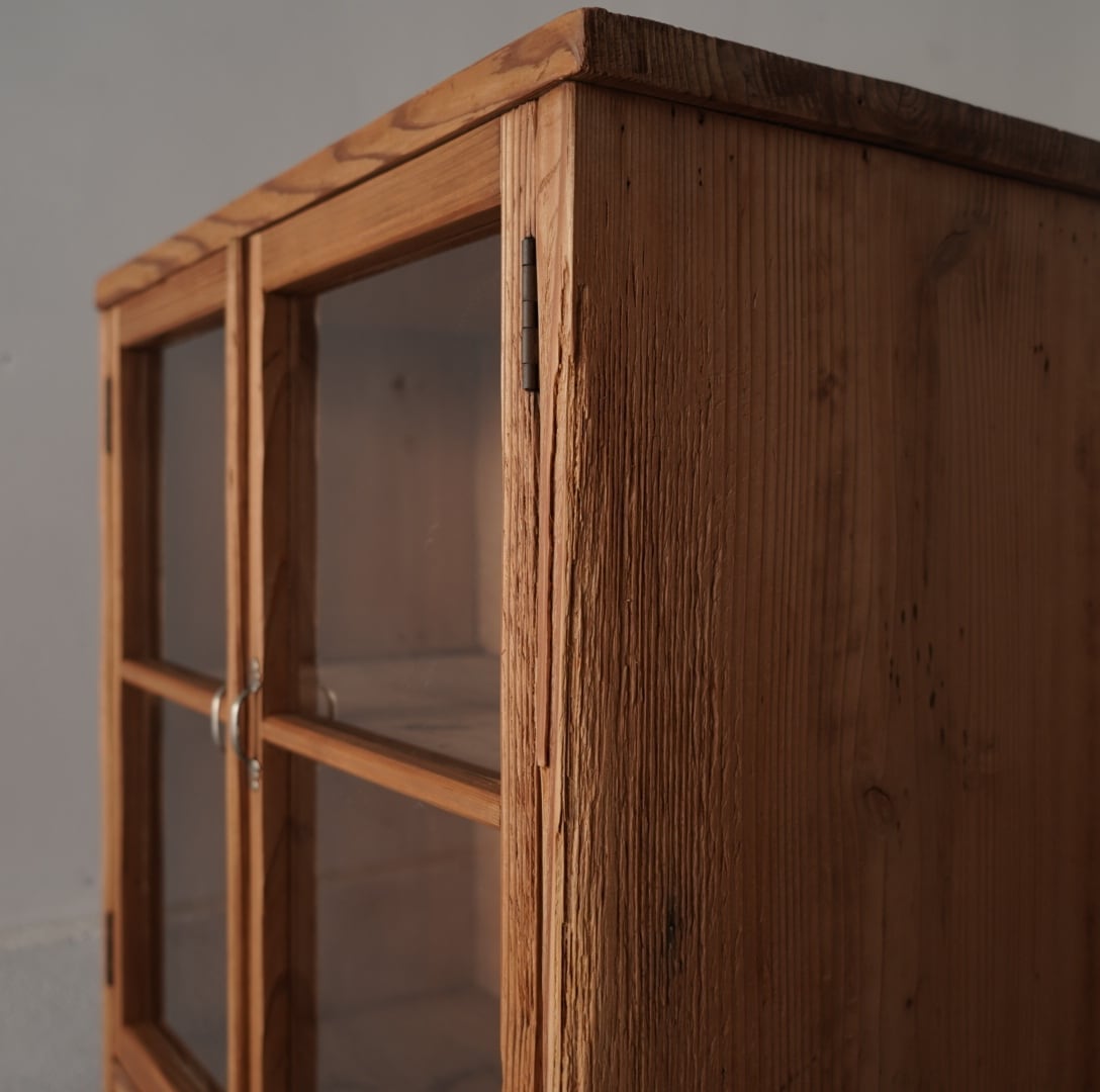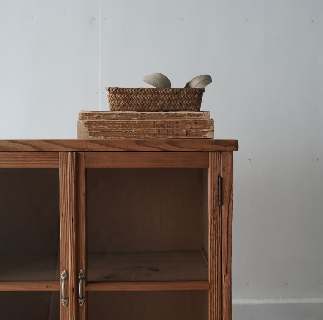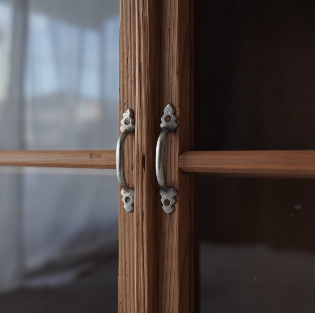 素朴な風合いが魅力的なガラス戸棚。