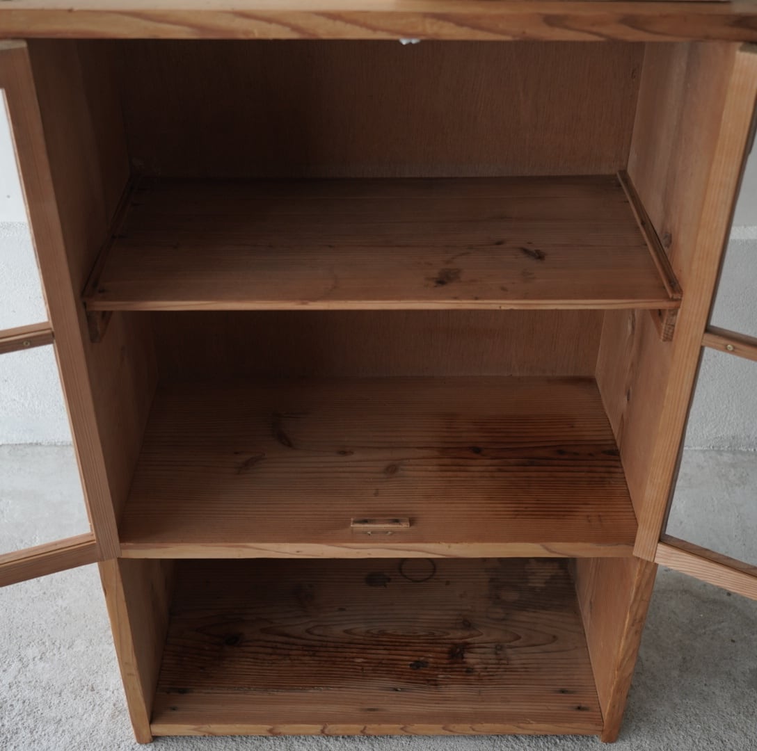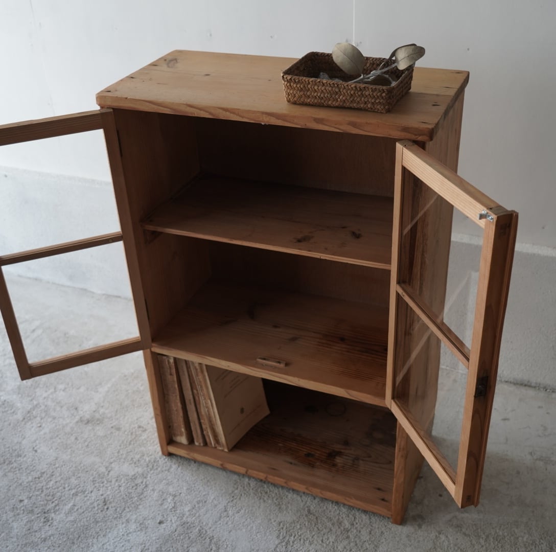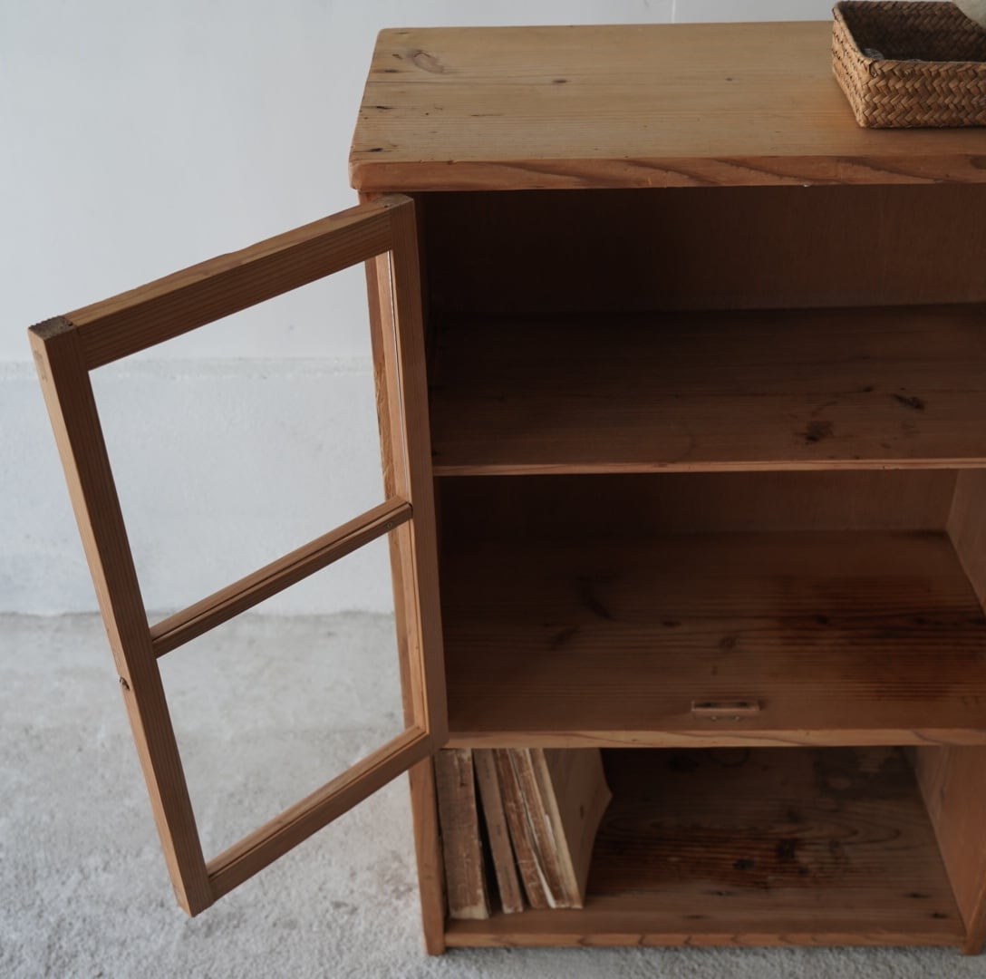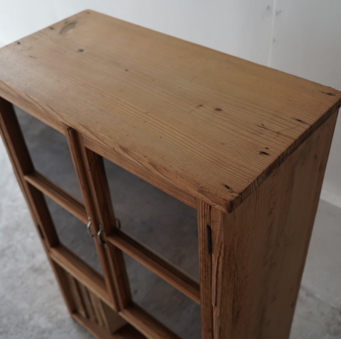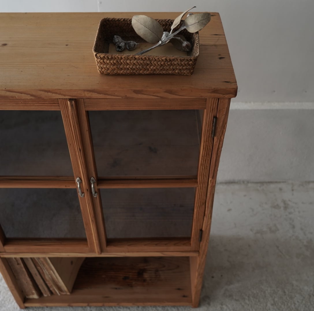 素朴な風合いが魅力的なガラス戸棚。