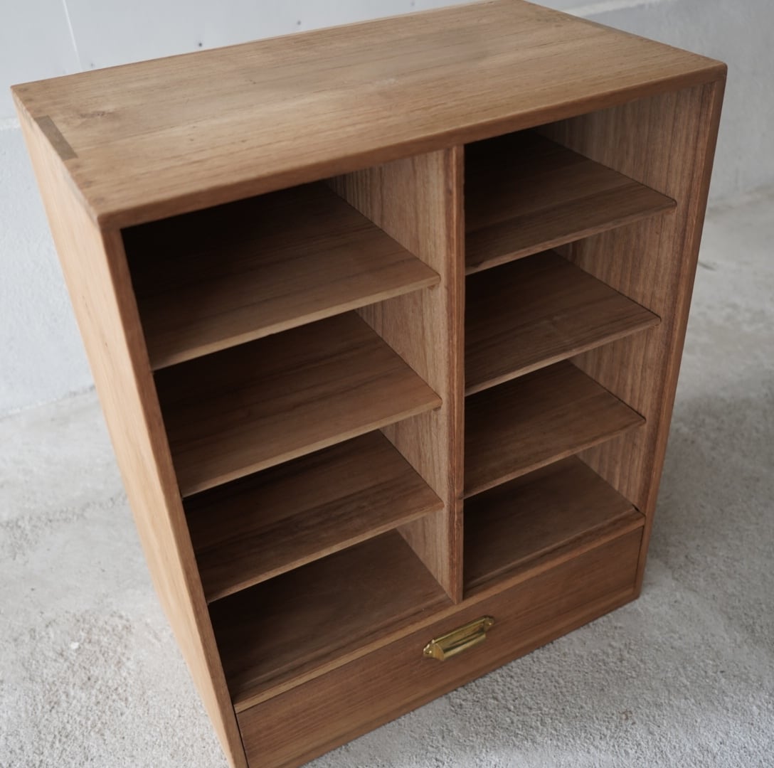 引き出しのついた木製棚