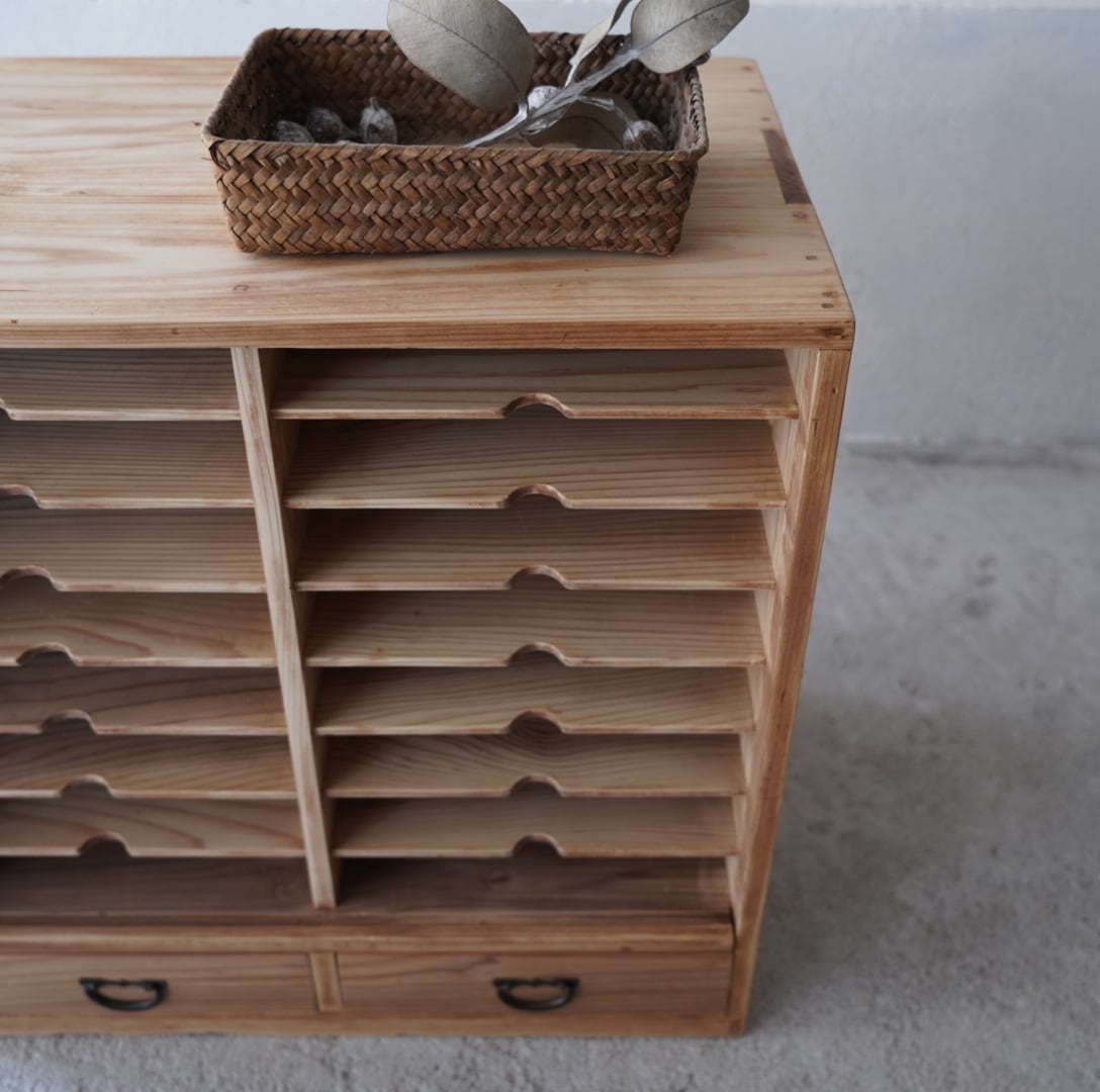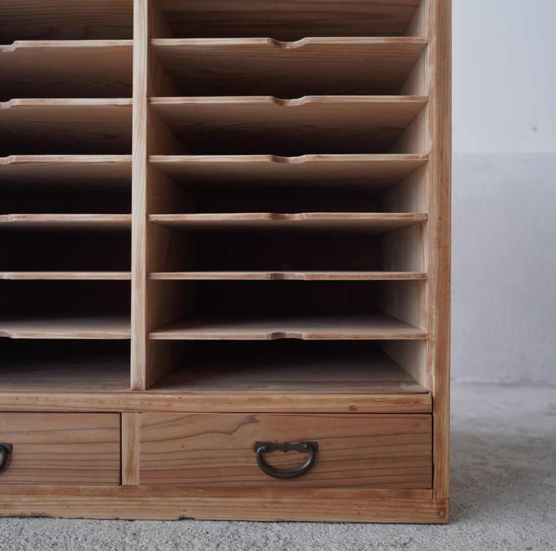 無垢材のナチュラルな木味が魅力的な古いレターケース。