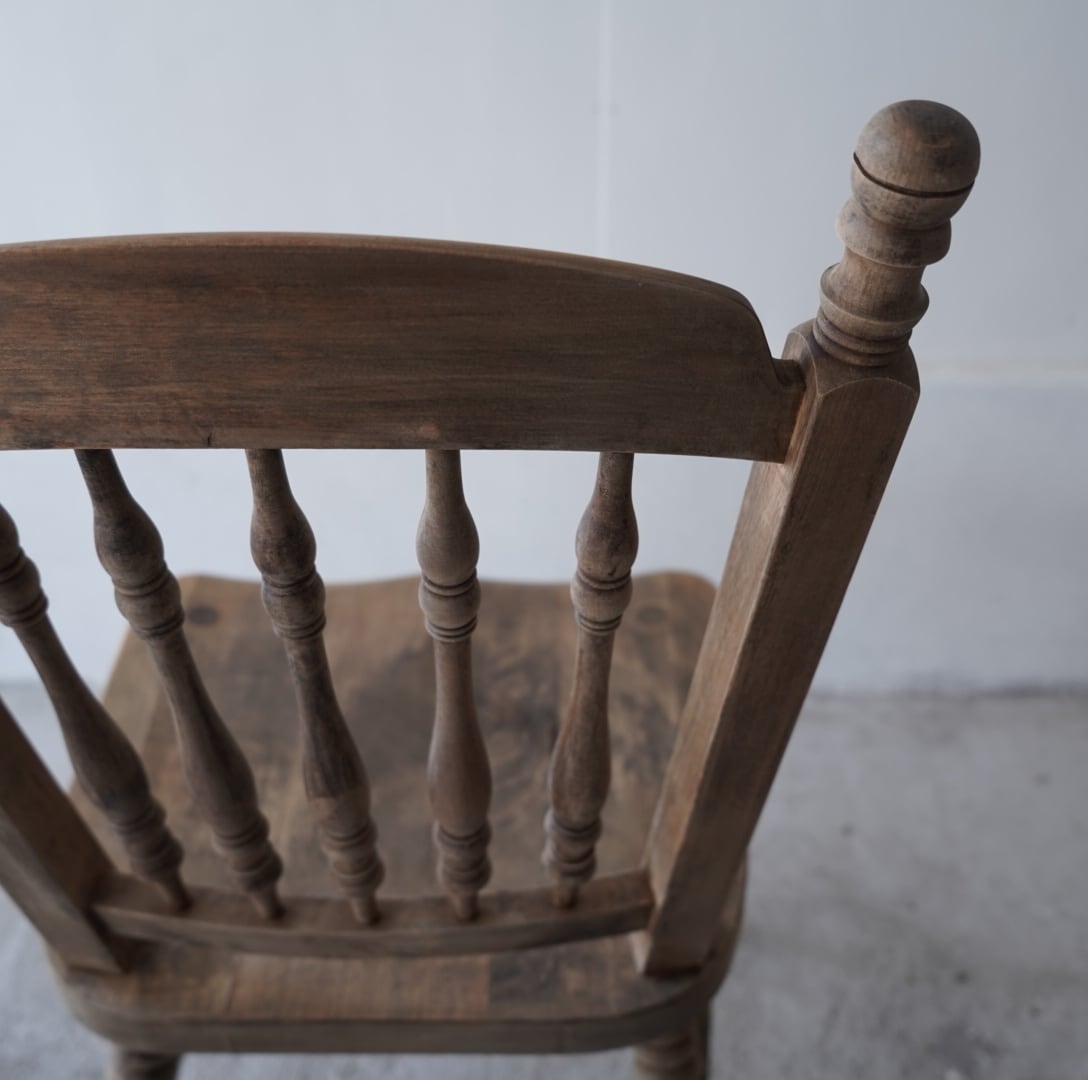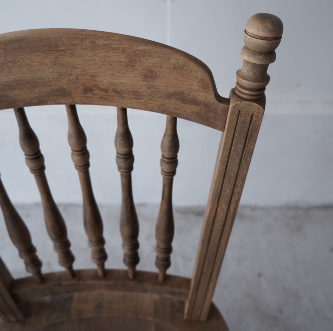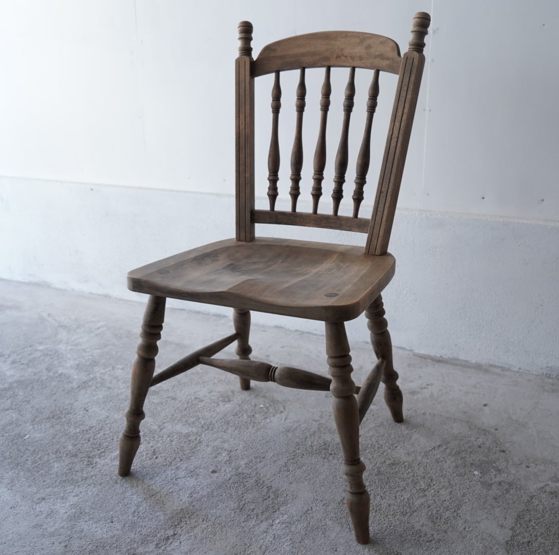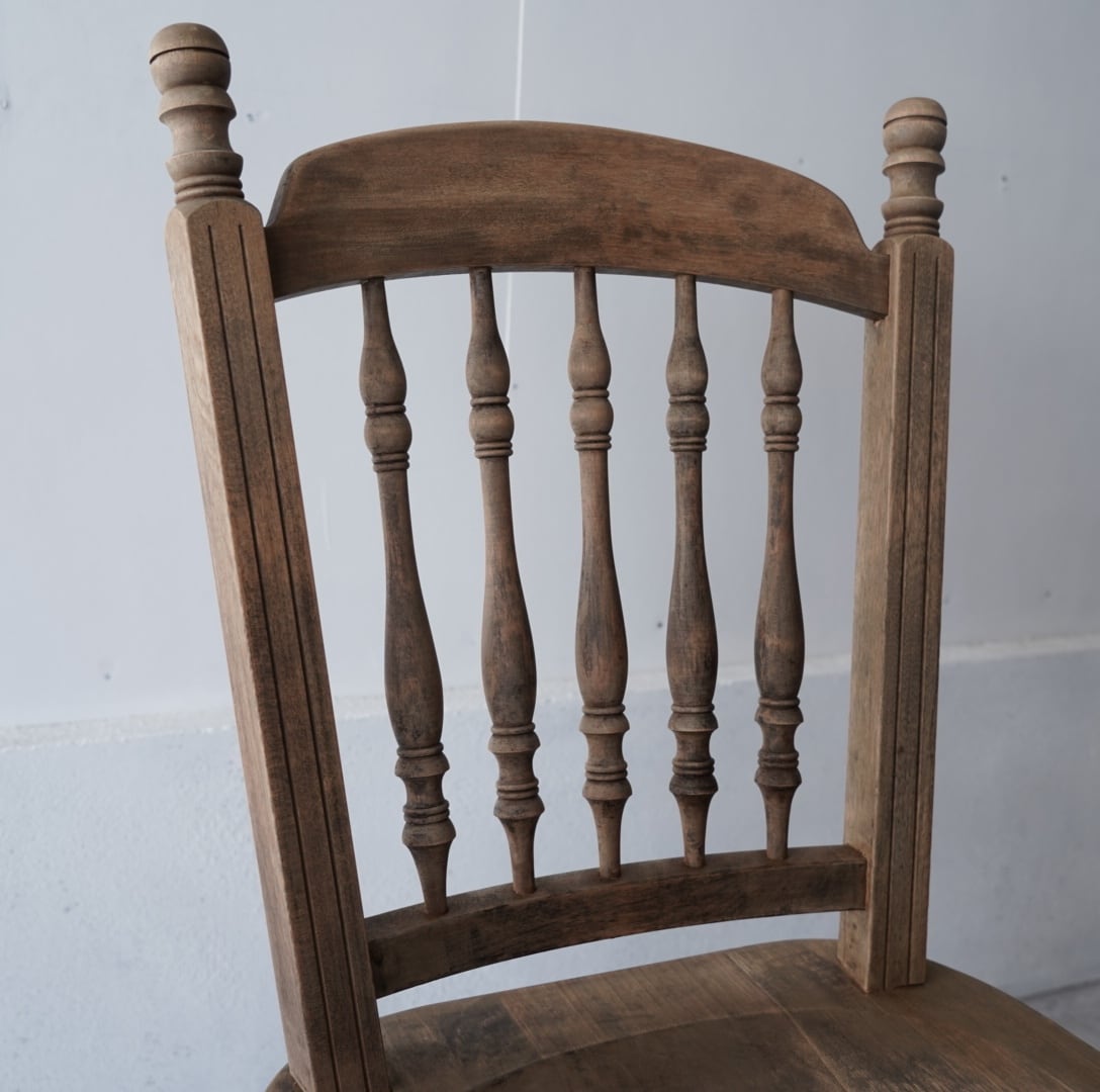 無垢材のナチュラルな木味と背もたれと脚部の美しいろくろ飾りが魅力的なスピンドルチェア。