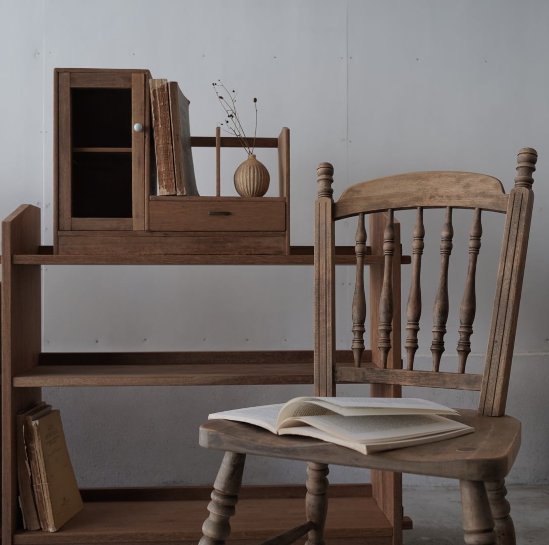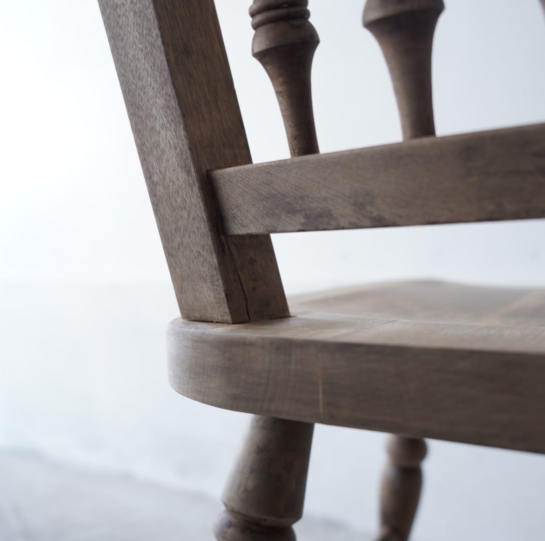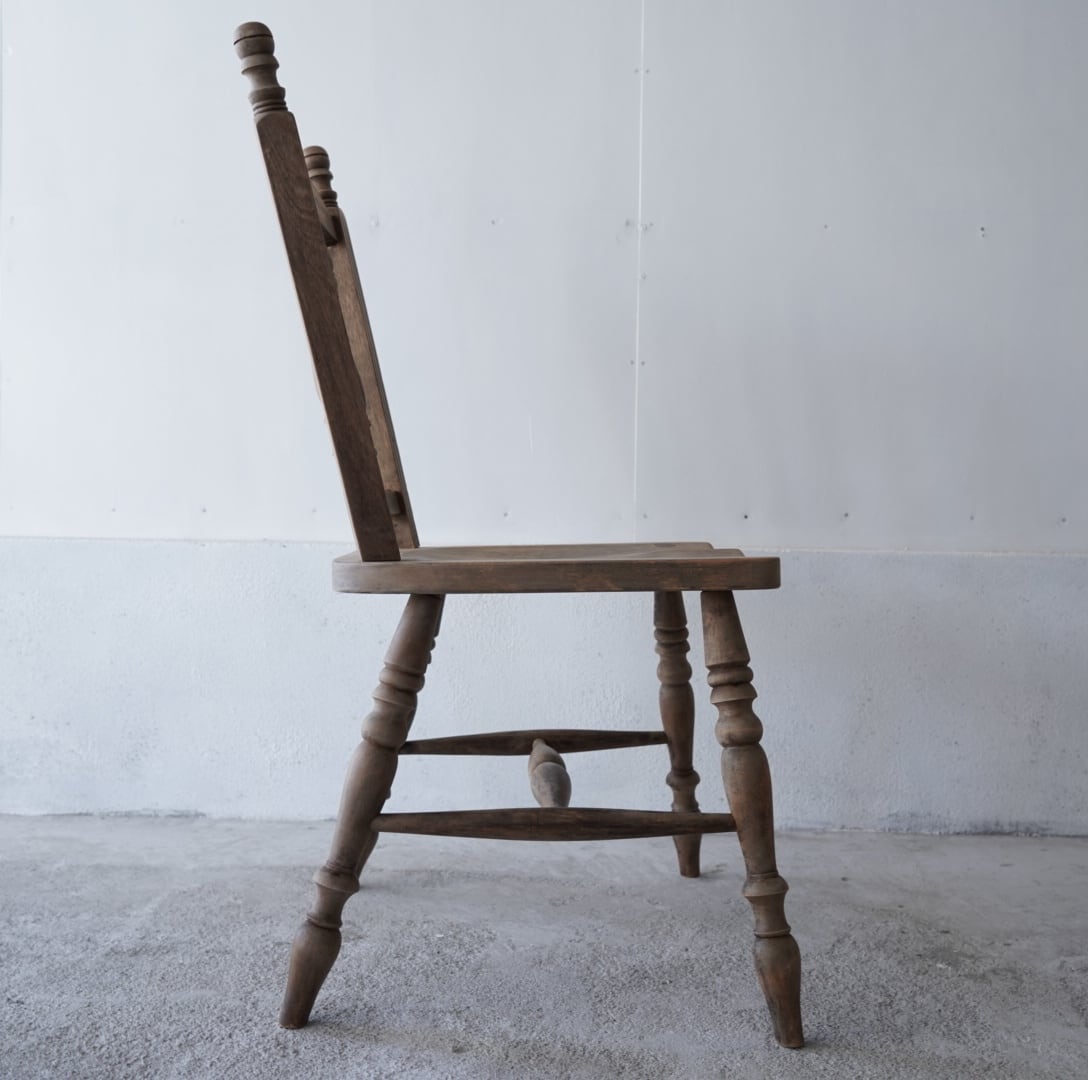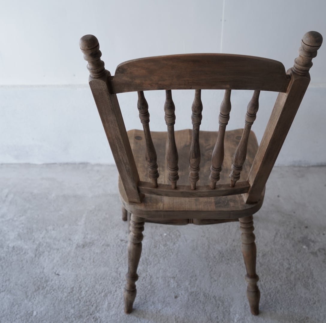 無垢材のナチュラルな木味と背もたれと脚部の美しいろくろ飾りが魅力的なスピンドルチェア。