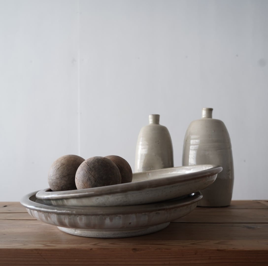 優しい肌の色とやわらかなフォルムが美しい古い石皿。