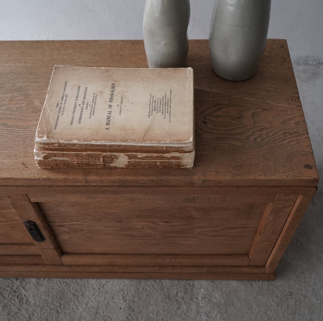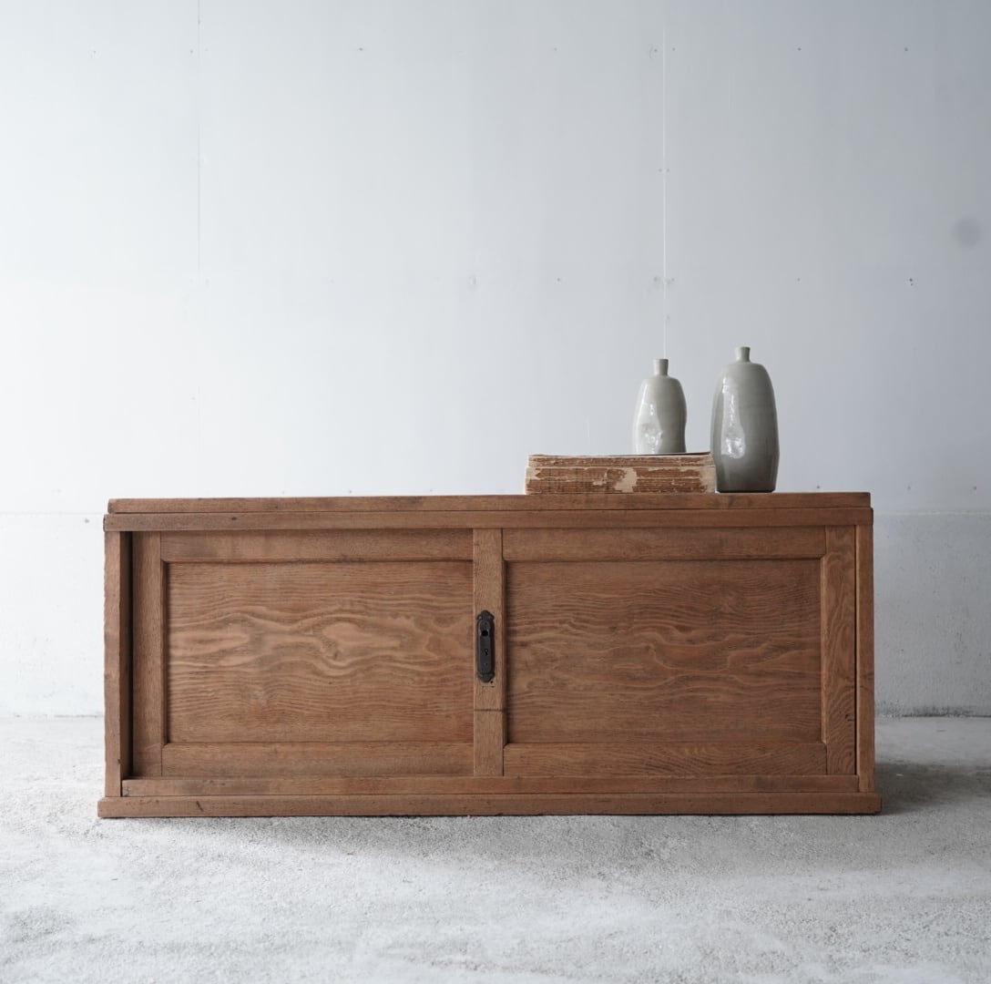 無垢材の素朴な風合いと木目の美しい板戸が魅力的なローボード。