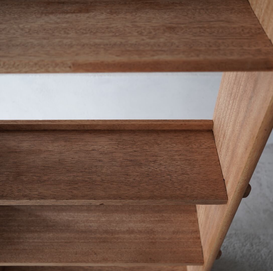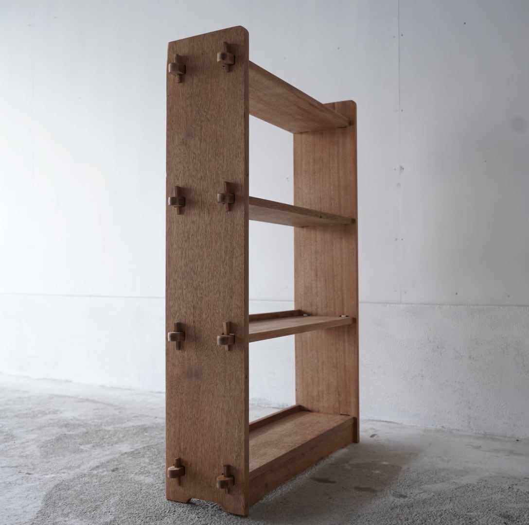 16本の楔が棚をしっかりと固定する造りになっており、機能性と美しさを兼ね備えております。