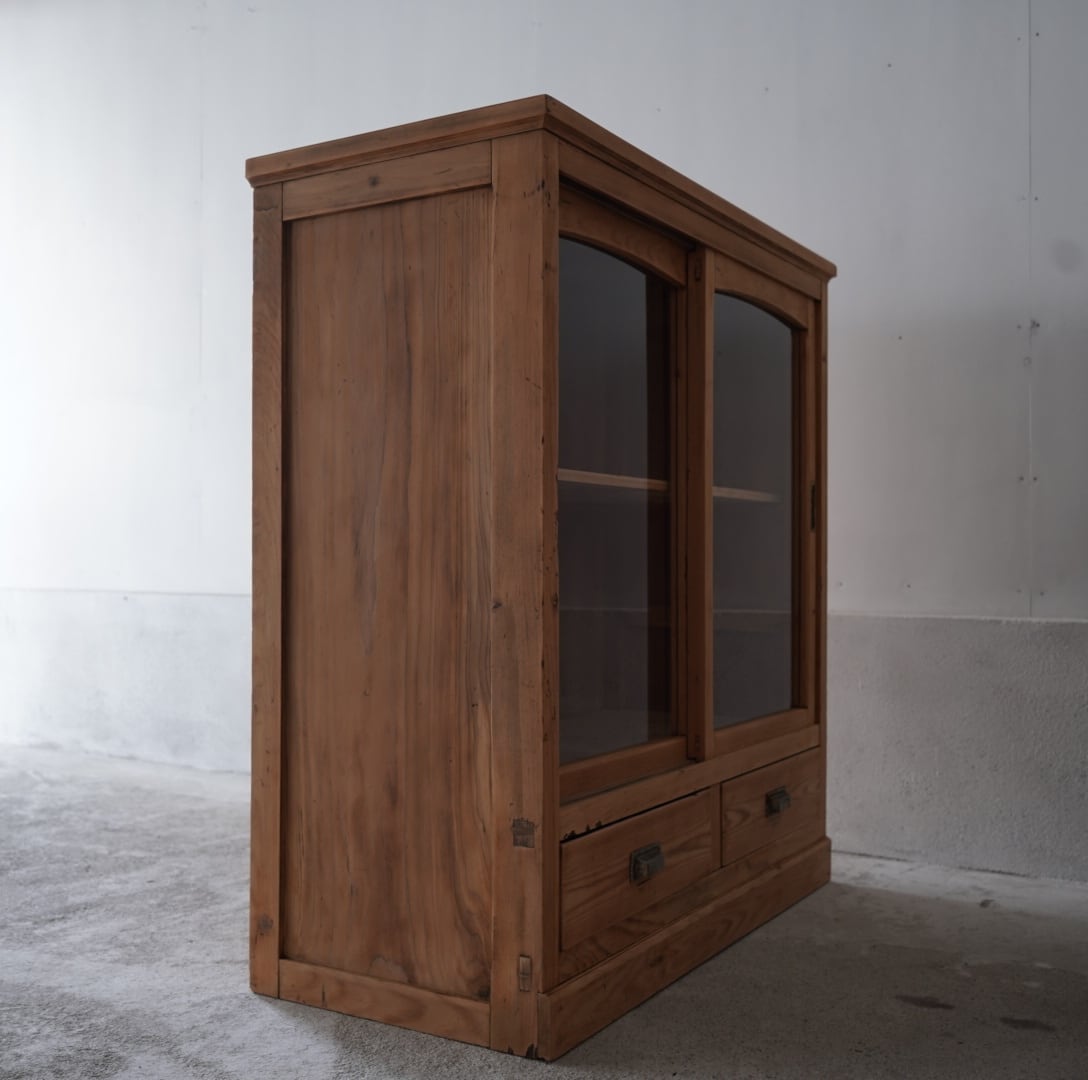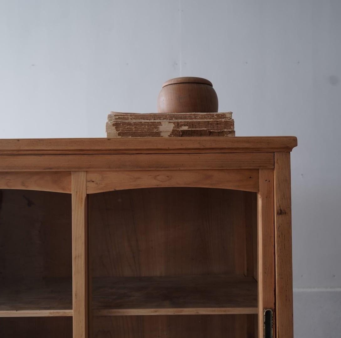 無垢材のナチュラルな木味とアーチ型のガラス引戸が美しいキャビネット。