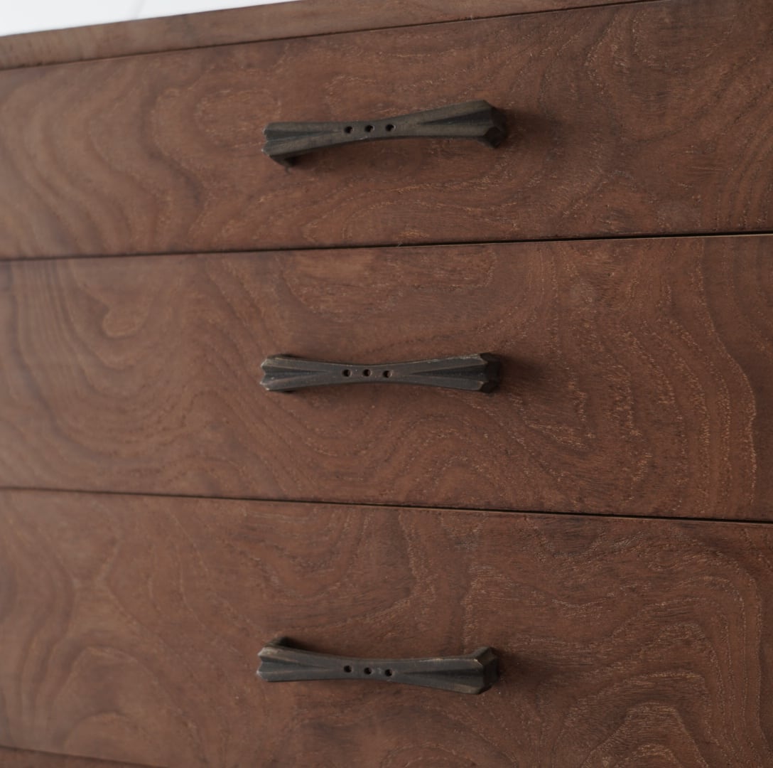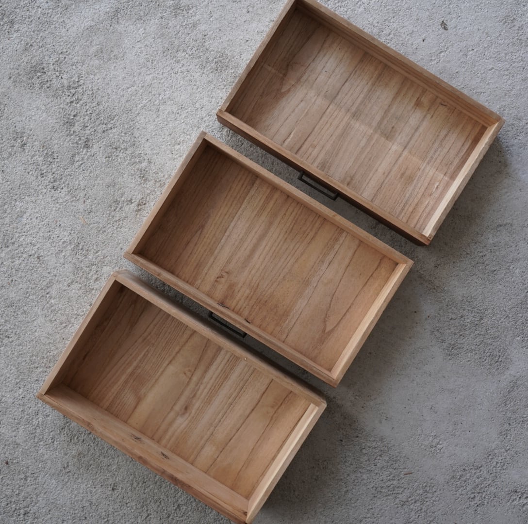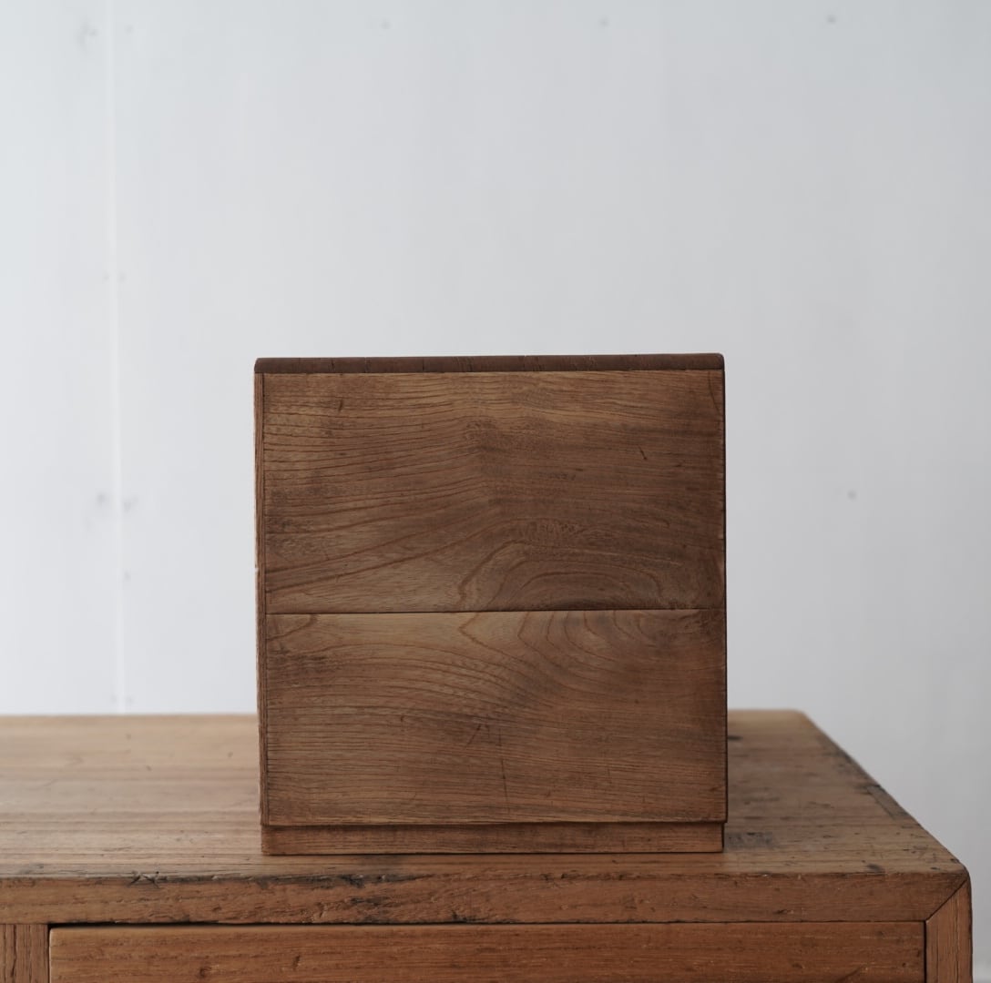 温かみのある木味と流れるような杢目が美しい3杯の引き出し。