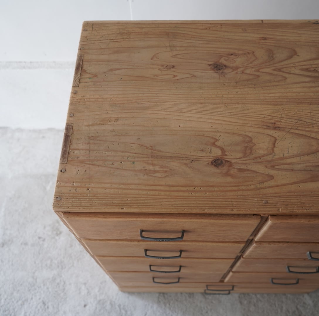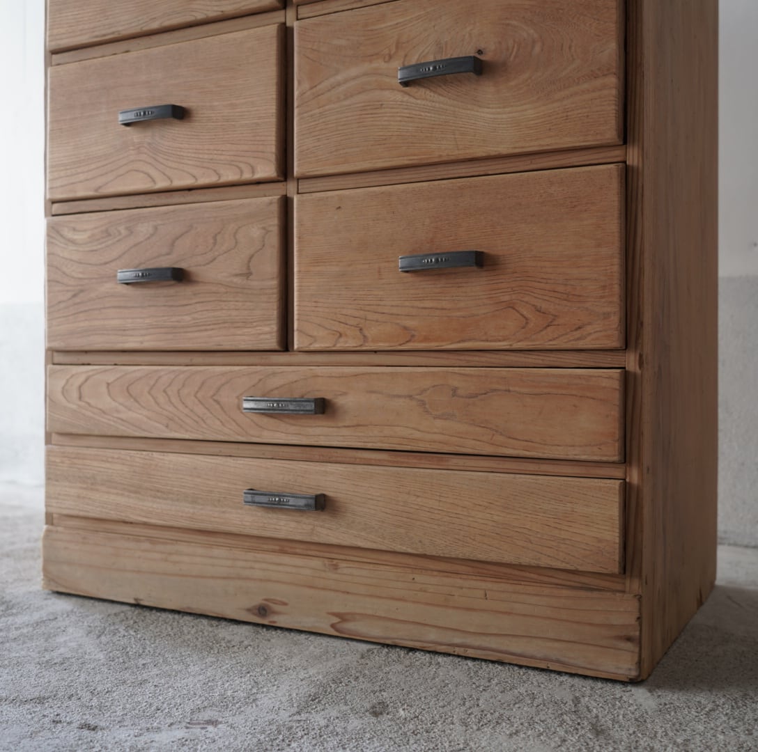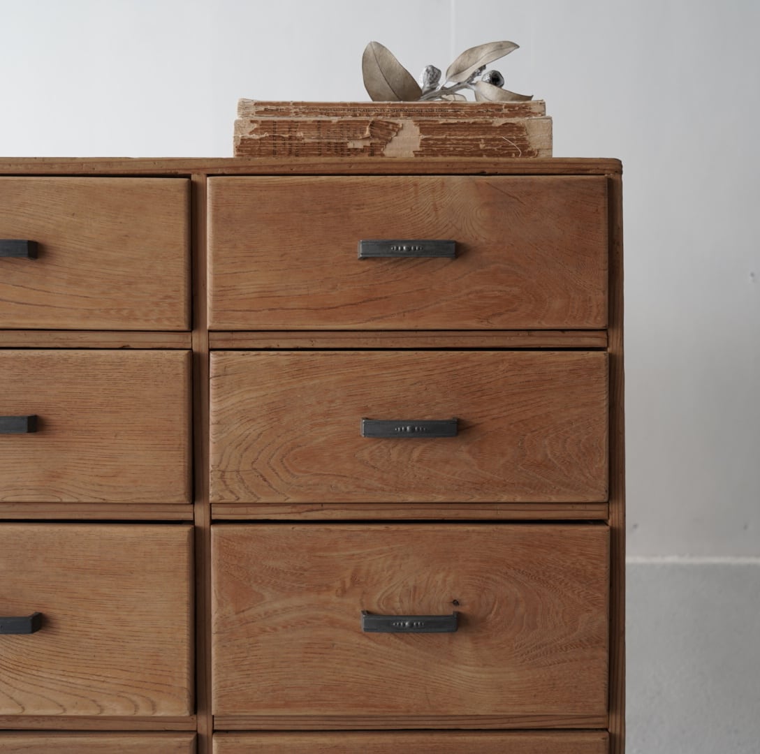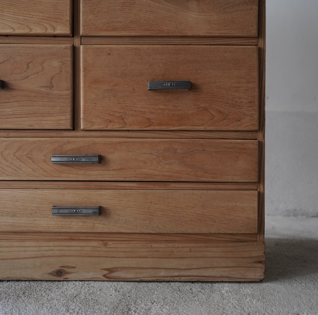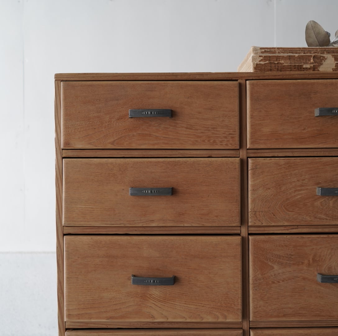 ナチュラルな木味と経年変化のあるアルミ取手が可愛らしい10杯の引き出しチェスト。