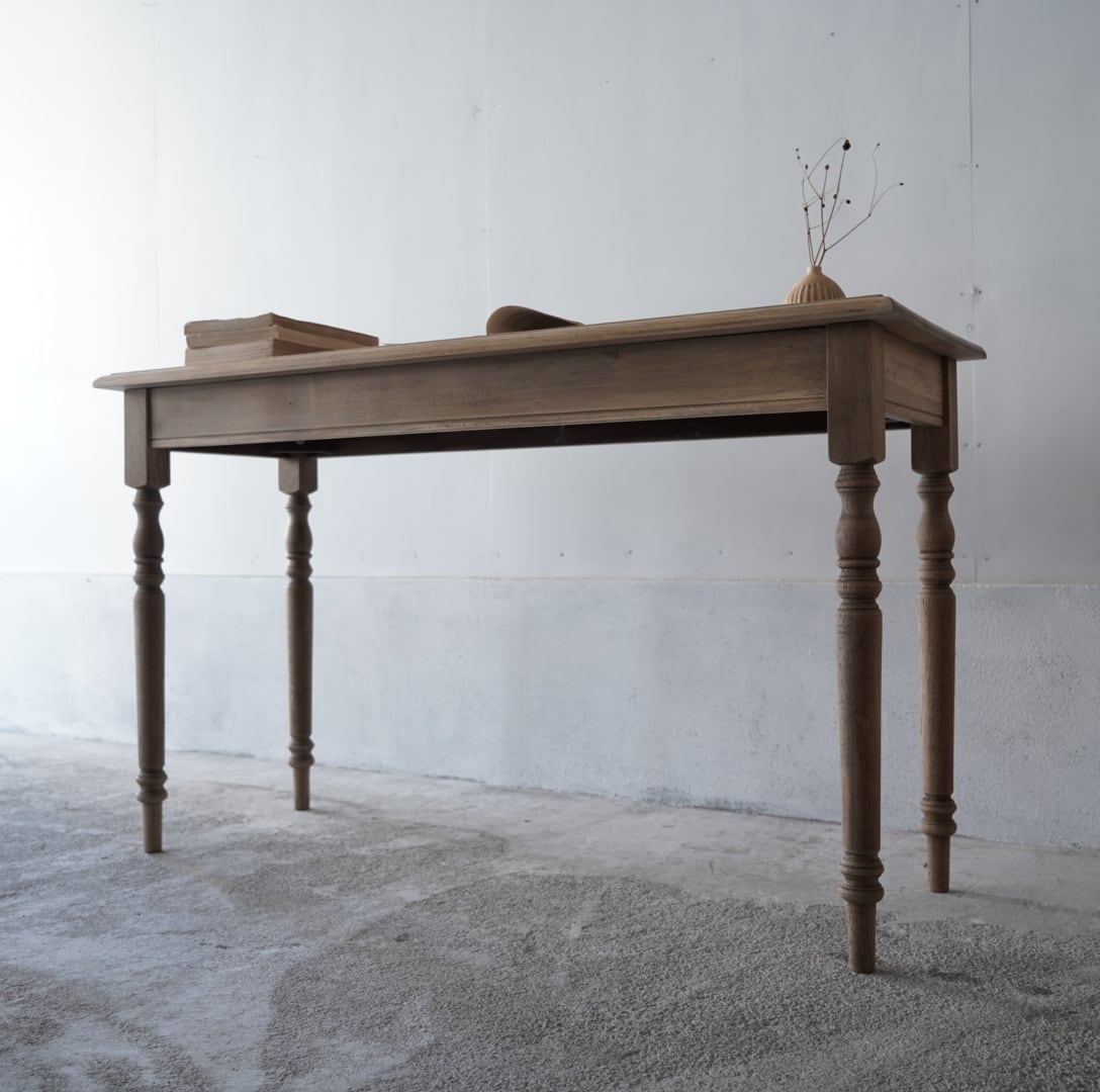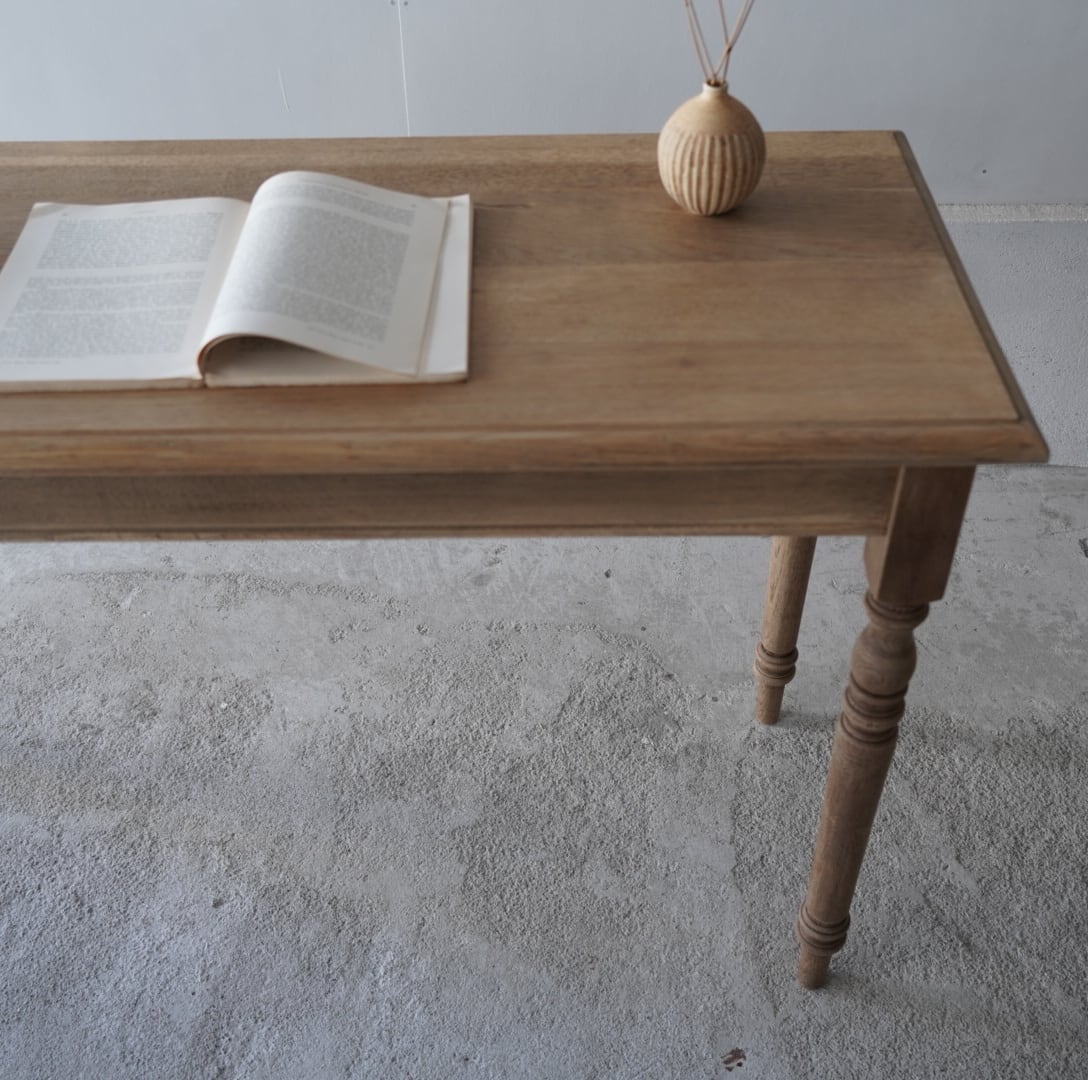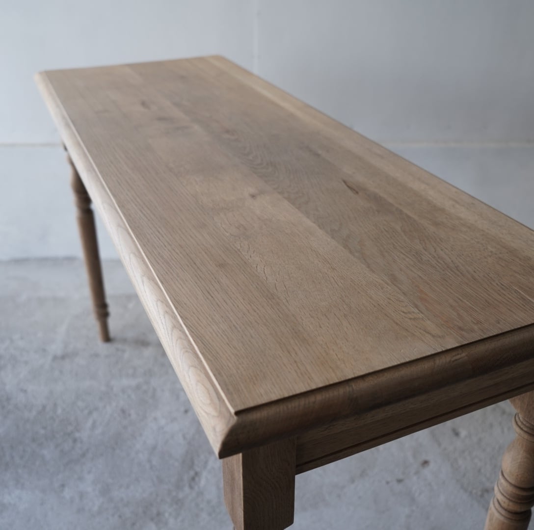 奥行きがすっきりとした珍しいサイズ感のデーブルで、カウンターやコンソールテーブルにぴったりです。