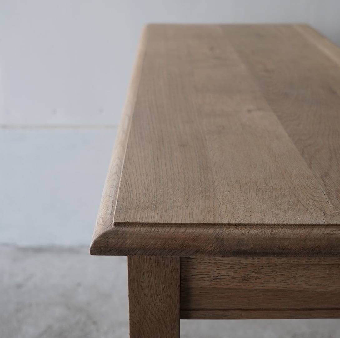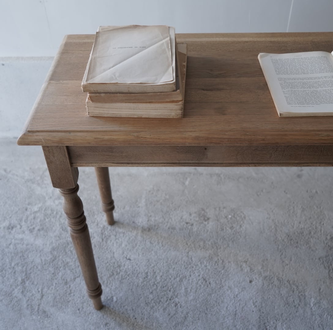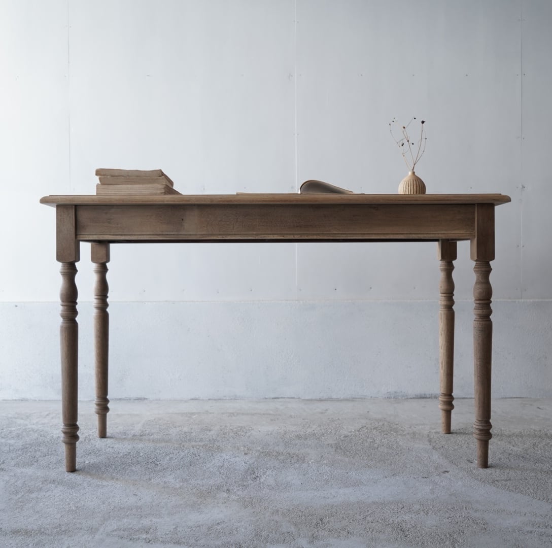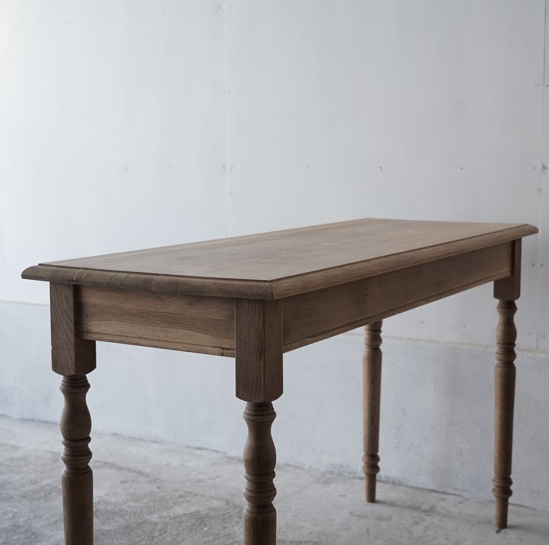 奥行きがすっきりとした珍しいサイズ感のデーブルで、カウンターやコンソールテーブルにぴったりです。
