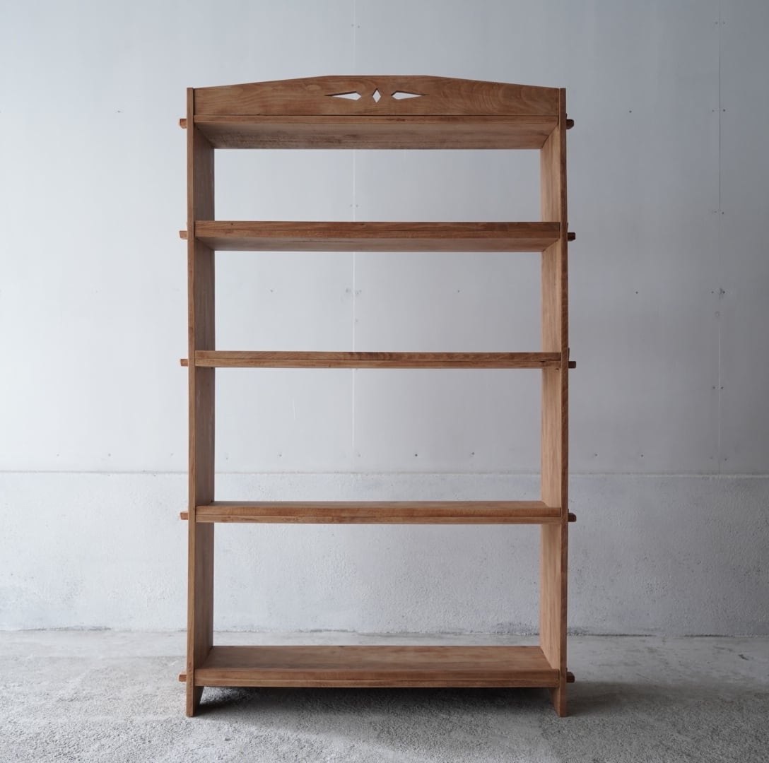 無垢材のナチュラルな木味とすっきりとした佇まいが美しい5段のオープンラック。