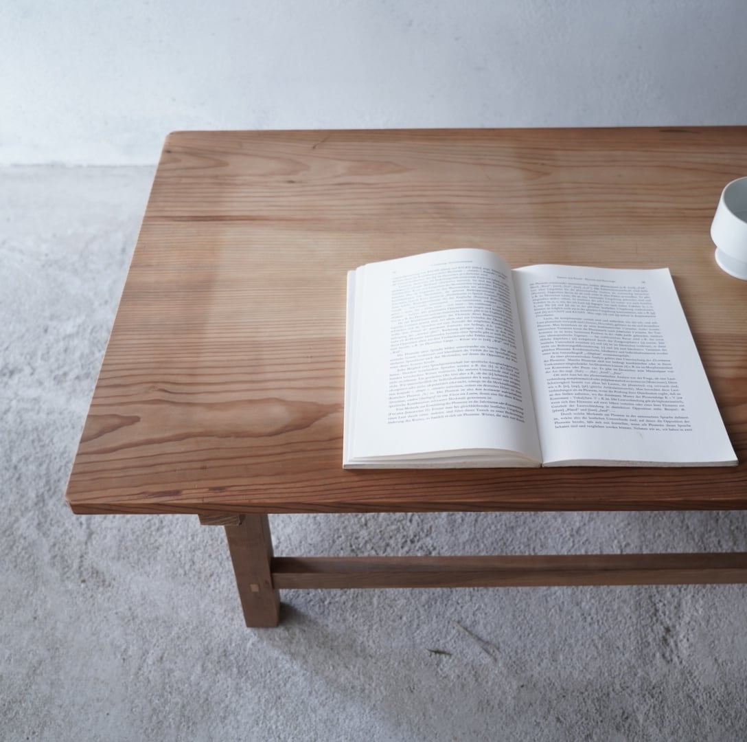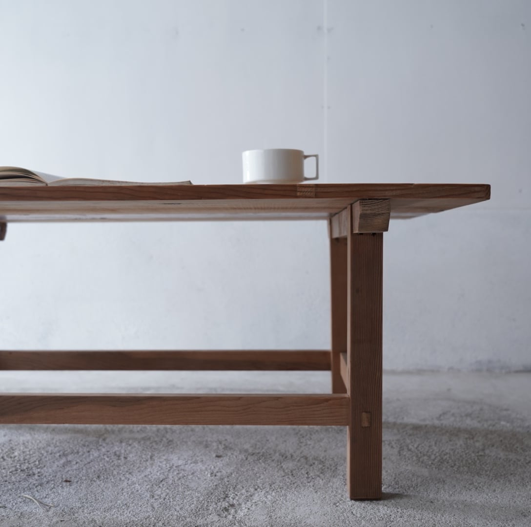 無垢材のナチュラルな木味と直線的でシンプルなデザインが美しいローテーブル。