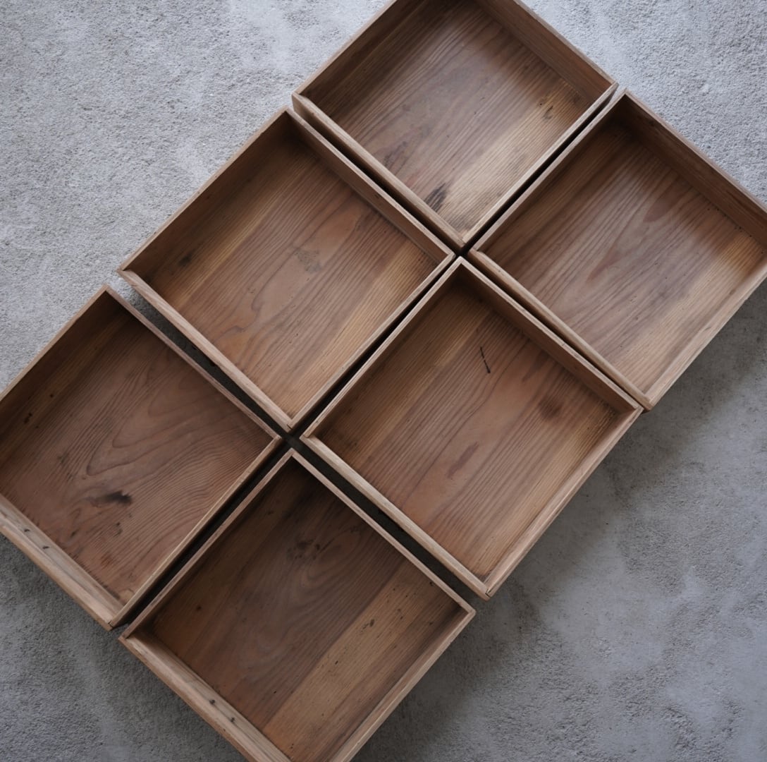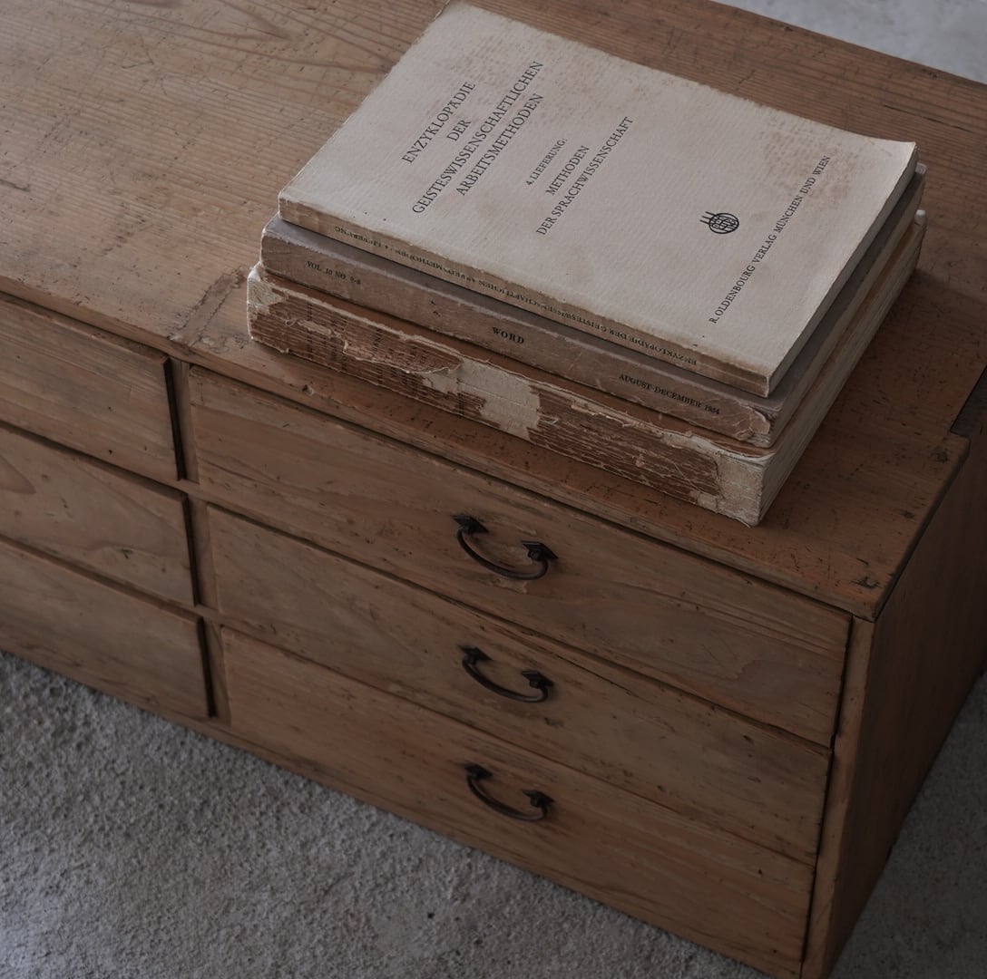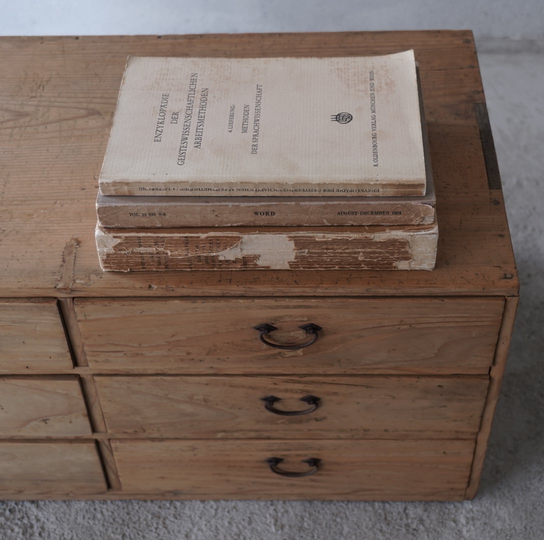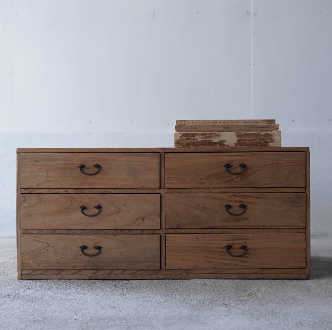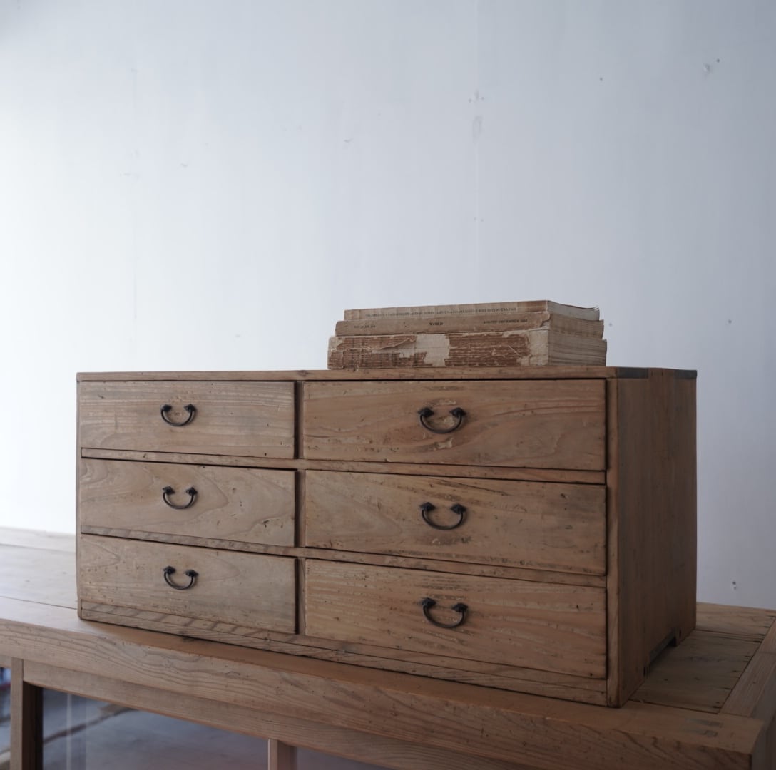 古い無垢材の素朴な風合いが魅力的な6杯の引き出し。