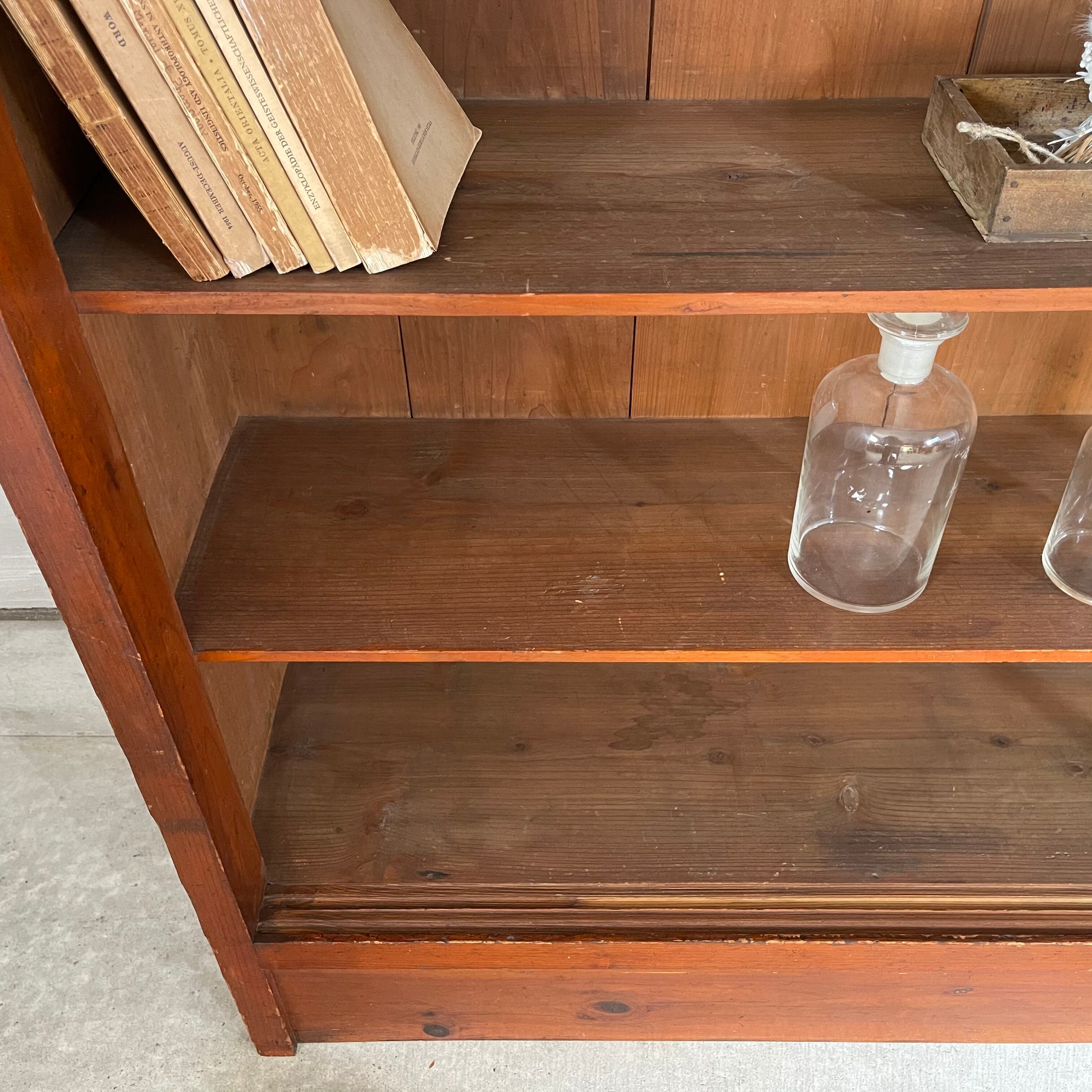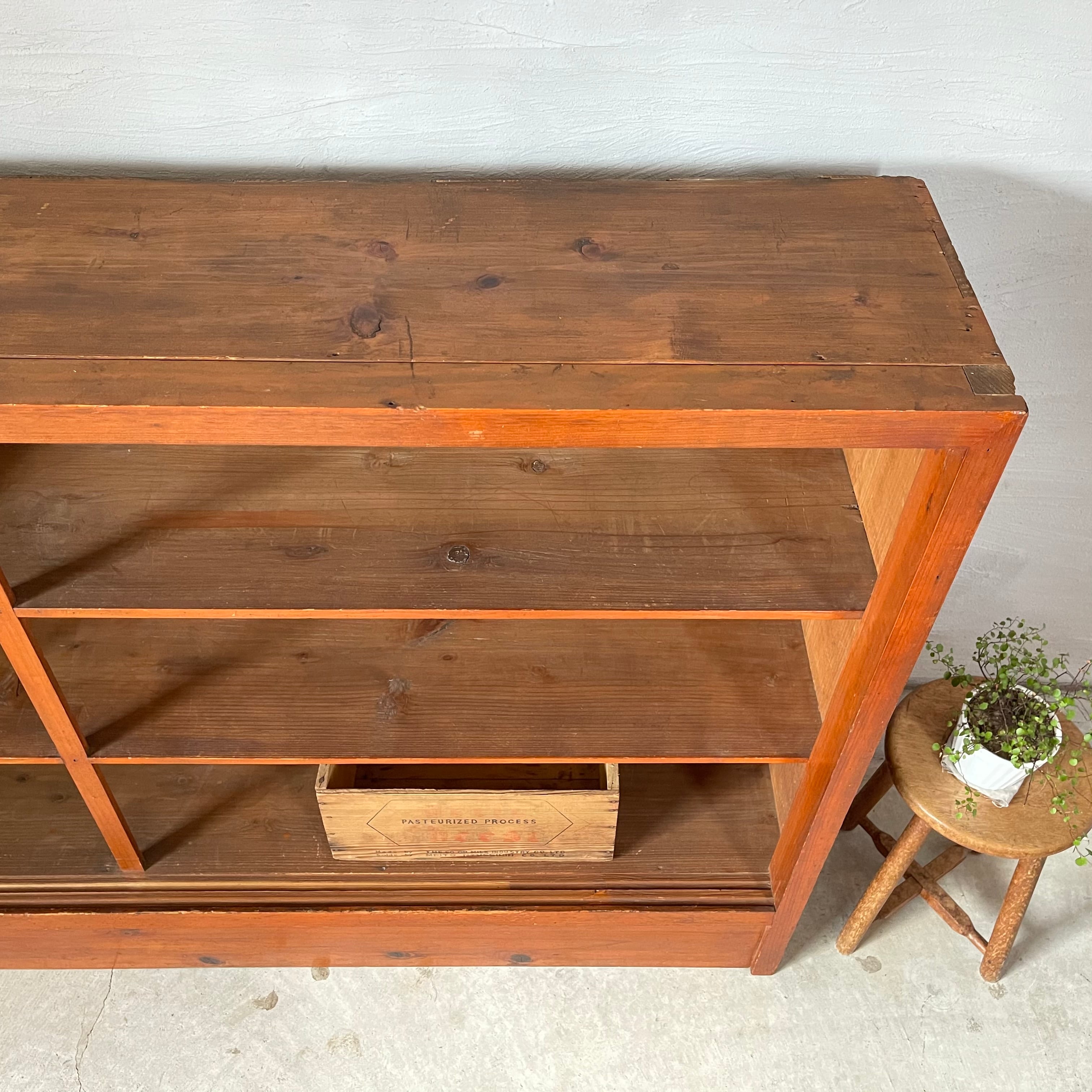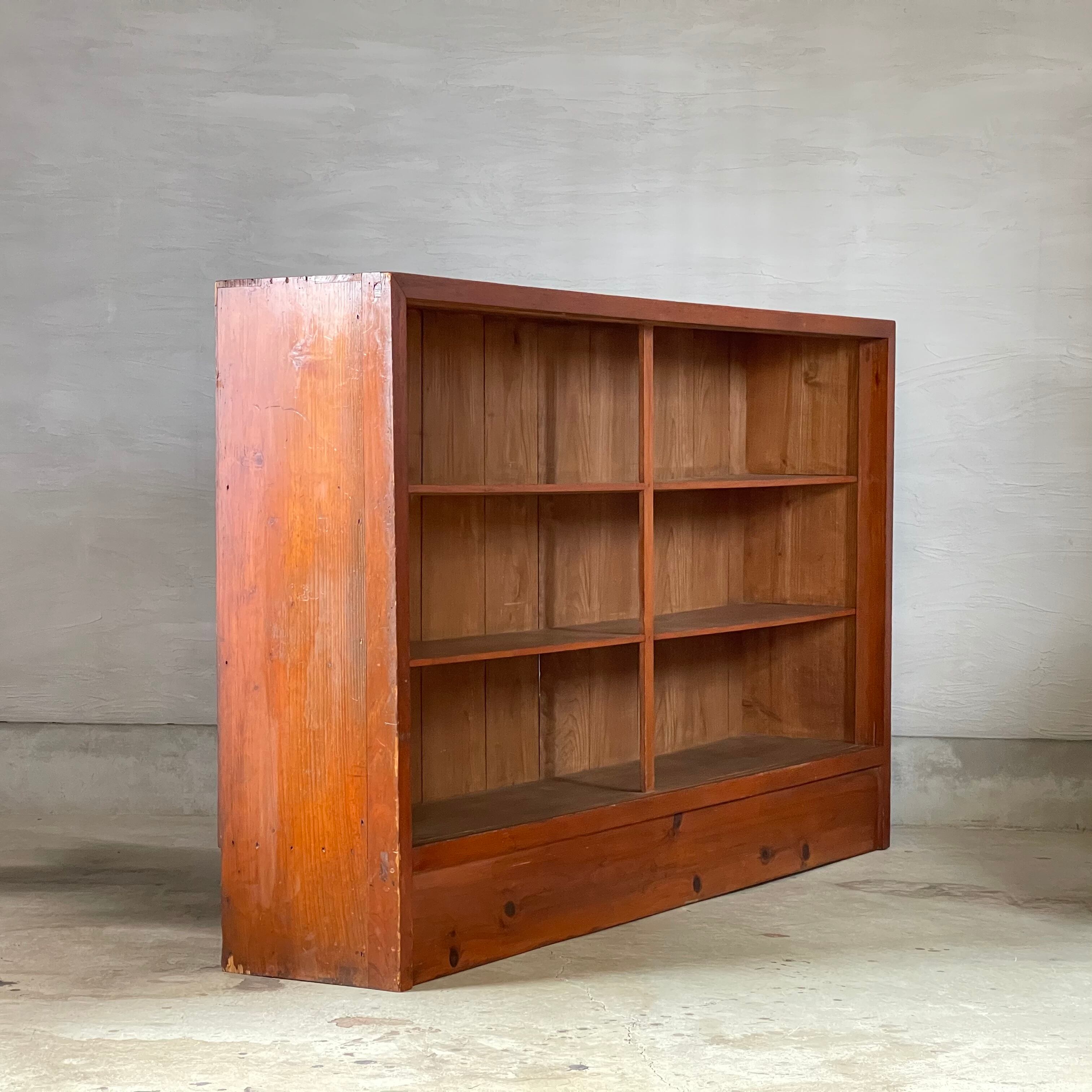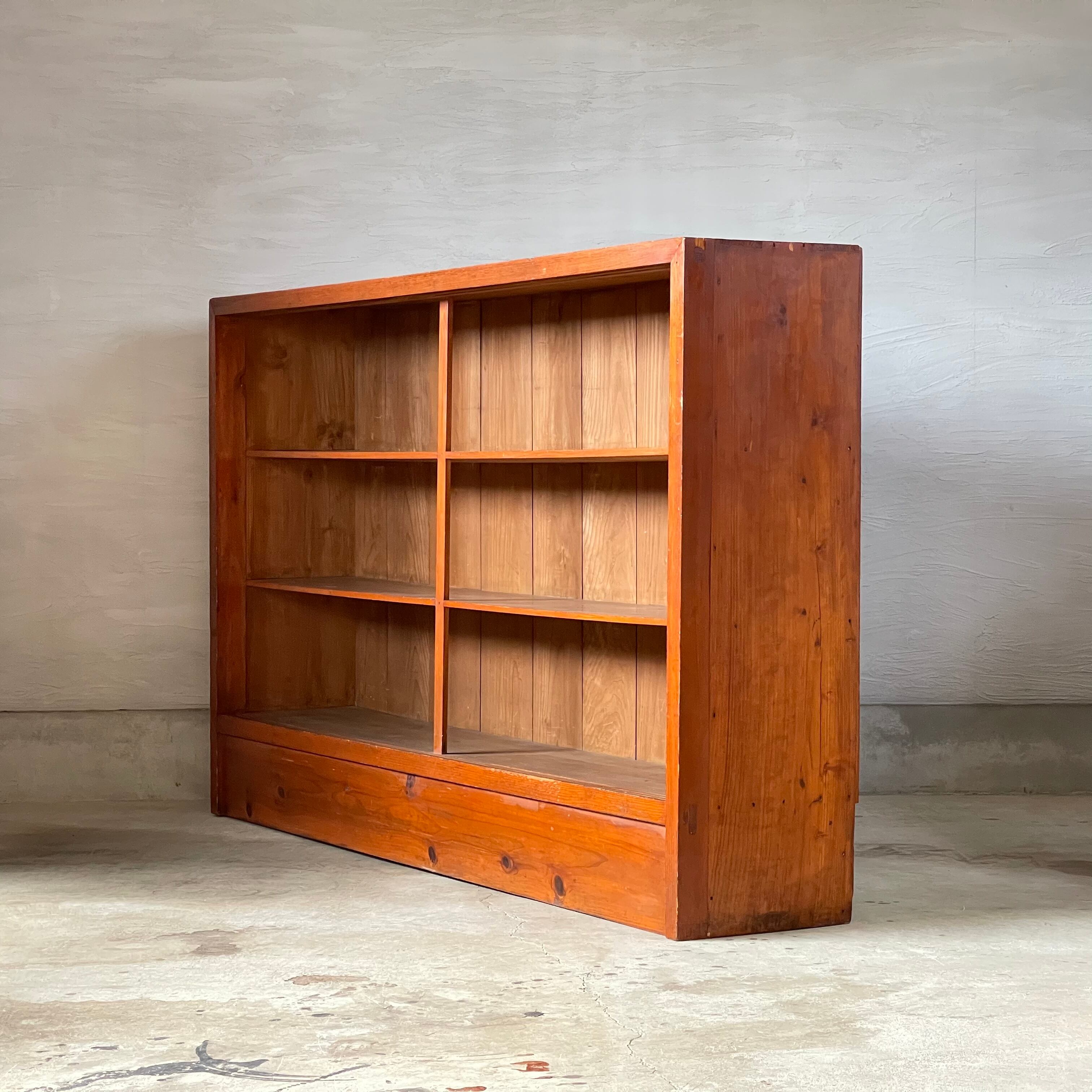 無垢材の温かみのある経年変化とすっきりとした棚板が魅力的な古いカウンターシェルフです。