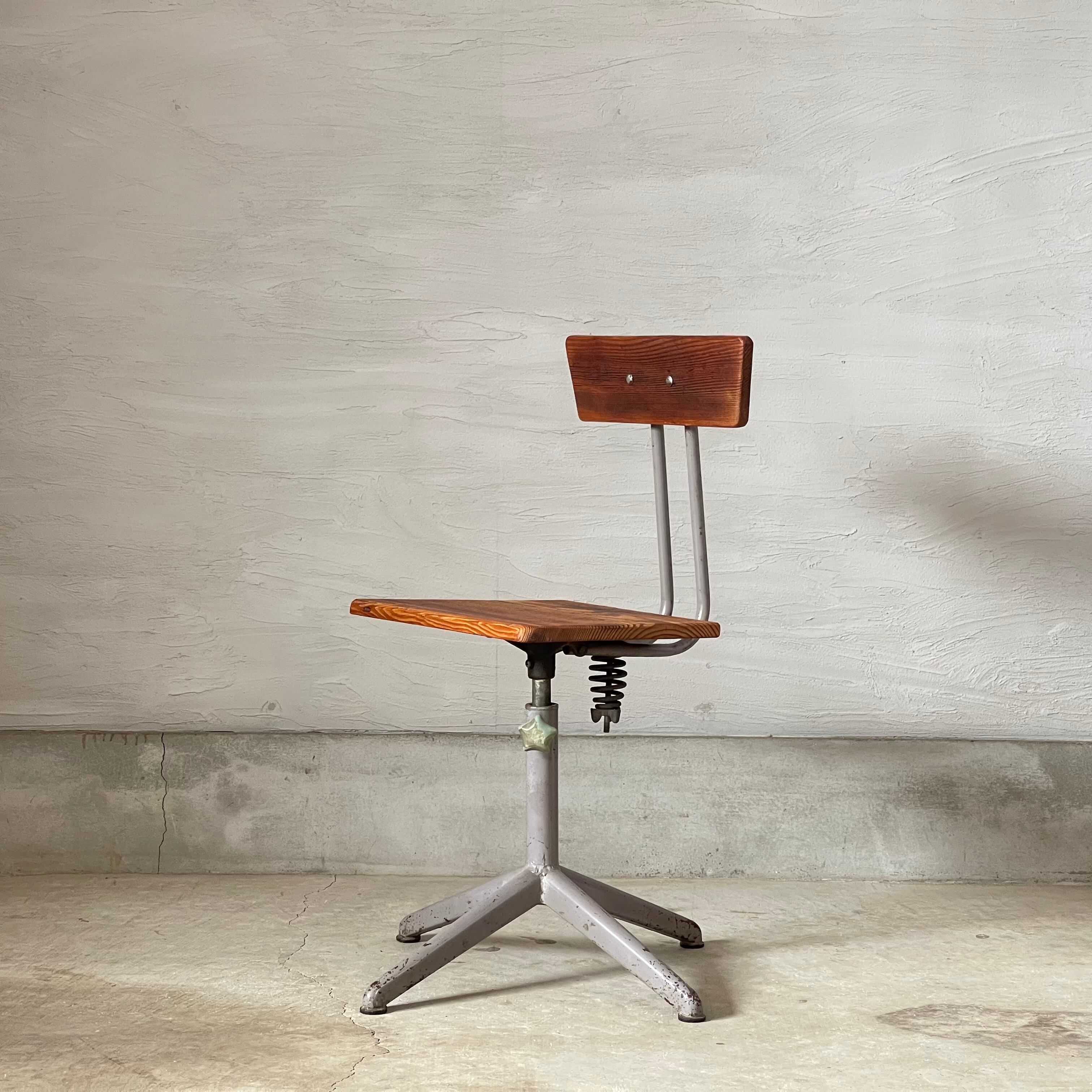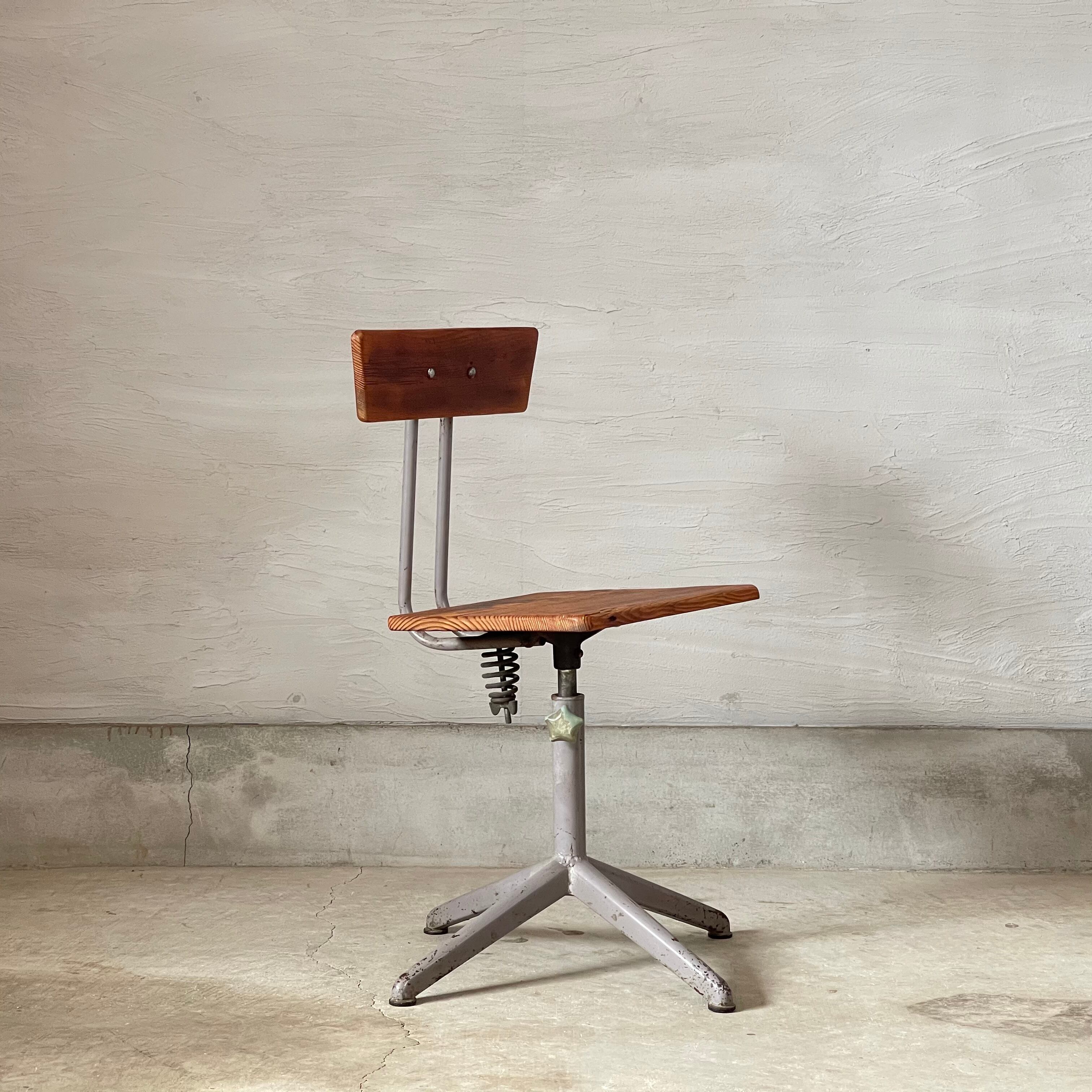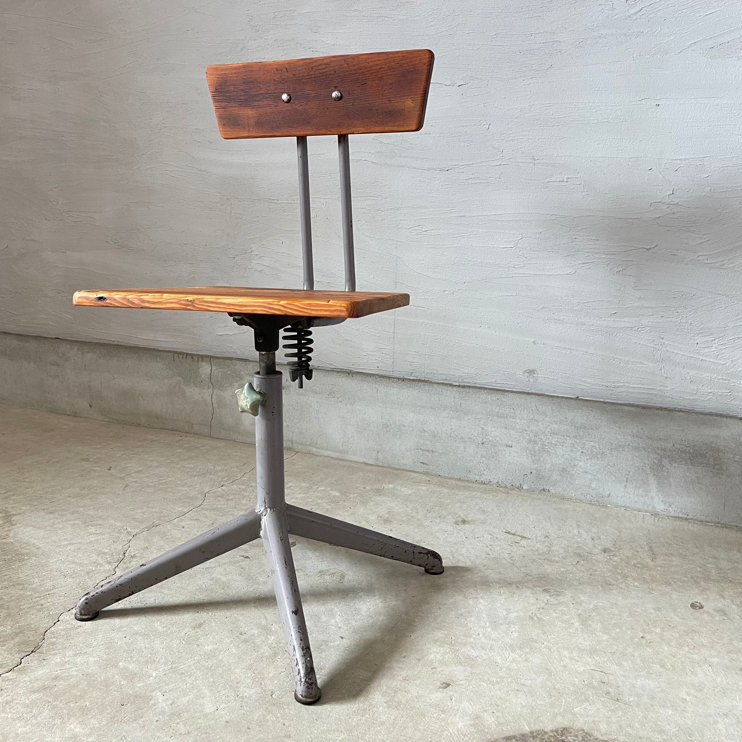 インダストリアルなデザインがとても魅力的な古い回転椅子です。