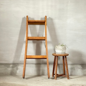 無垢材の飴色の経年変化とインダストリアルなデザインが魅力的な木製脚立です。