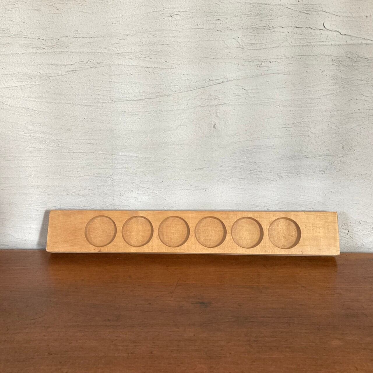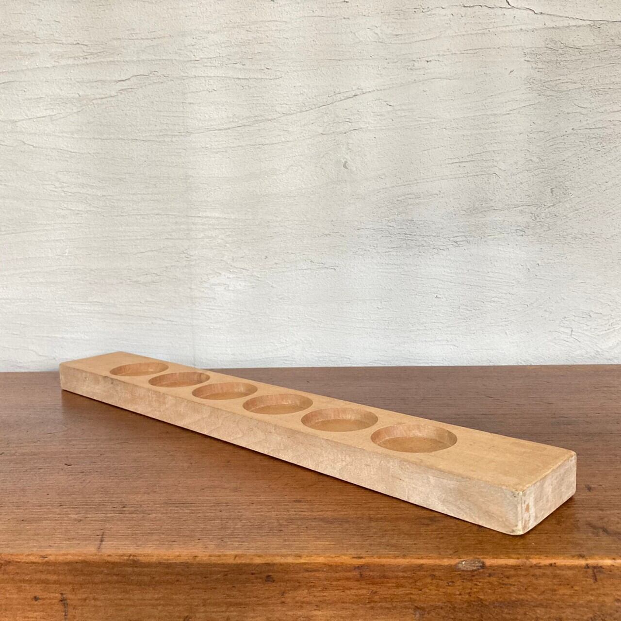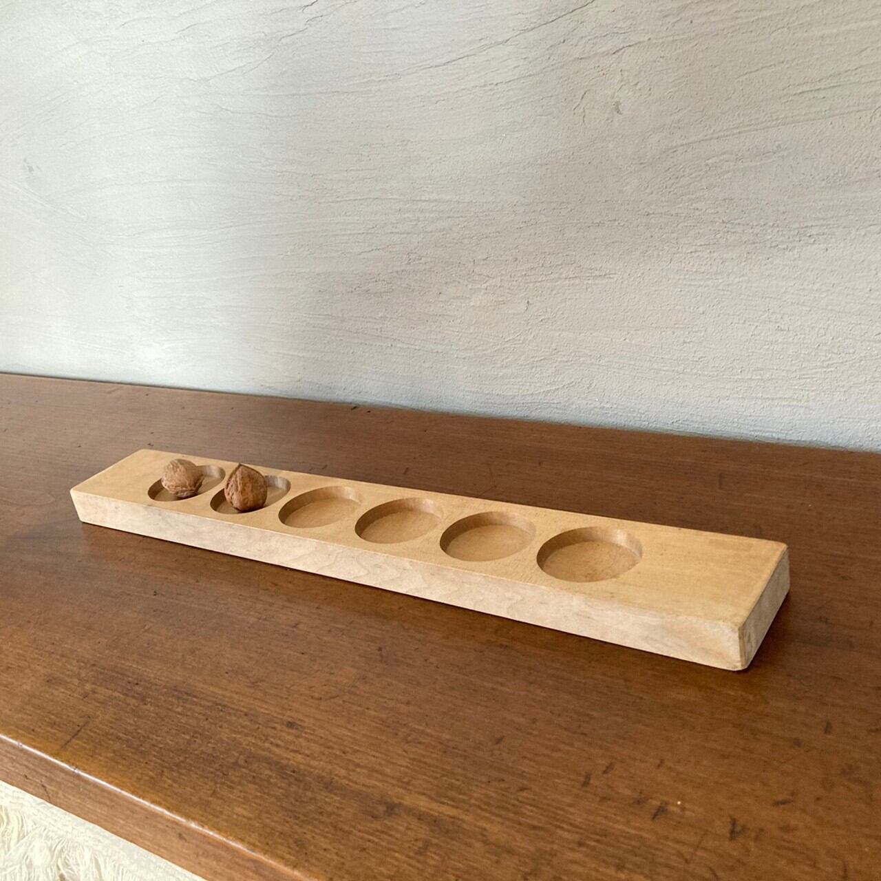 ナチュラルな木味とくりぬいてつくられた6つのくぼみが可愛らしい小物入れです。