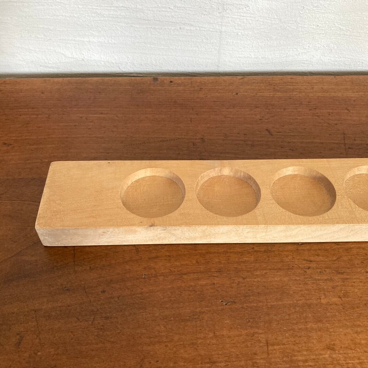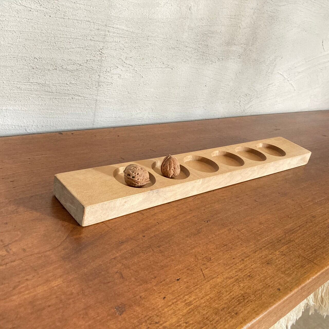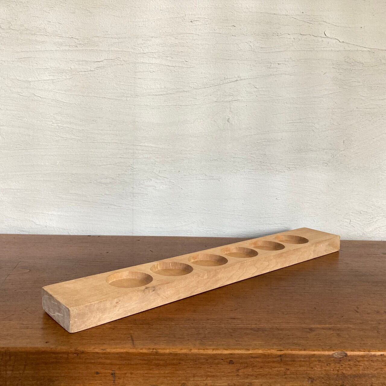 ナチュラルな木味とくりぬいてつくられた6つのくぼみが可愛らしい小物入れです。