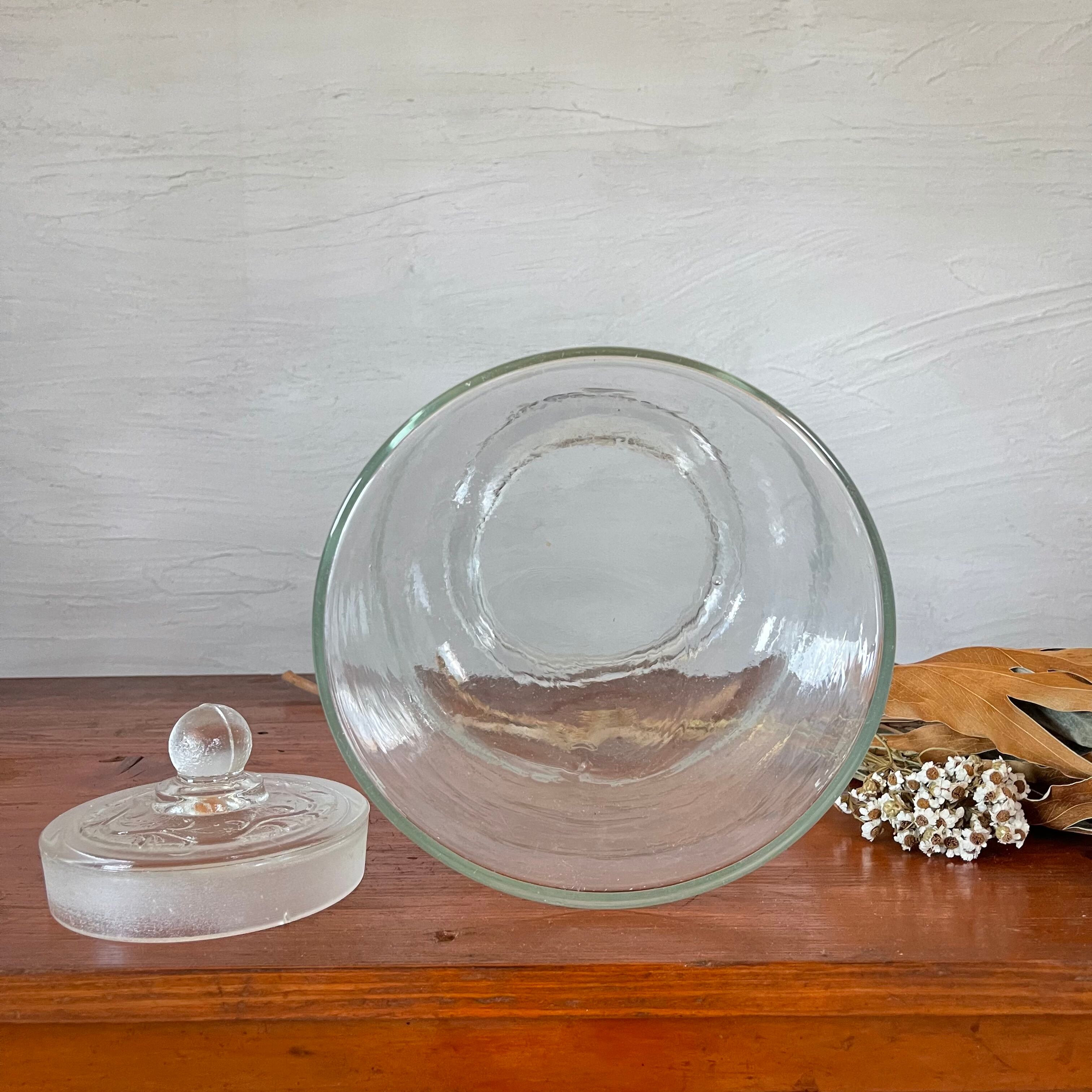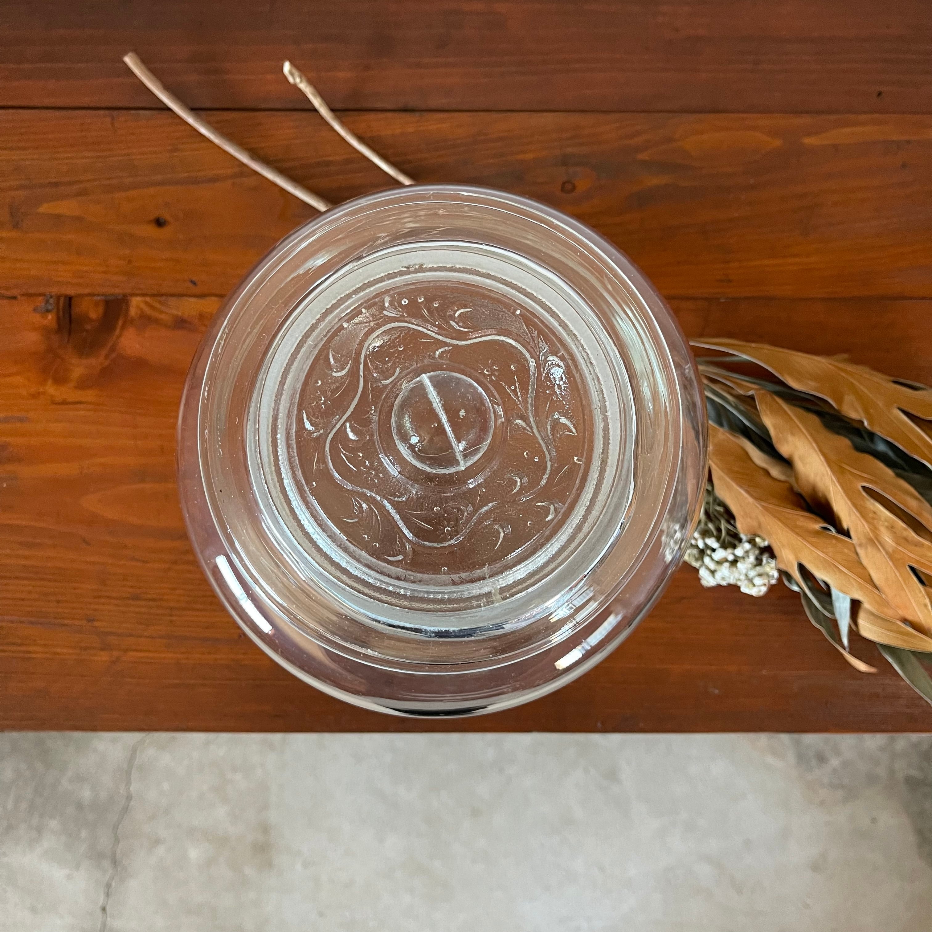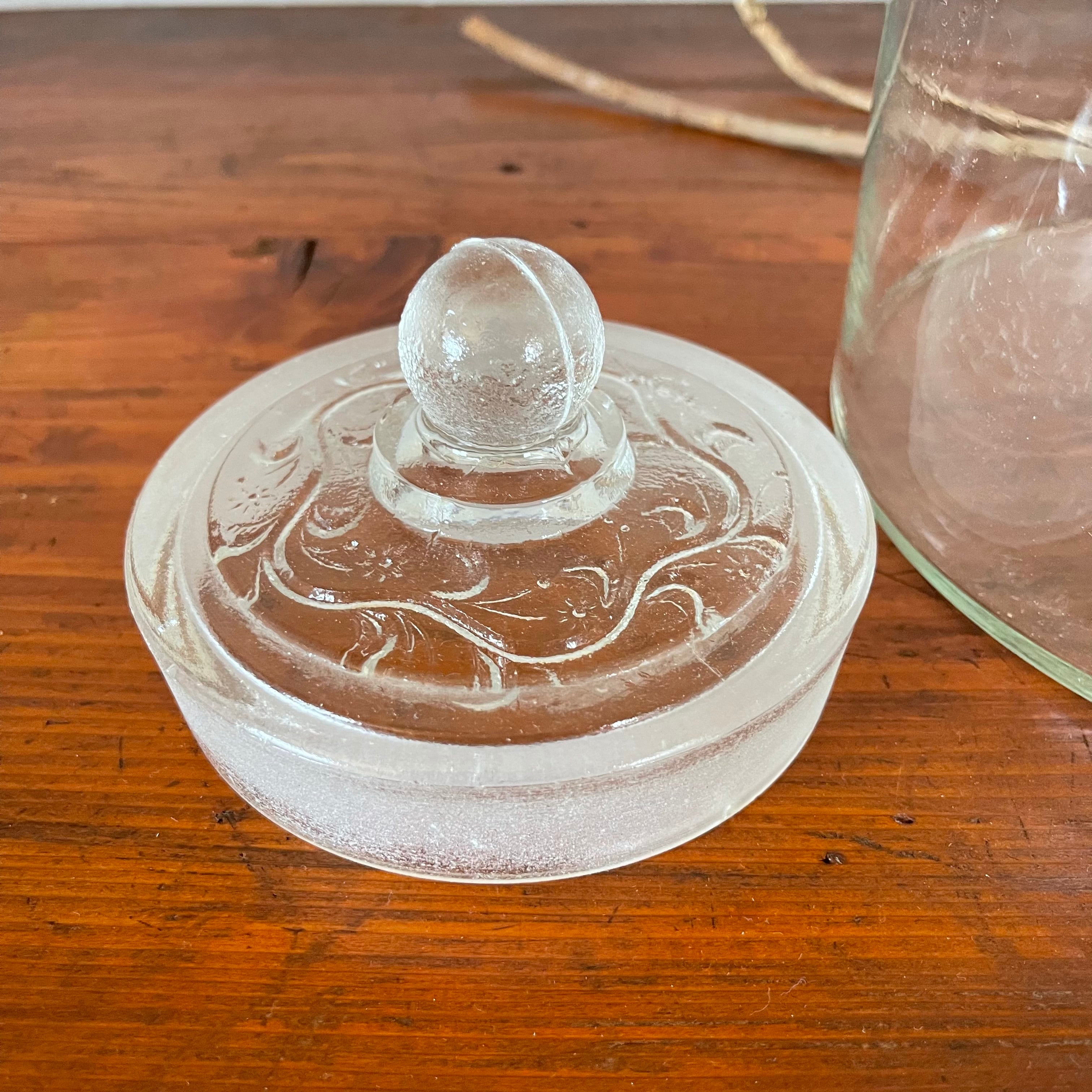 蓋に施された装飾がとても可愛らしいガラスキャニスターです。